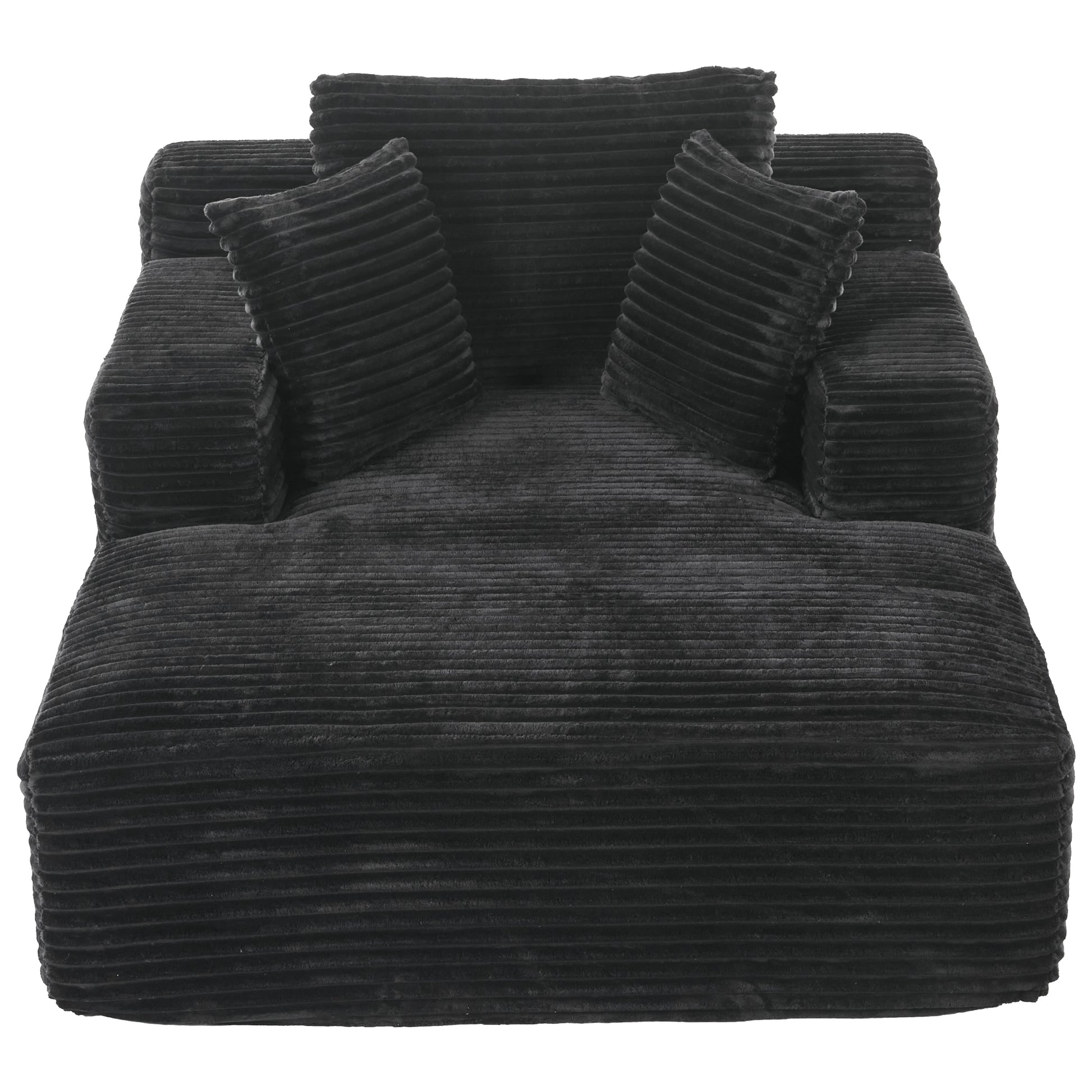This chaise lounge offers a spacious and comfortable seating experience with its wide design (47.2 inches deep and 48.8 inches wide), perfect for lounging, reading, or napping. Upholstered in luxurious corduroy fabric, it features a soft, plush texture with a timeless, vertical ribbed pattern. The wide, supportive armrests enhance both the comfort and style, while two soft throw pillows and a back cushion provide additional support for a customizable lounging experience. With its modern, all-compressed design, this lounge fits seamlessly into any living space, combining sleek aesthetics with functional comfort.