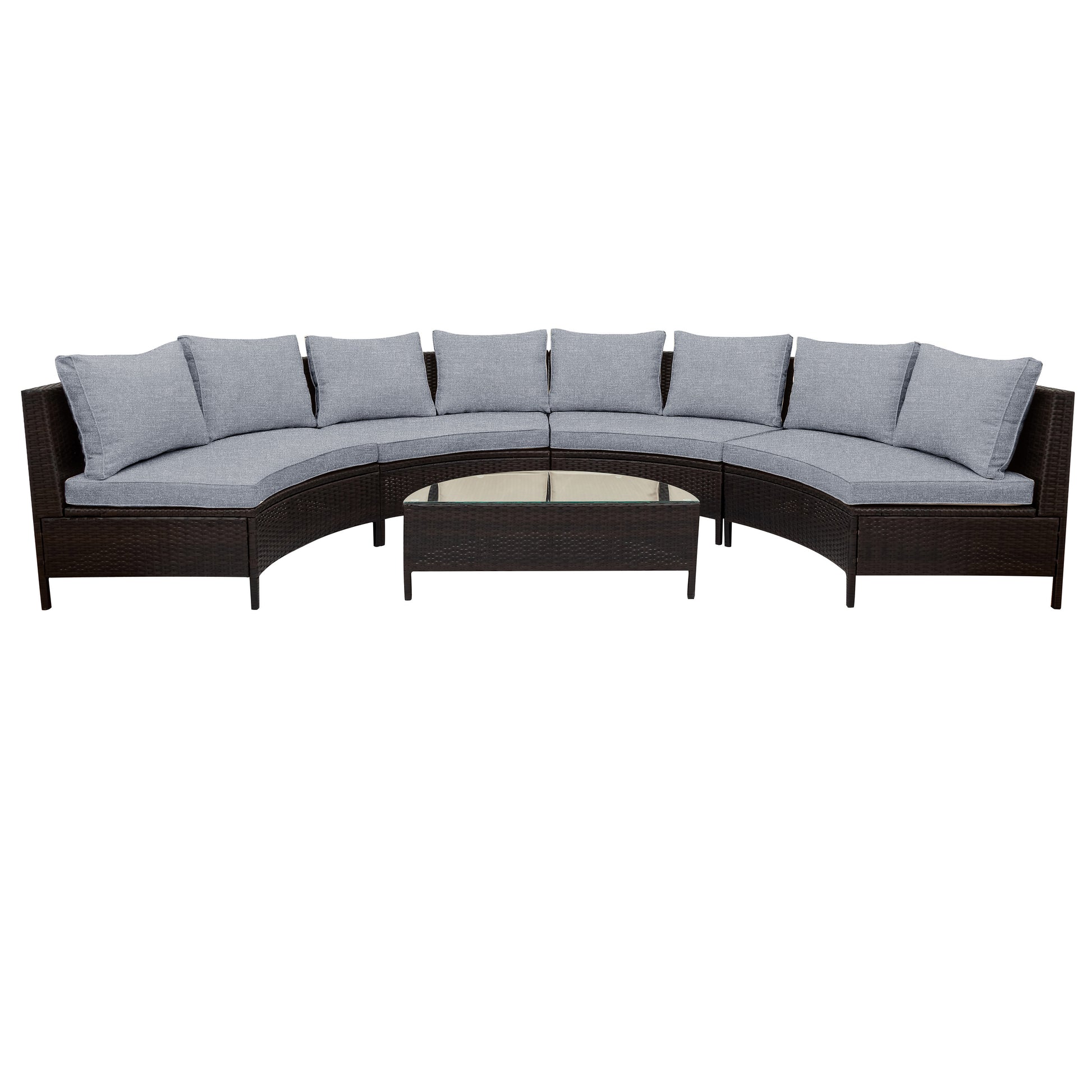TOPMAX 5 Pieces All-Weather Brown PE Rattan Wicker Sofa Set Outdoor Patio Sectional Furniture Set Half-Moon Sofa Set with Tempered Glass Table, Gray
