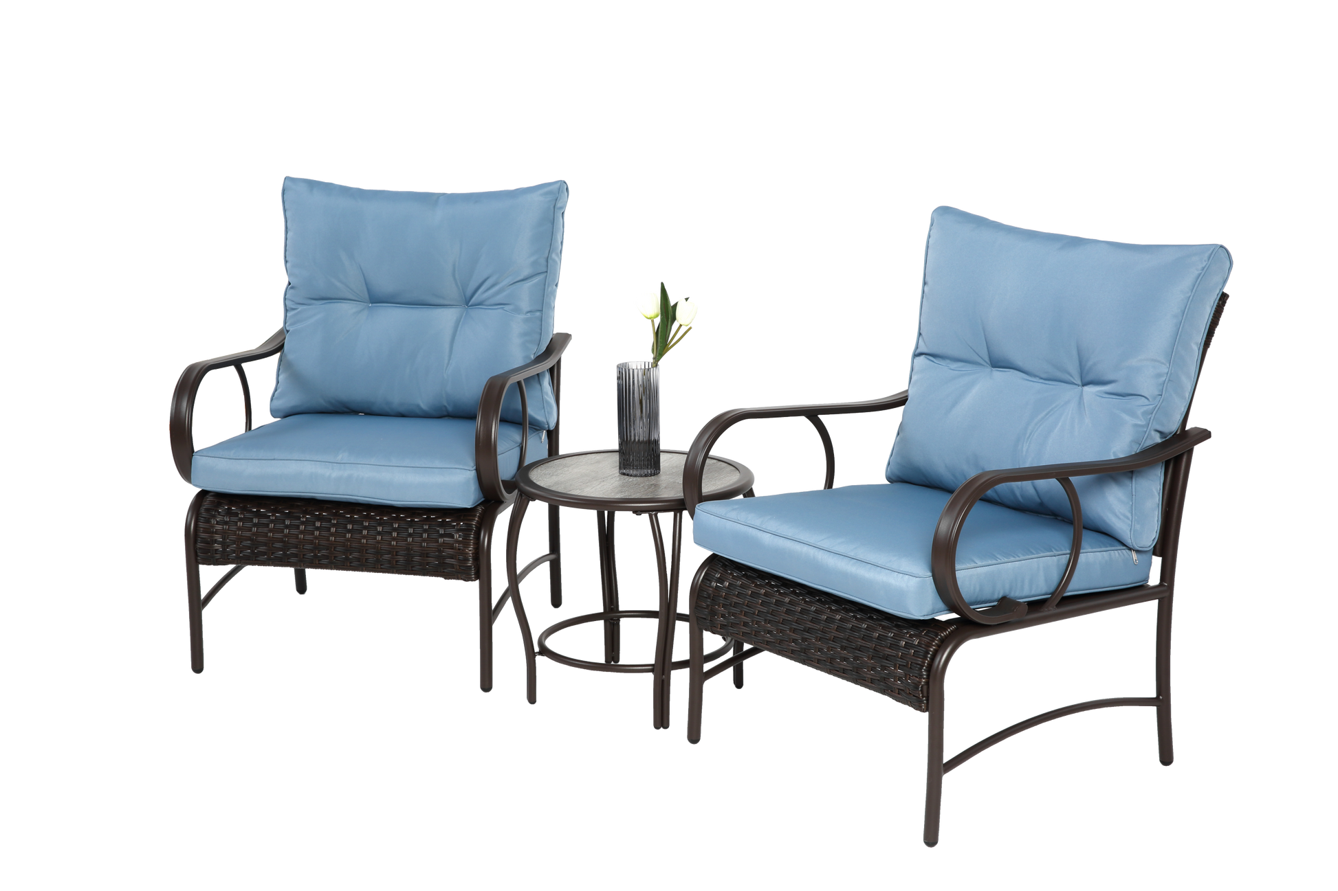 The powder coated steel frame are rust-proof and high-quality hand woven weather-resistant PE wicker won't fade.Each seat supports up to 250 pounds.
