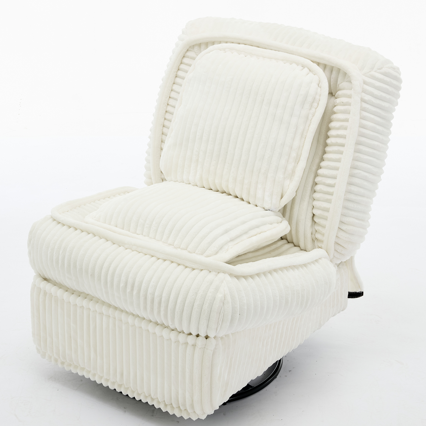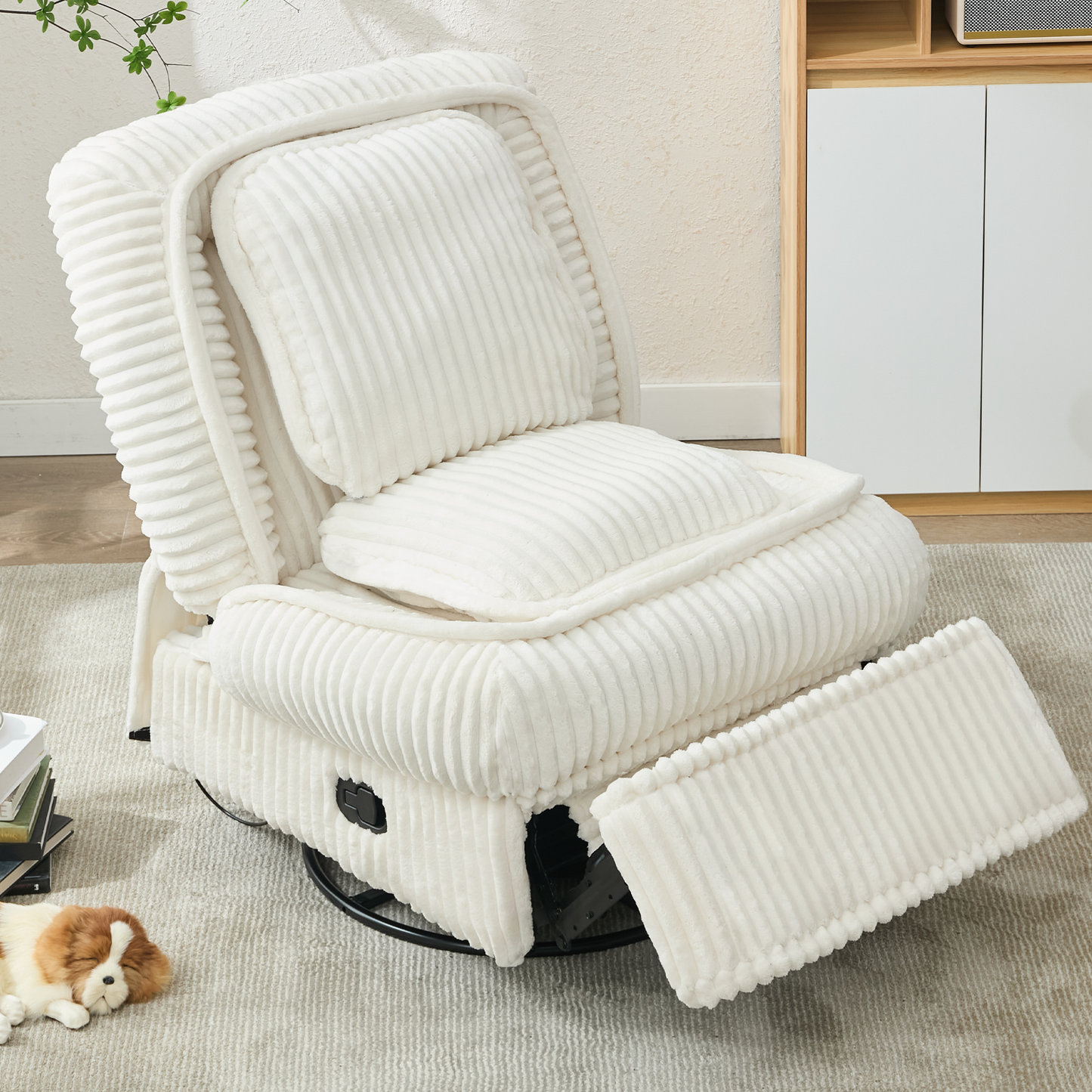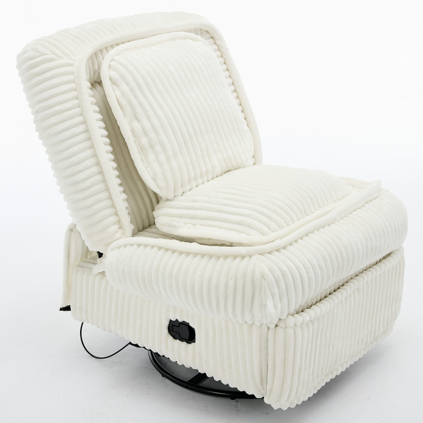 [NEW ARRIVED] 360° Swivel Rocking Single Sofa,Recliner Sofa, Manual Glider Rocking Armless Chair,Living Room Office, With Adjustable Backrest and Footrest and pillows, Small Spaces,Corduroy , Beige
