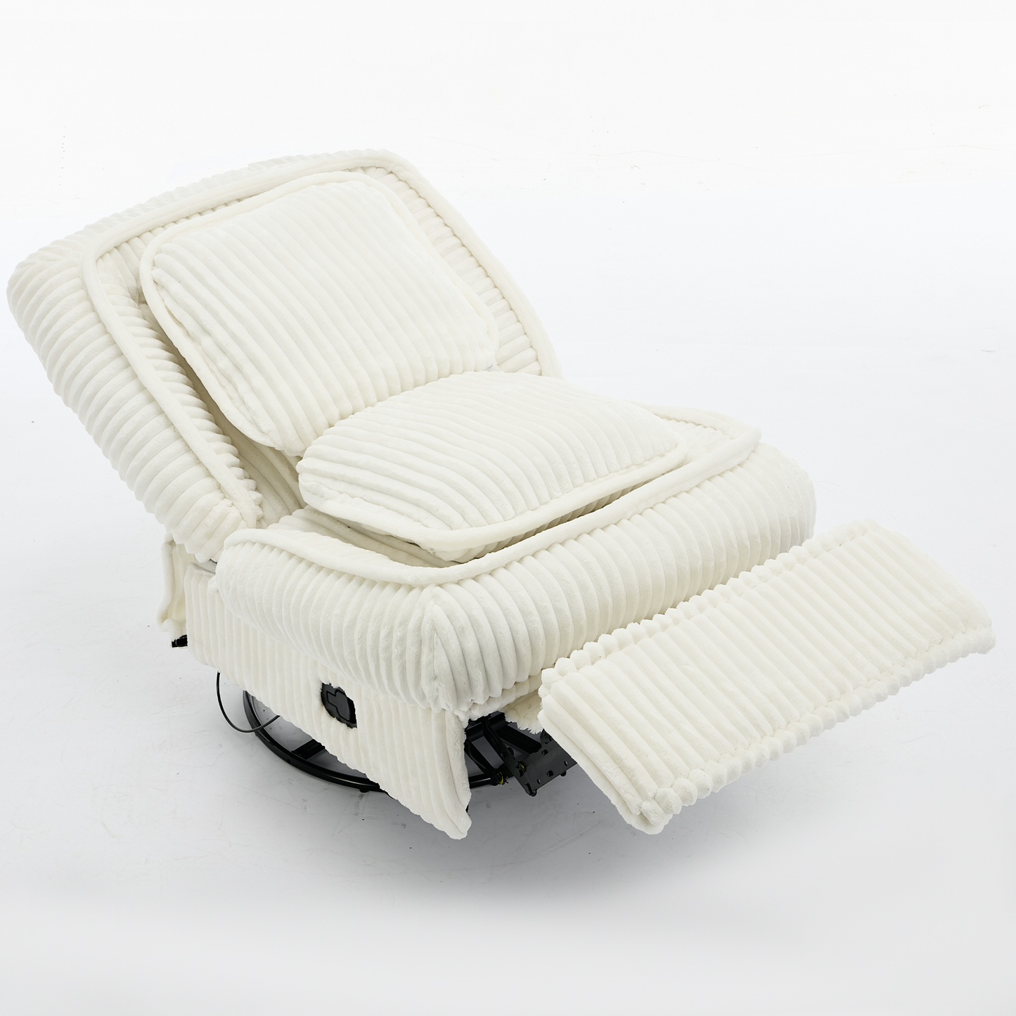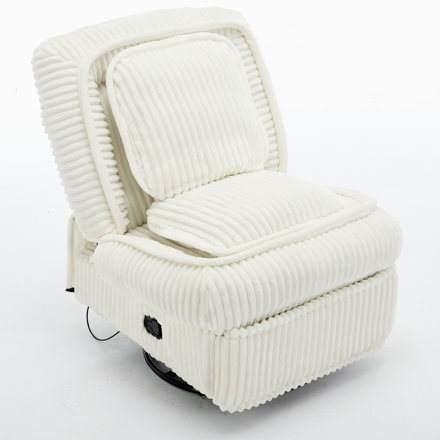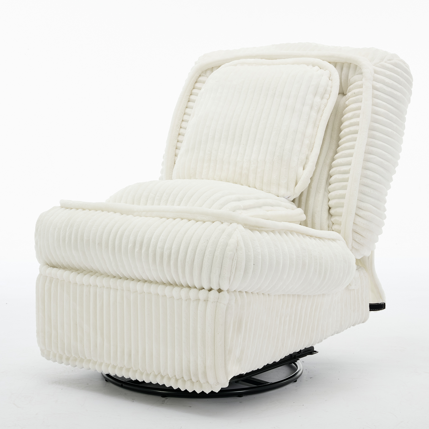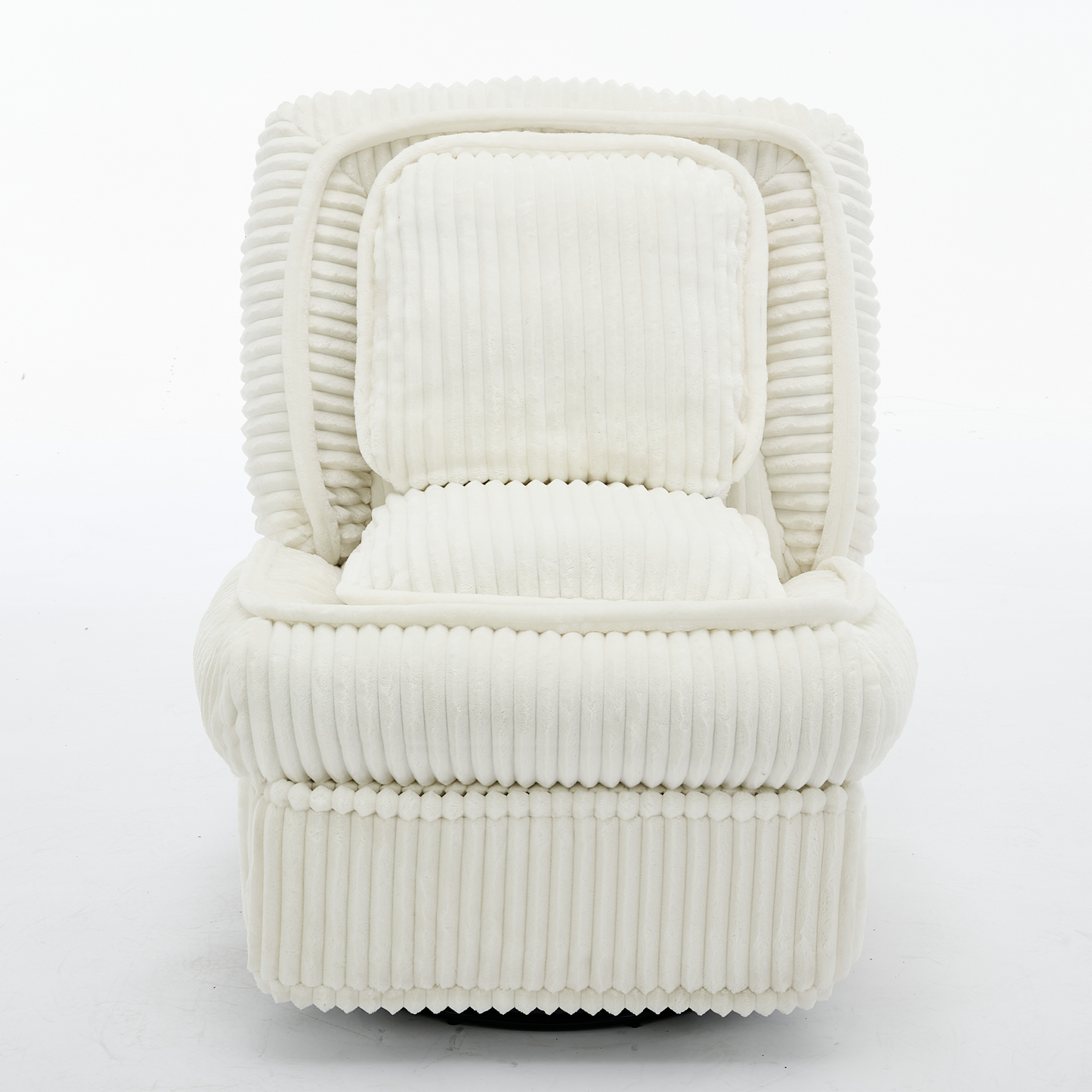 [NEW ARRIVED] 360° Swivel Rocking Single Sofa,Recliner Sofa, Manual Glider Rocking Armless Chair,Living Room Office, With Adjustable Backrest and Footrest and pillows, Small Spaces,Corduroy , Beige
