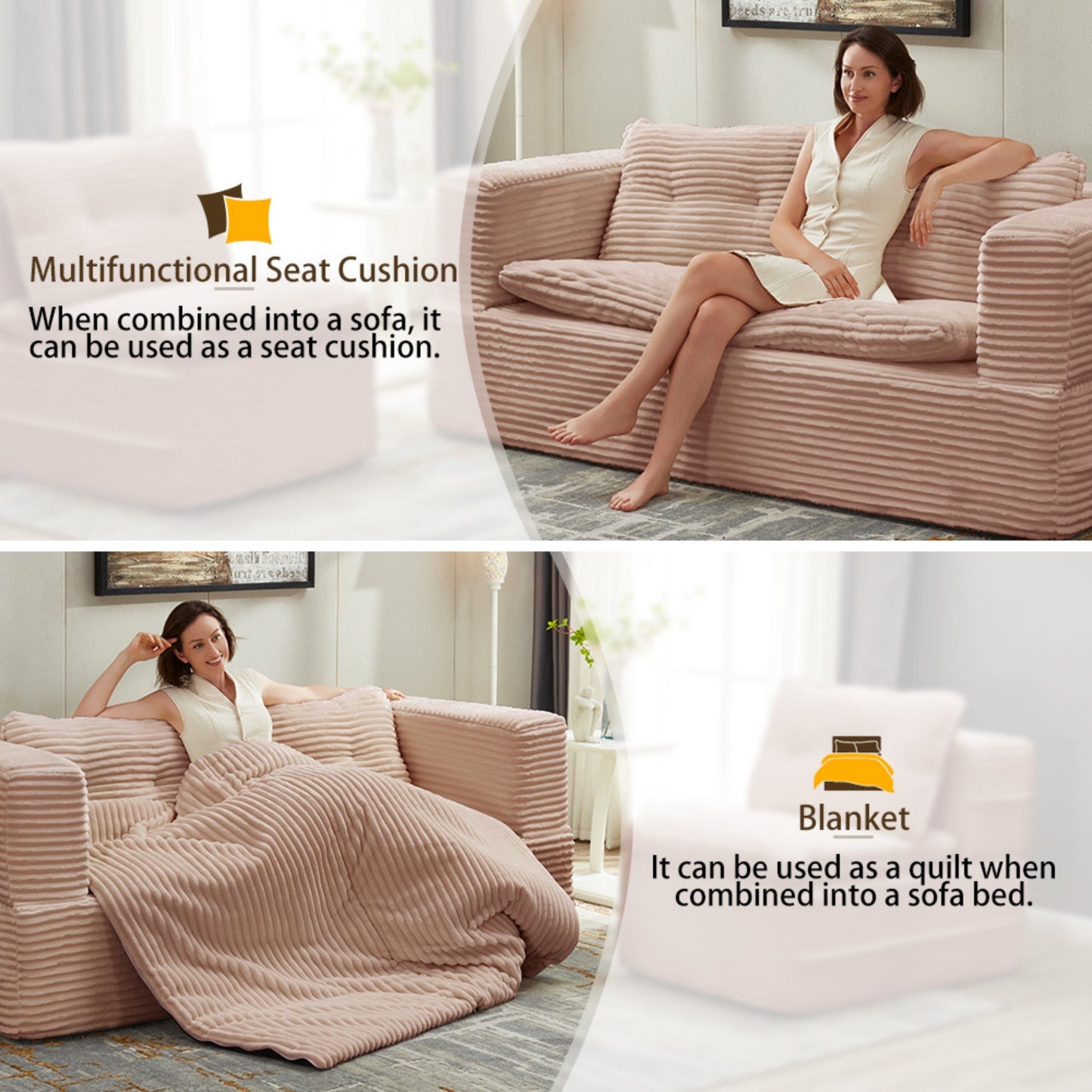 - 【Multi-Functional Convertible Sofa Blanket】This sofa features an innovative dual-purpose convertible blanket that cleverly transforms between two forms. When zipped closed, it becomes a comfortable sofa cushion with a sleek aesthetic. Simply unzip and unfold it to reveal a warm cozy blanket - perfect for sofa-bed mode.