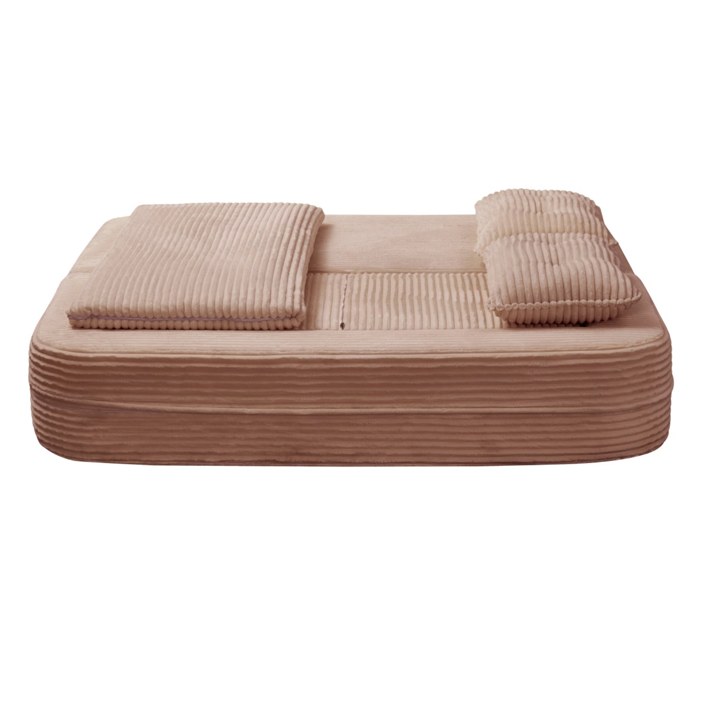 Multi Functional Sectional Sofa Bed with Independent Chaise Lounge and Functional Blanket,Plush Corduroy Sofa Couch,Convertible Sofa Bed,80' King Size Bed,Deep Seat Fluffy Sofa,Pink