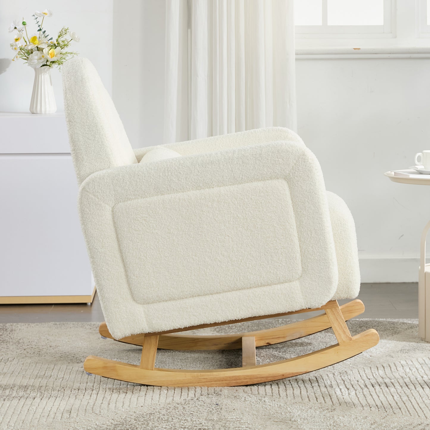 Accent Rocking Chair with Curved Back & Pillow, Ultimate Comfort for Your Home, Teddy Velvet, Cream White