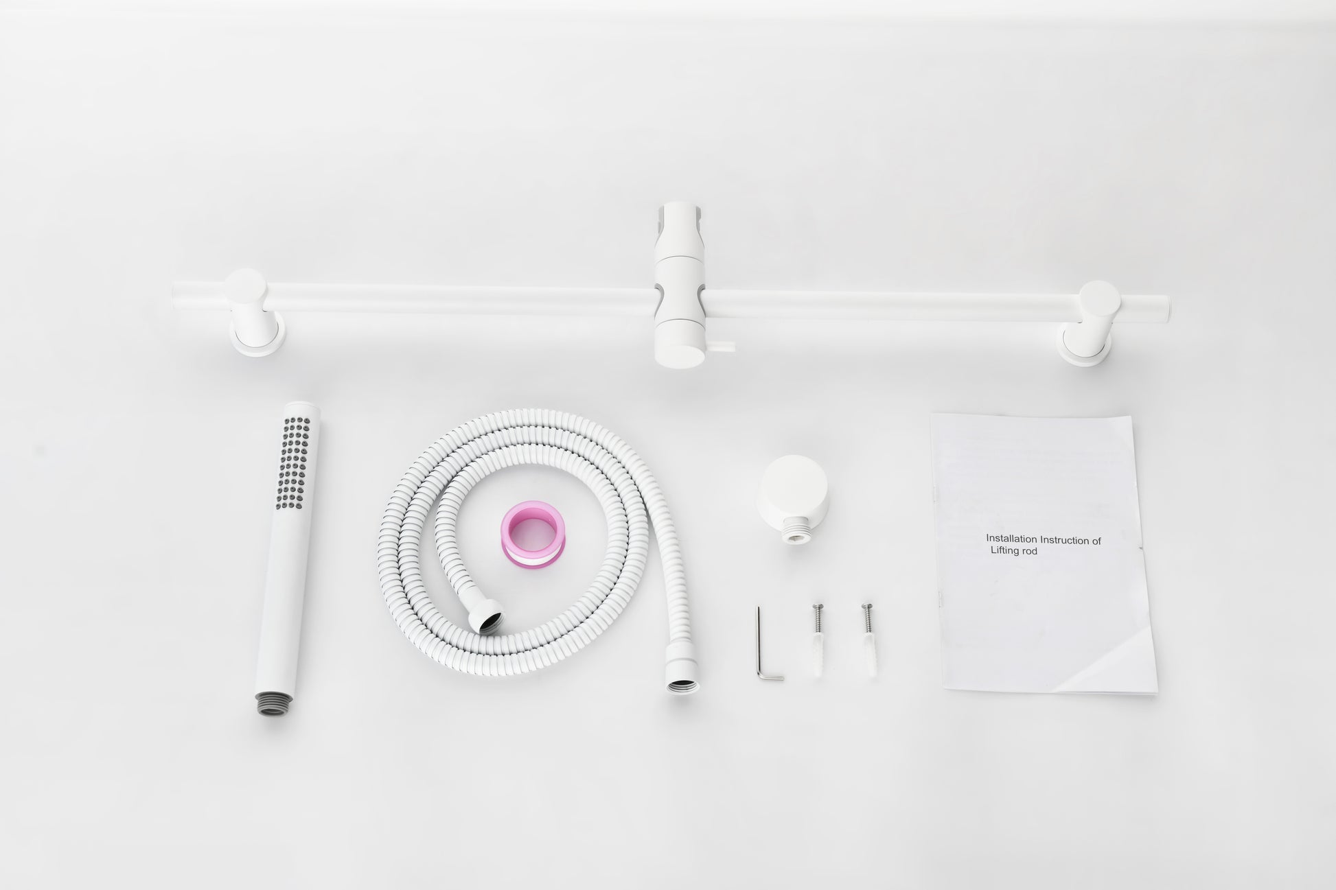 SHOWERS Stainless Steel Slide Bar Grab Rail Includes Handheld Shower Head and 69-Inch Hose Robust And Safe - This shower head slide bar is designed with durable stainless steel Construction. Stainless steel is durable and easy to clean. It is a Secure Mount design. Large Bearing Capacity - This inch slide bathroom grab bar supports up to 100 lbs. Functional Spray Settings - Providing spray modes for a variety of relaxing options; Height Adjustable Shower Head: The slider can easily be moved up and down to change the height of your handheld shower head. This feature is convenient for kids, washing a pet, and even showering on a chair. Ultra-flexible and Extra-long Shower Hose: 69 Inch long flexible shower hose allows you to reach places with the handheld shower that you couldnt reach before. Package Includes - Handheld shower, slide bar with push button height selection, 69 inch long double-interlock stainless steel hose.