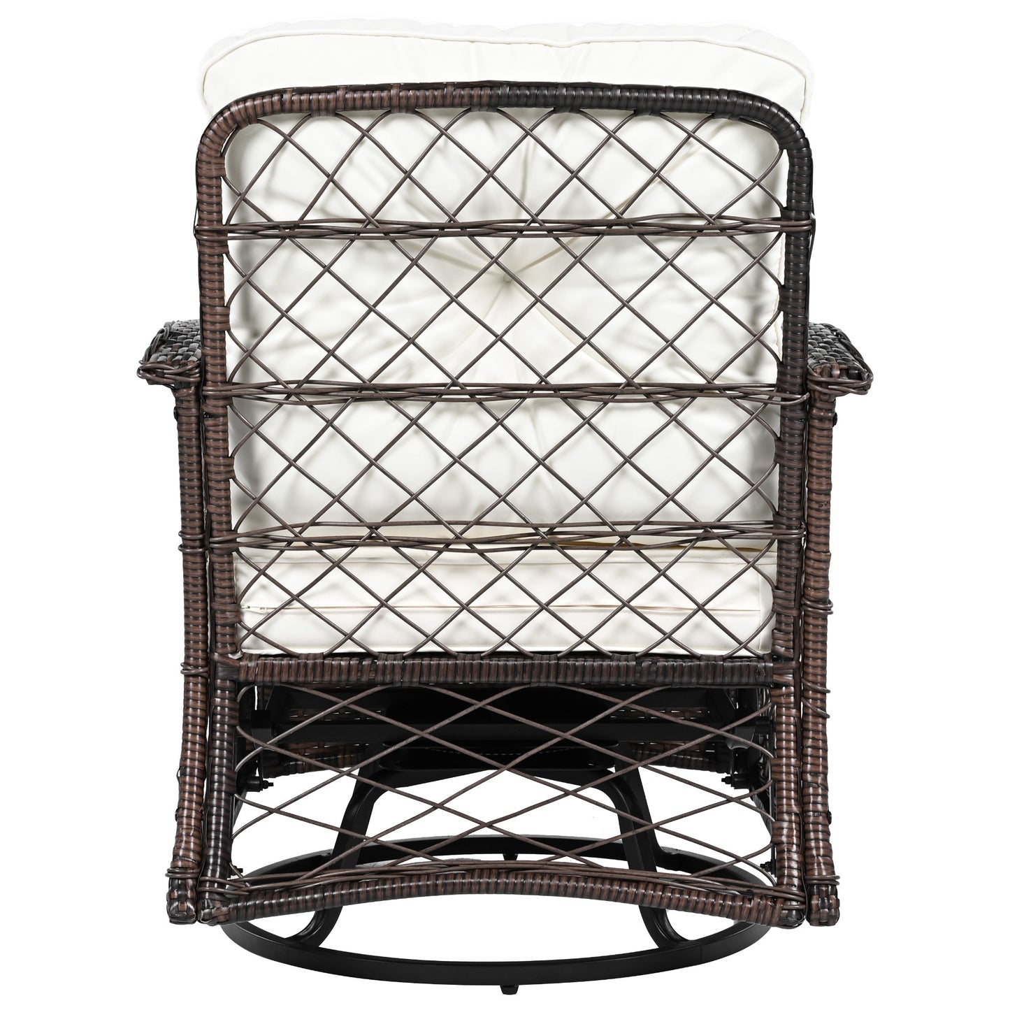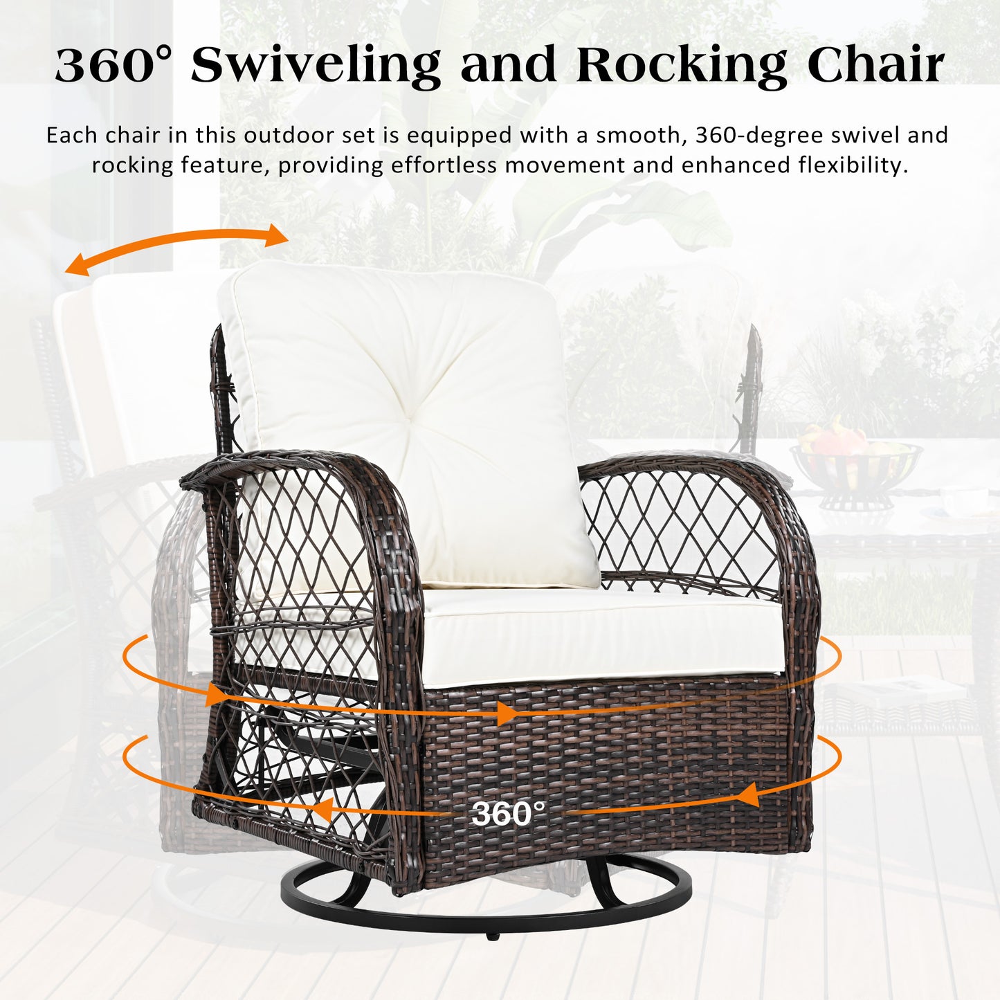 - Swiveling and Rocking Chairs for Flexible Seating - Each chair in this outdoor set features smooth, 360-degree swiveling and rocking functions, allowing for flexibility and moving back and forth. You can effortlessly change your seating position, whether you want to enjoy different views or engage in conversations without moving the chairs.