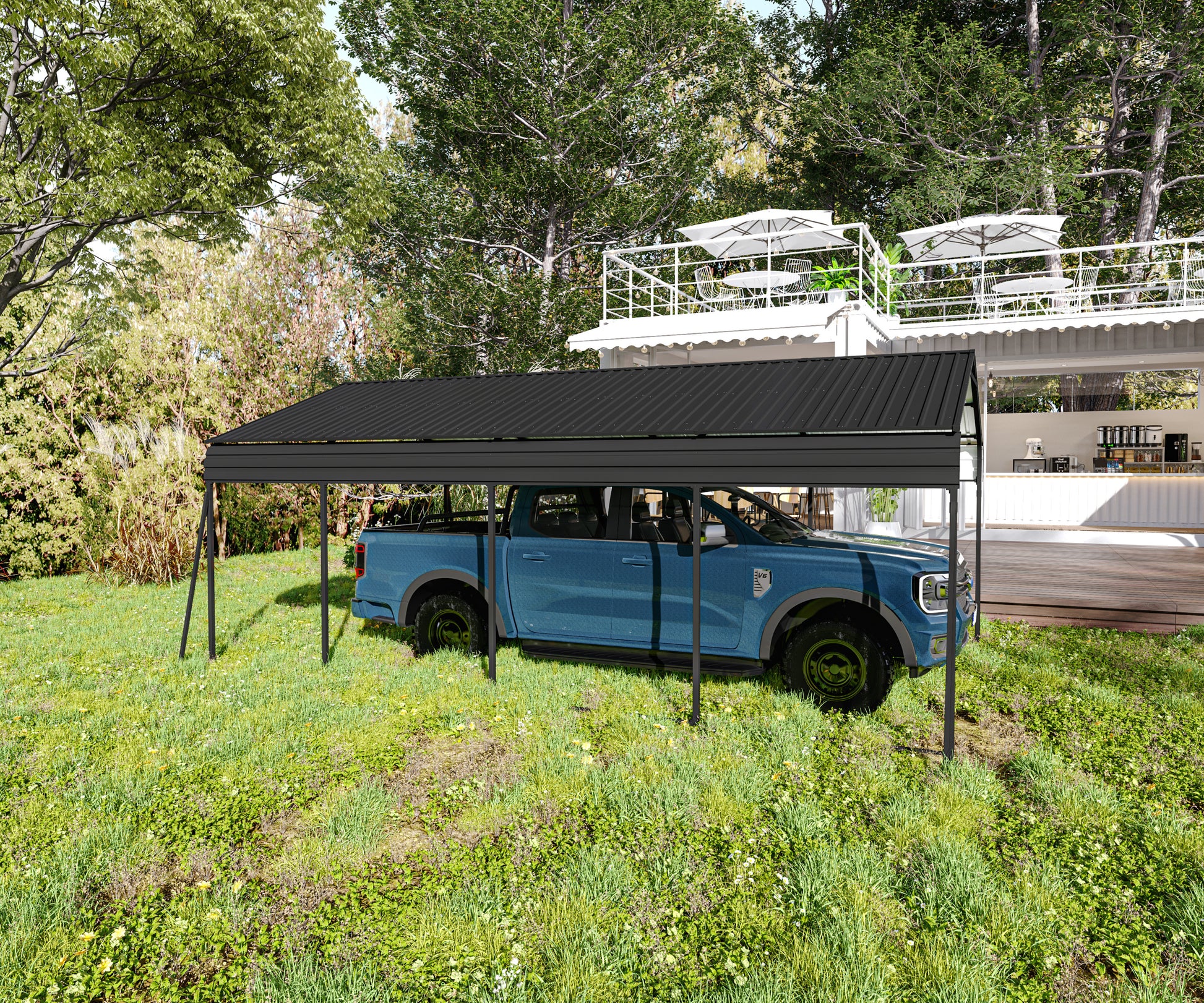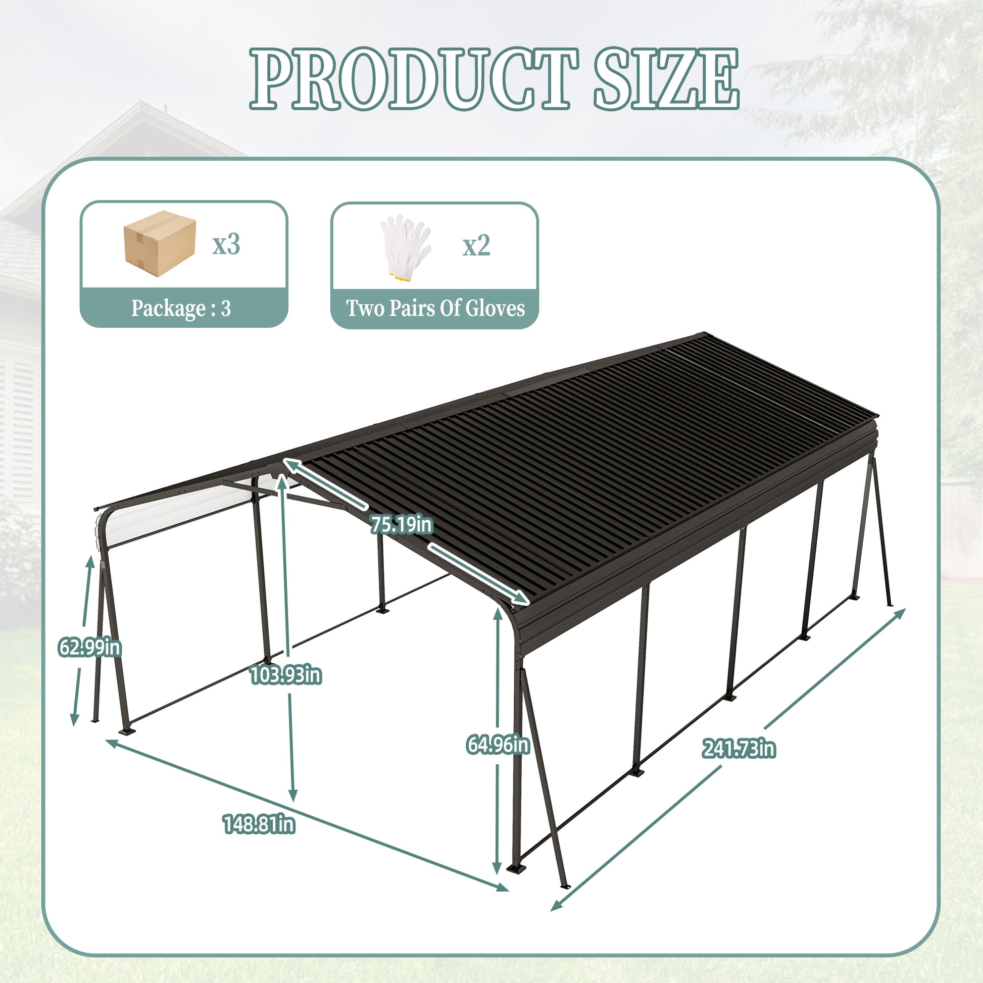 - 【Weather Resistance】 Industrial-grade steel supports and a galvanized steel roof offer strong corrosion resistance, protecting your vehicles from harsh weather conditions.