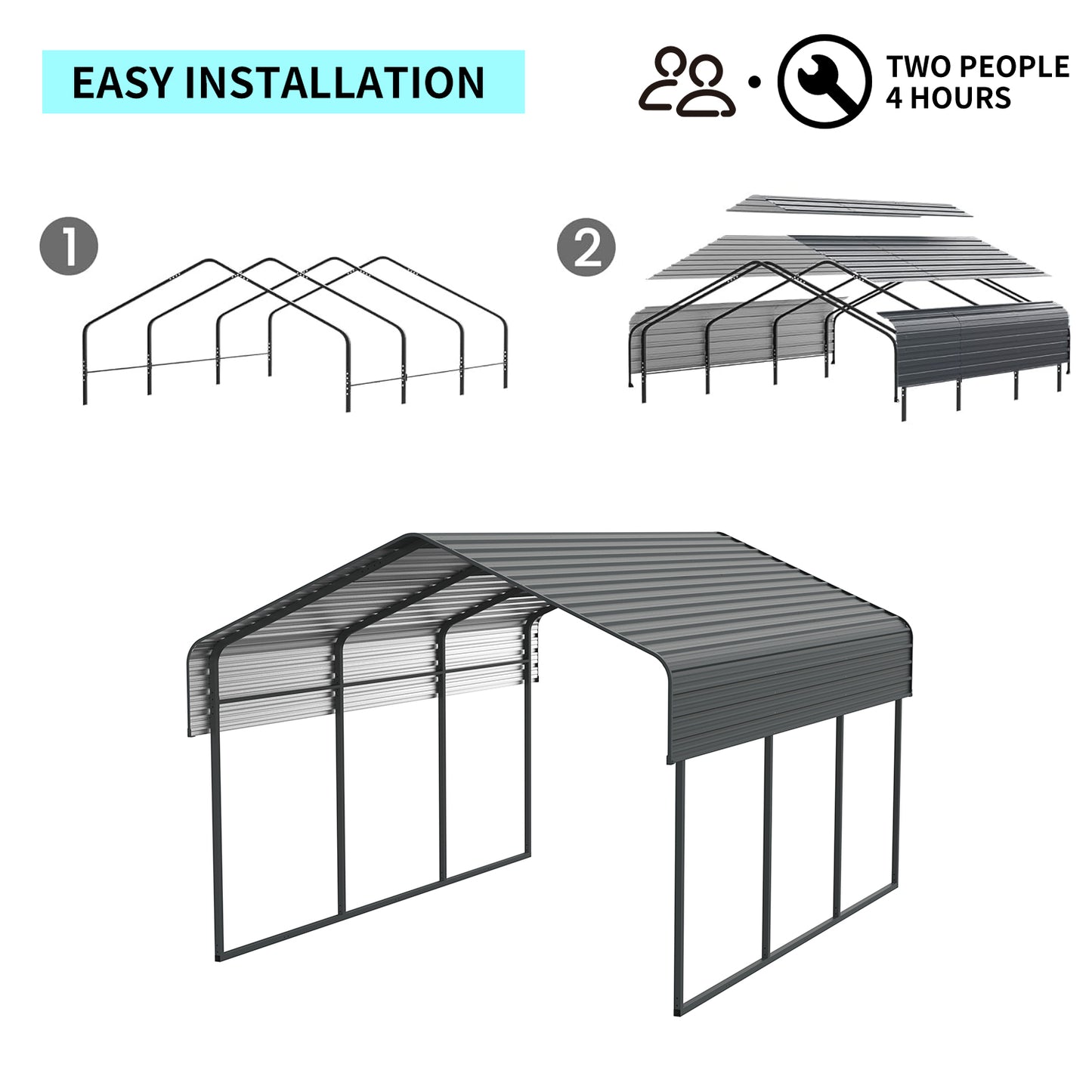- Hassle-Free Assembly & Installation: Assembly is made easy with a detailed instruction manual. Each component is clearly labeled and numbered, allowing you to set up your metal carport quickly and effortlessly. Enjoy a stress-free installation and start using your new carport in no time!