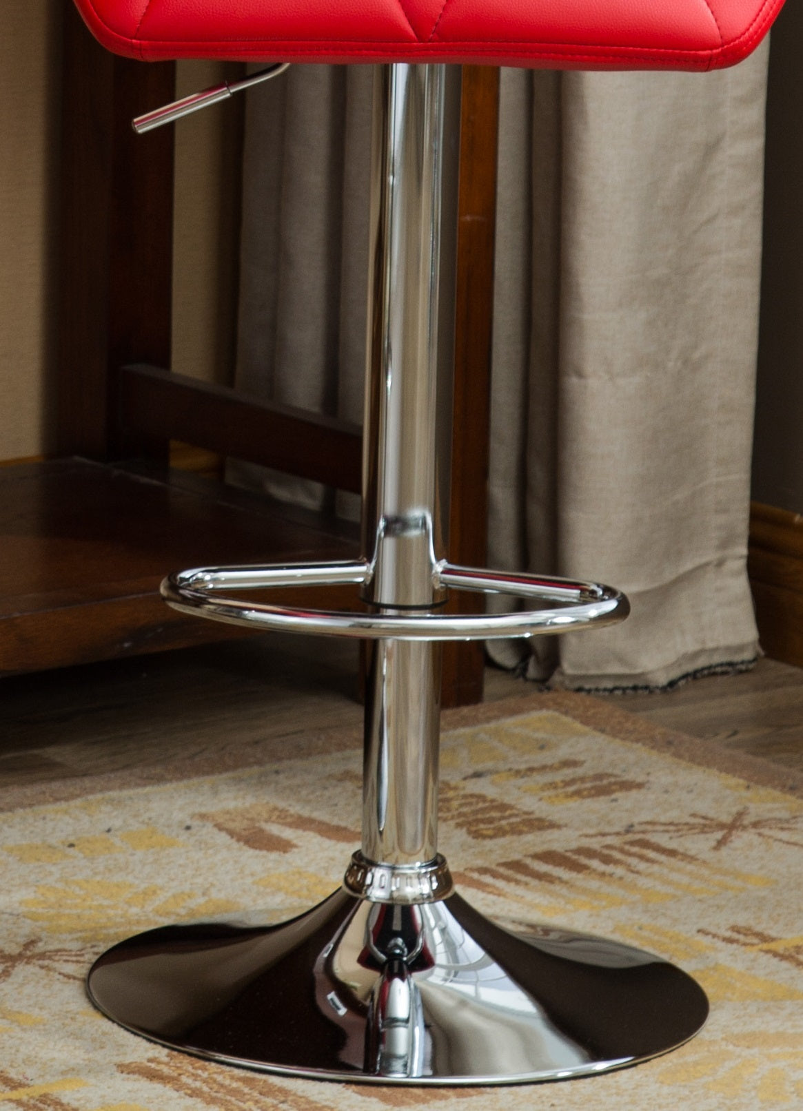 Diamond-tufted detail and a plush, padded seat and back make the Glasgow Contemporary Tufted Adjusted Bar Stool stylish and comfortable's stool has a sturdy chrome base with 360-degree swivel. The swirling seat with easy gas-lift height adjustment offers versatile seating. The polished chrome disk base has a built-in footrest for stylish comfort. Your choice of available finish options.