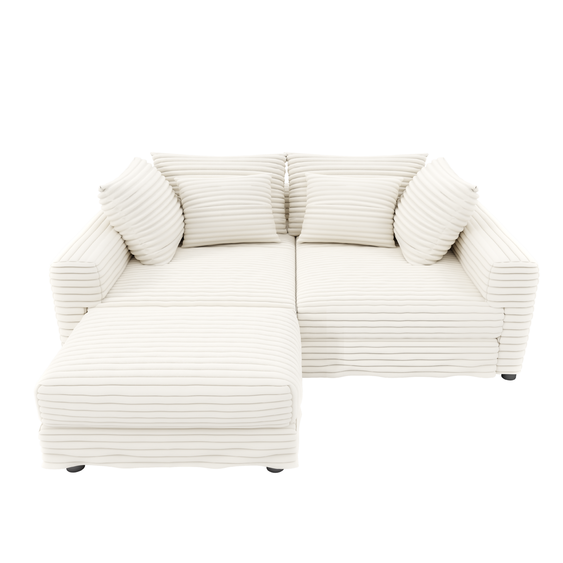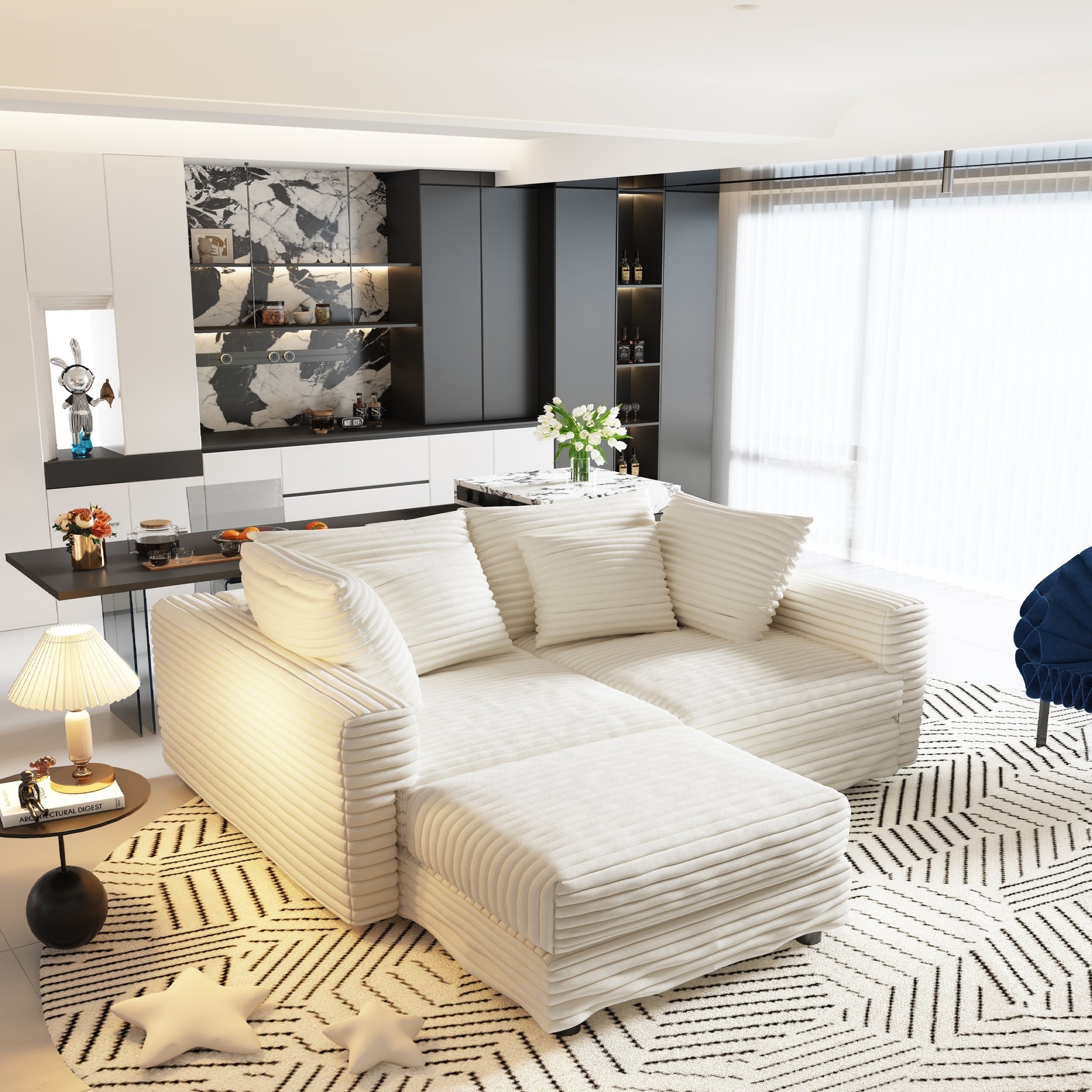 102.4 'Plush Corduroy 4-Seat Sofa,Modern Comfy Upholstered Sofa Cloud Couch,Deep Seat Couches with Soft Pillows and Movable Ottoman,Convertible Sofa Lounge Chair,for Living Room,Apartment,Office,Beige
