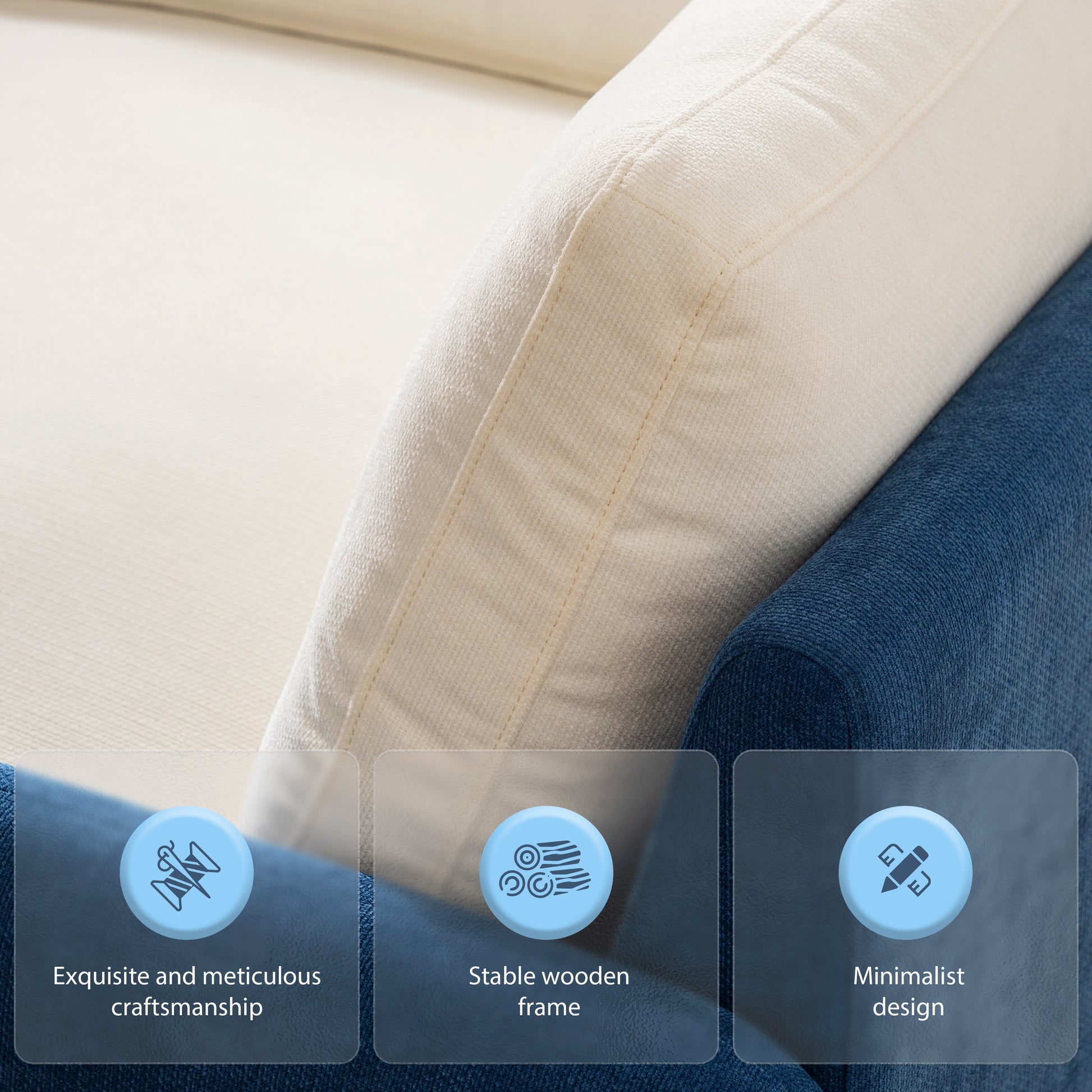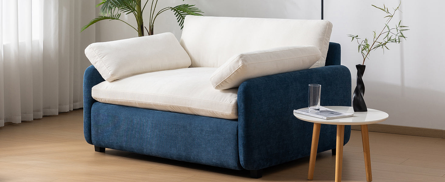 Modern Oversized Chenille Sofa Chair with Color Blocking and Pillows, 50*43 Inch, Blue