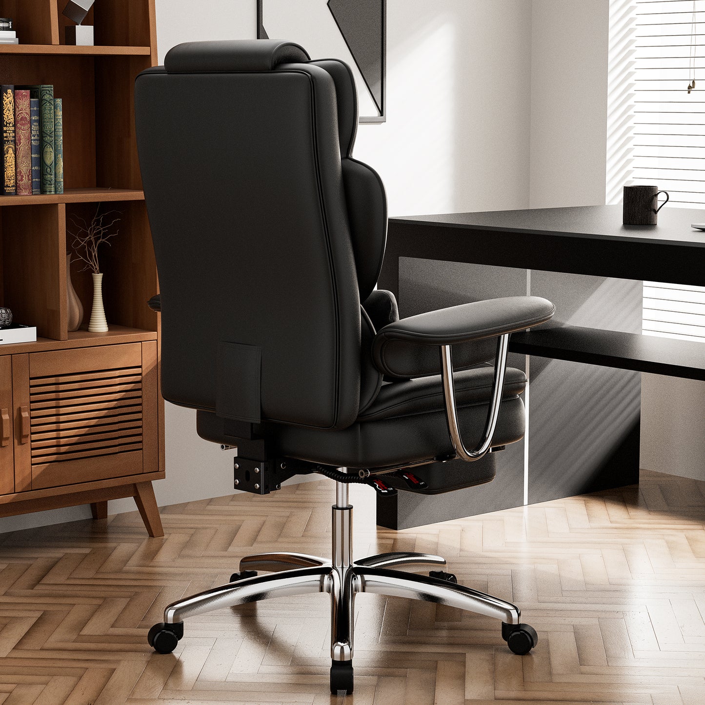 Office Chair, Big and Tall Executive Office Chair with Footrest, Leather Computer Chair, Ergonomic Reclining Chair High Back, Large Home Office Chair (Black)