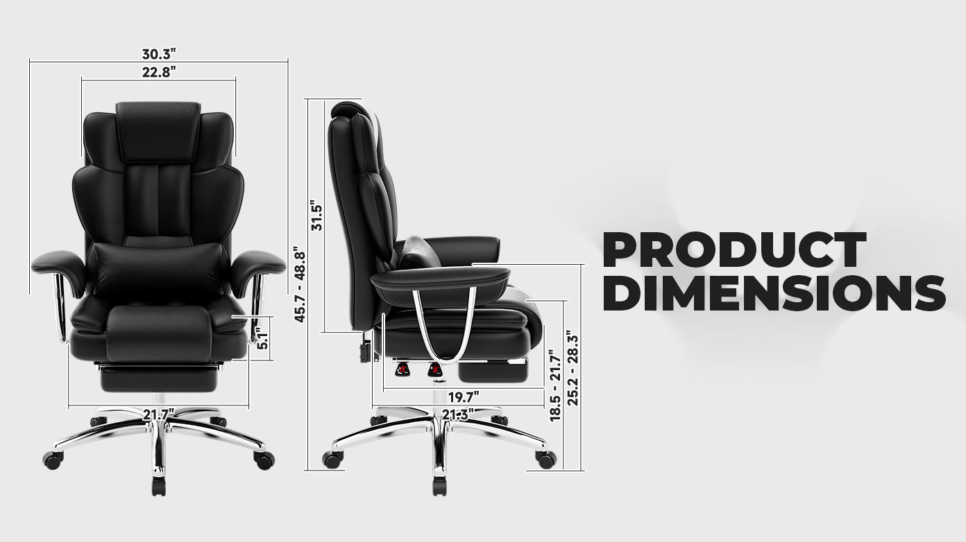 - 【500lbs Capacity Big and Tall Office Chair】: Our big and tall office chair are made of high quality breathing leather. Breathable leather upholstery surpasses the breathability and heat dissipation of bonded leather, ensuring a cool and comfortable seating experience. Say goodbye to fading and flaking, our breathable leather office chair maintains its original look for a long time.