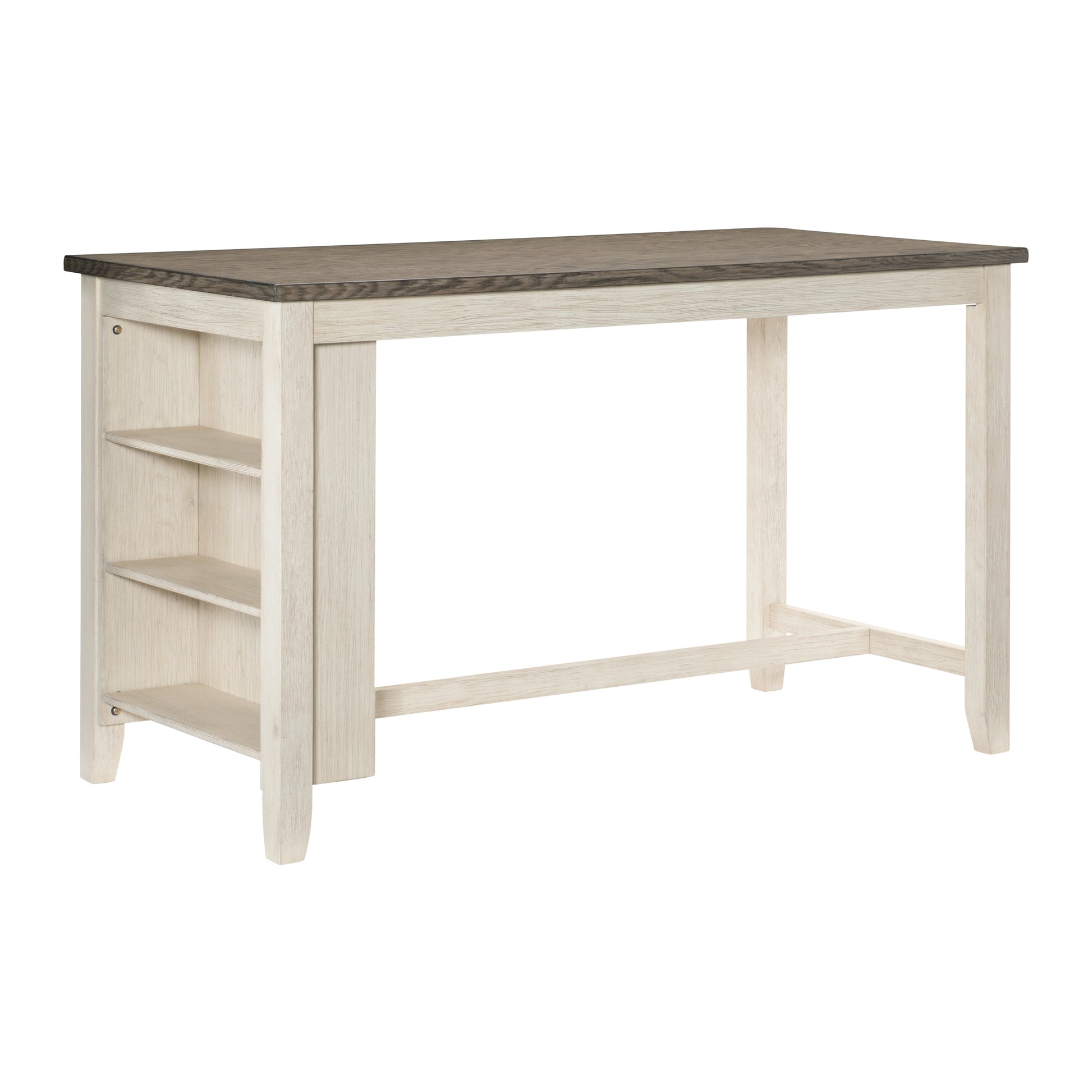 Modern Antique White and Rosy Brown 1pc Counter Height Table with Built-in Shelves Wooden Multifunctional Kitchen Dining Room Furniture