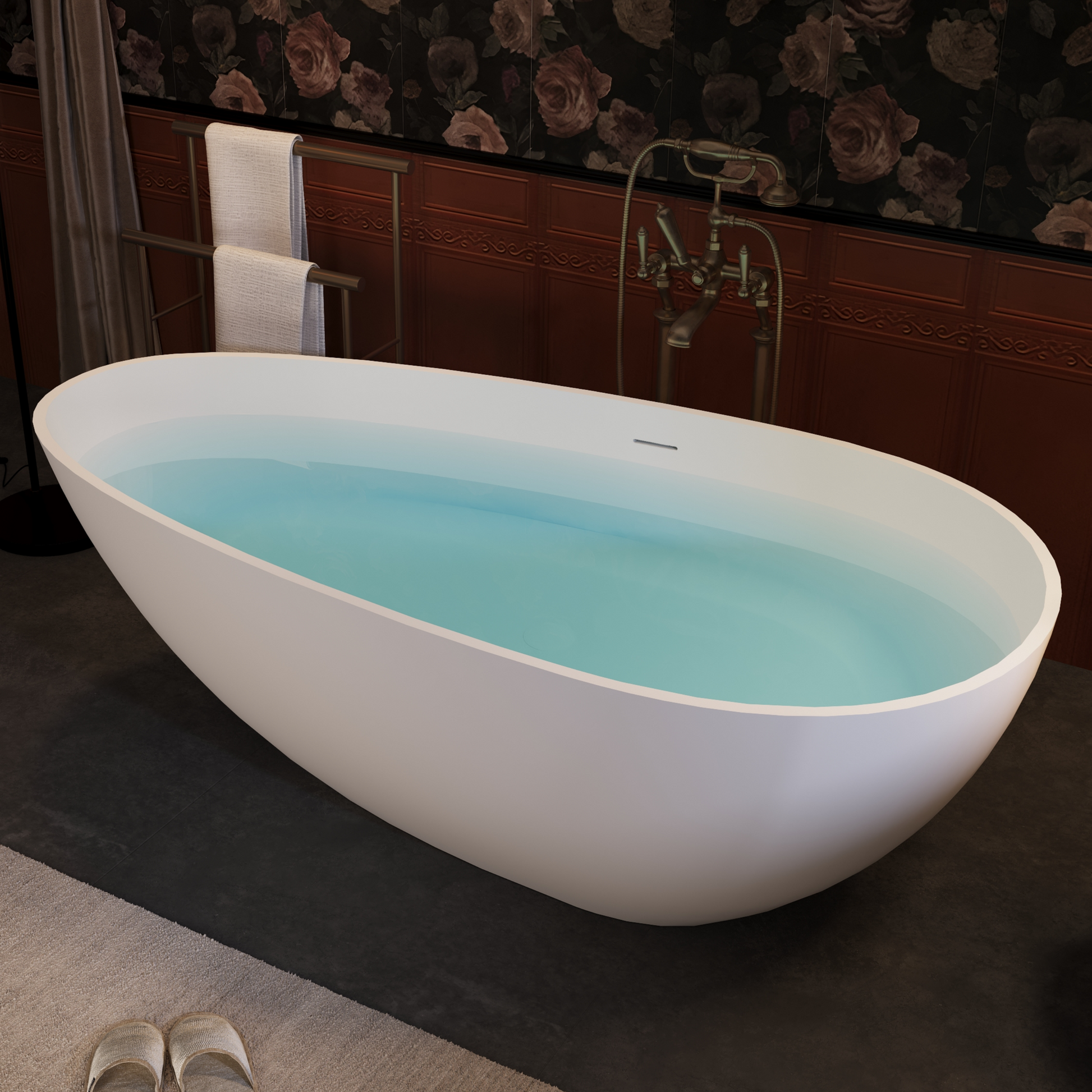 - Effortless Maintenance & Hygiene: This polished man-made stone bathtub is engineered to resist stains and minimize maintenance and won't crack, flake, detach, or turn yellow over time. The non-porous, antibacterial surface simplifies cleaning and can be repaired by sanding paper to even out scratches and obtain an absolutely smooth finish.