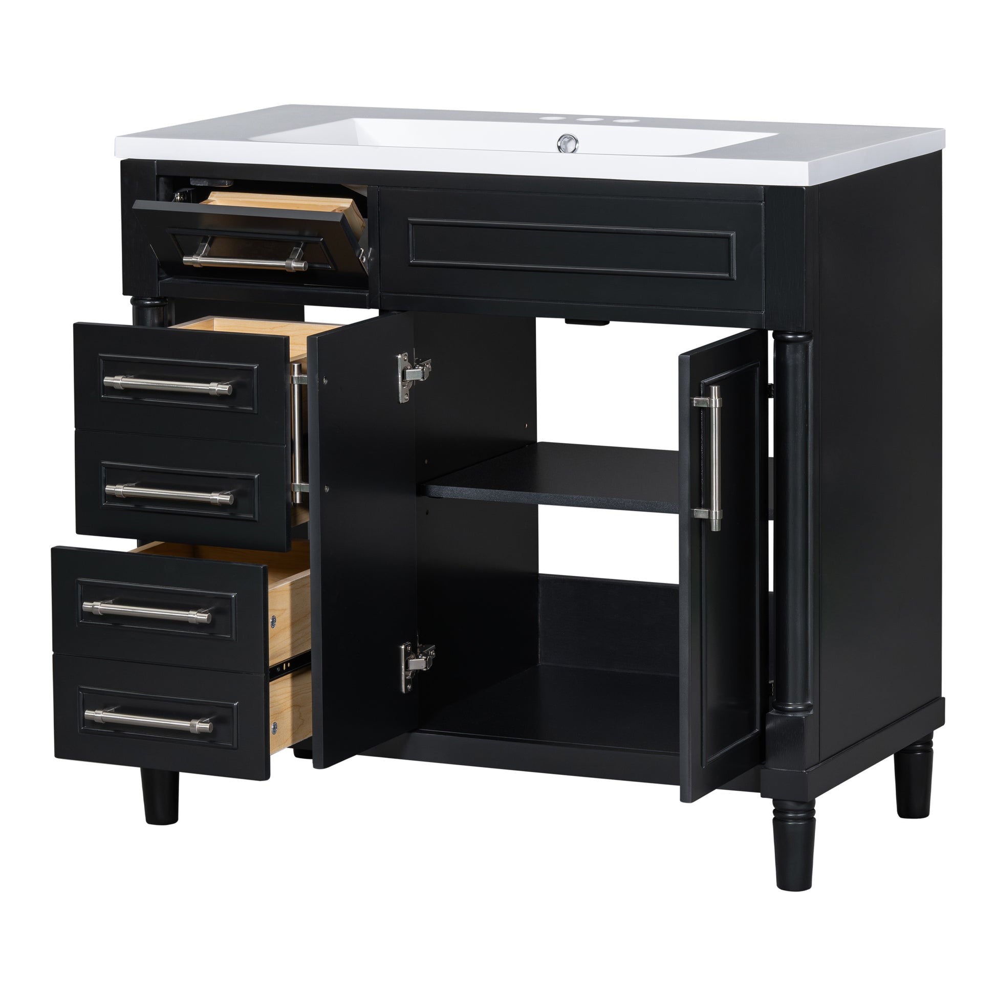 36'' Bathroom Vanity with Top Resin Sink, Freestanding Bathroom Storage Cabinet with 2 Drawers and a Tip-out Drawer, Solid Wood Frame Vanity Set, Height Adjustable Shelf