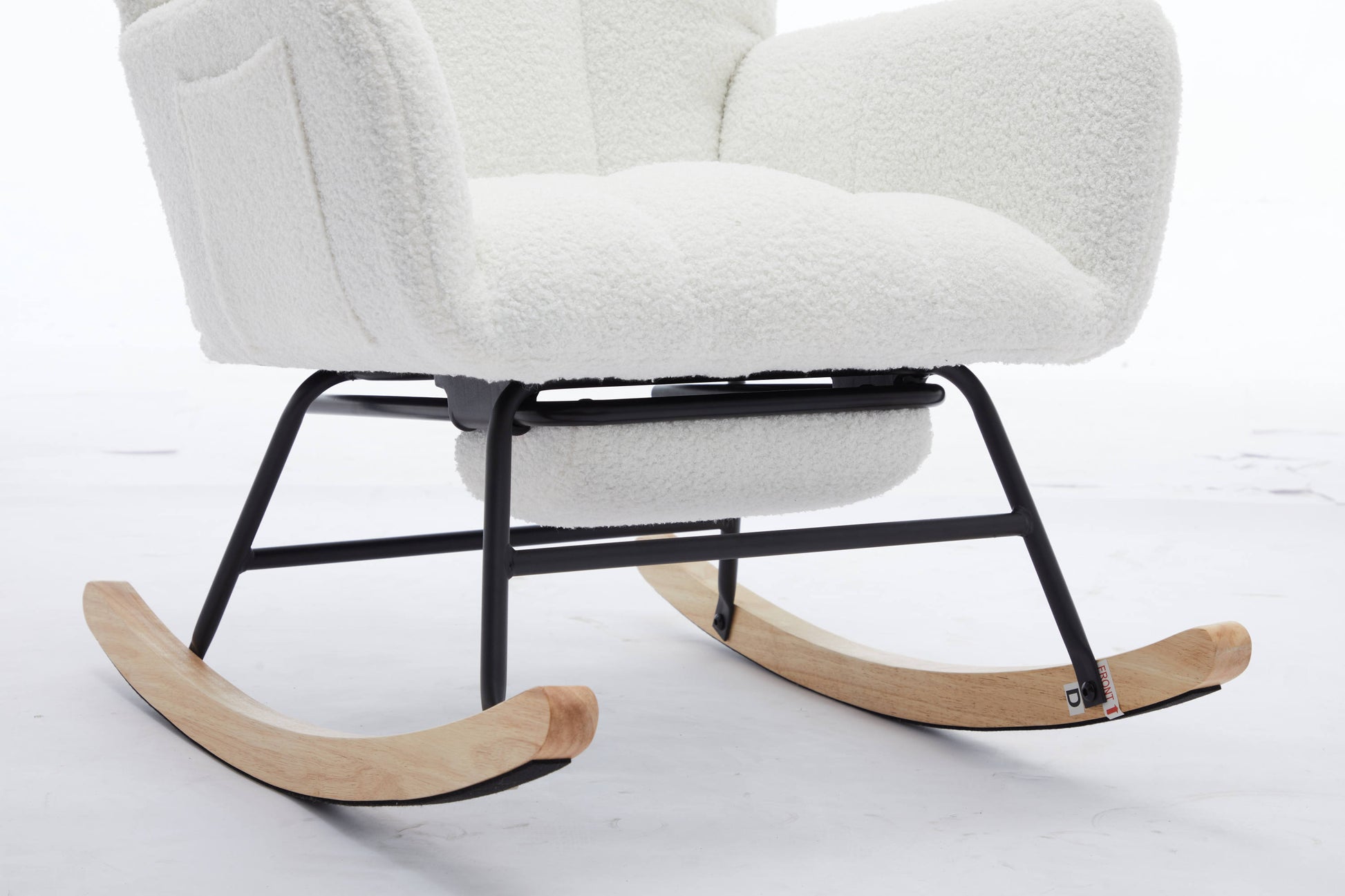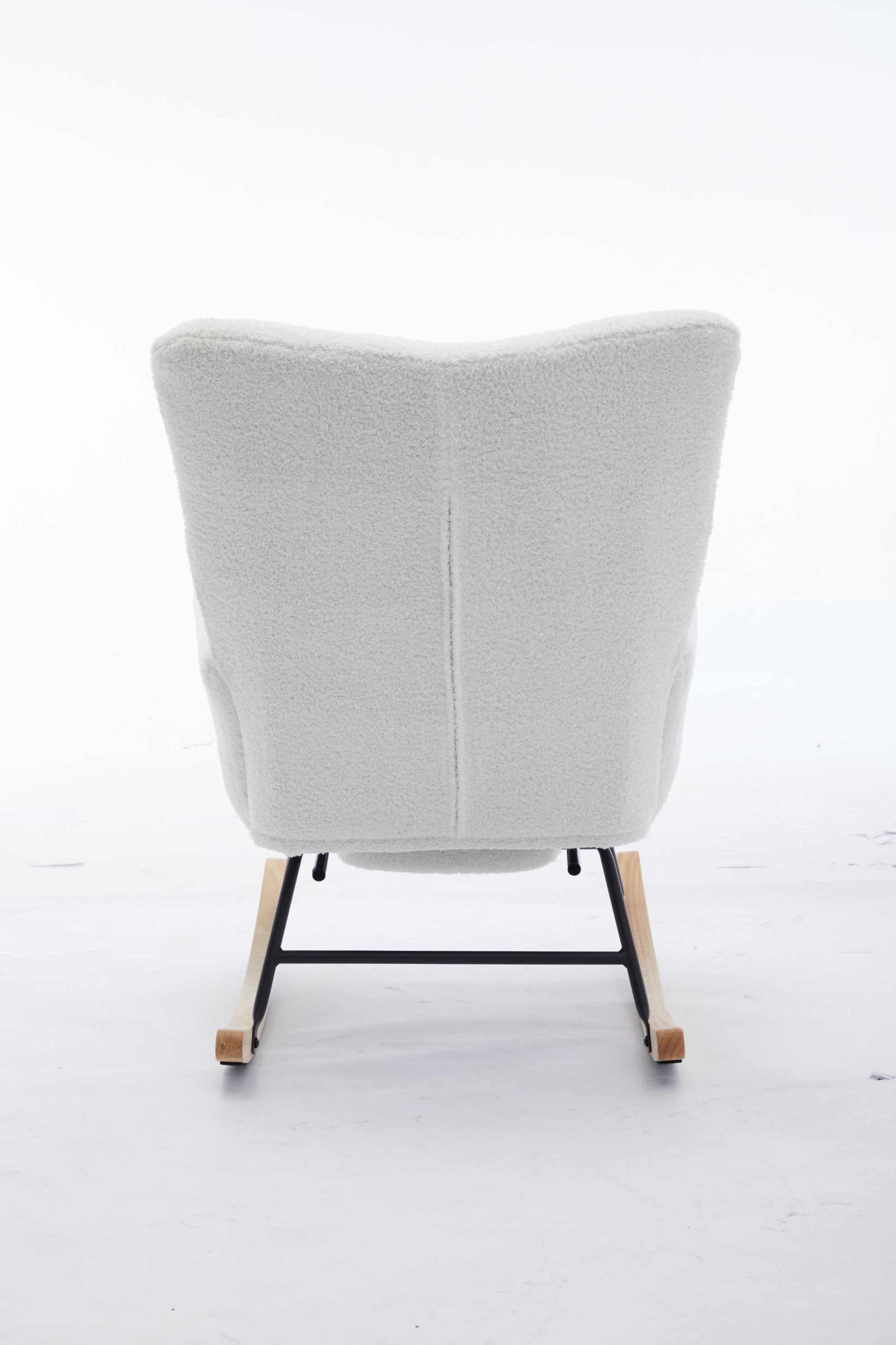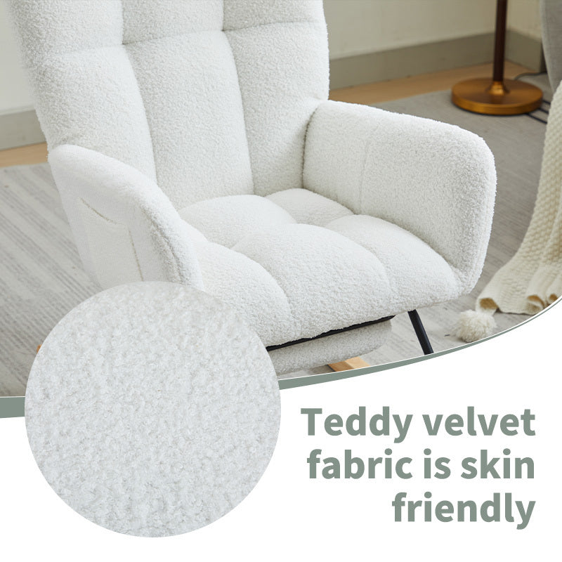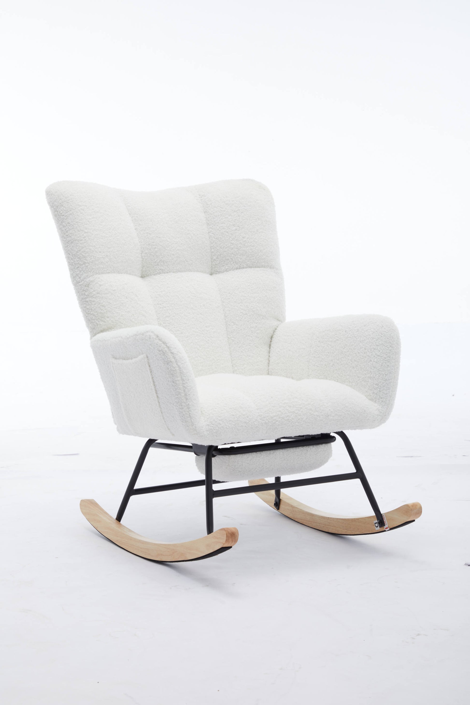 Modern Nursery Rocking Chair, Upholstered Glider Chair with High Backrest, Rocker Accent Armchair with Solid Wood Legs for Nursery Bedroom Living Room WHITE