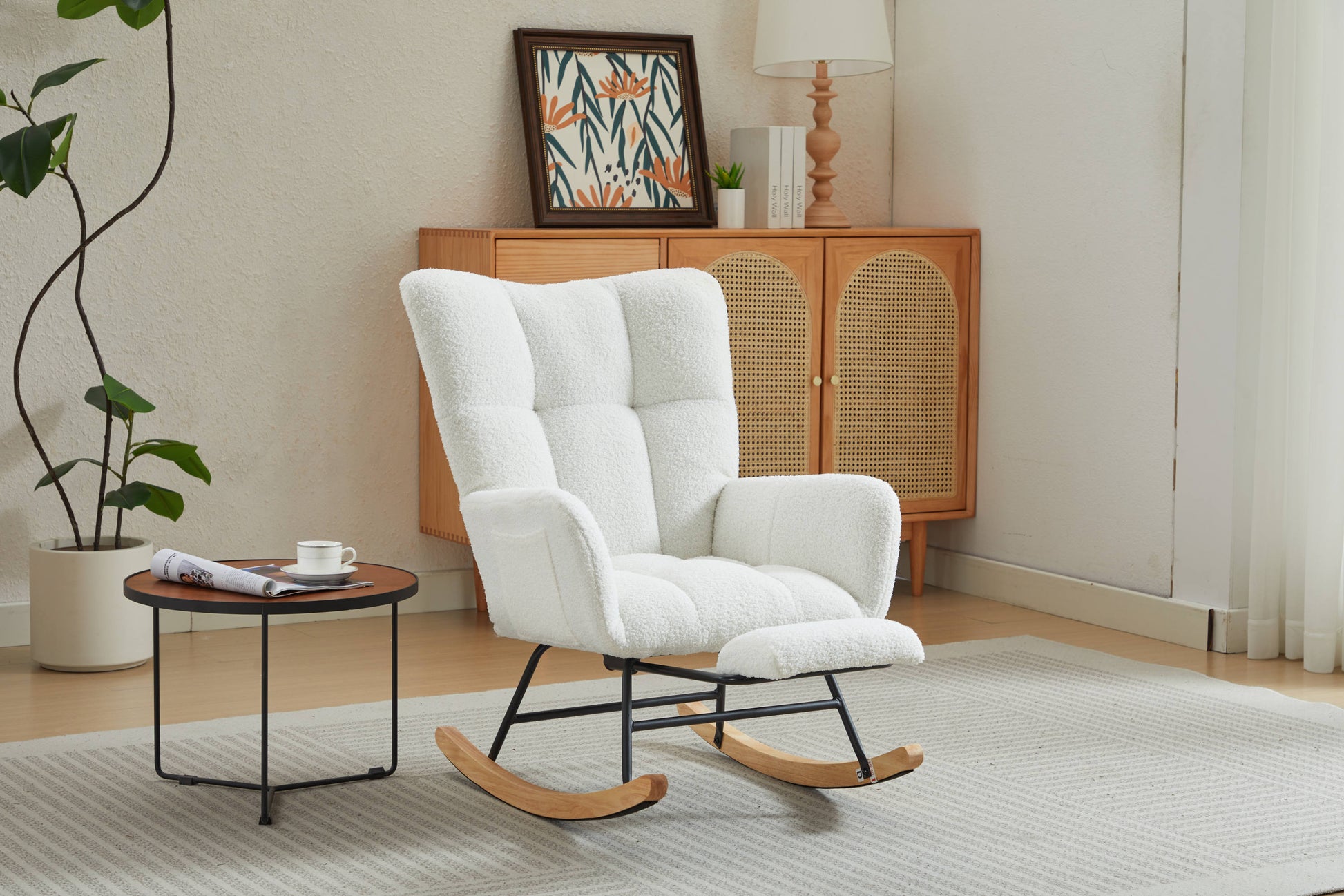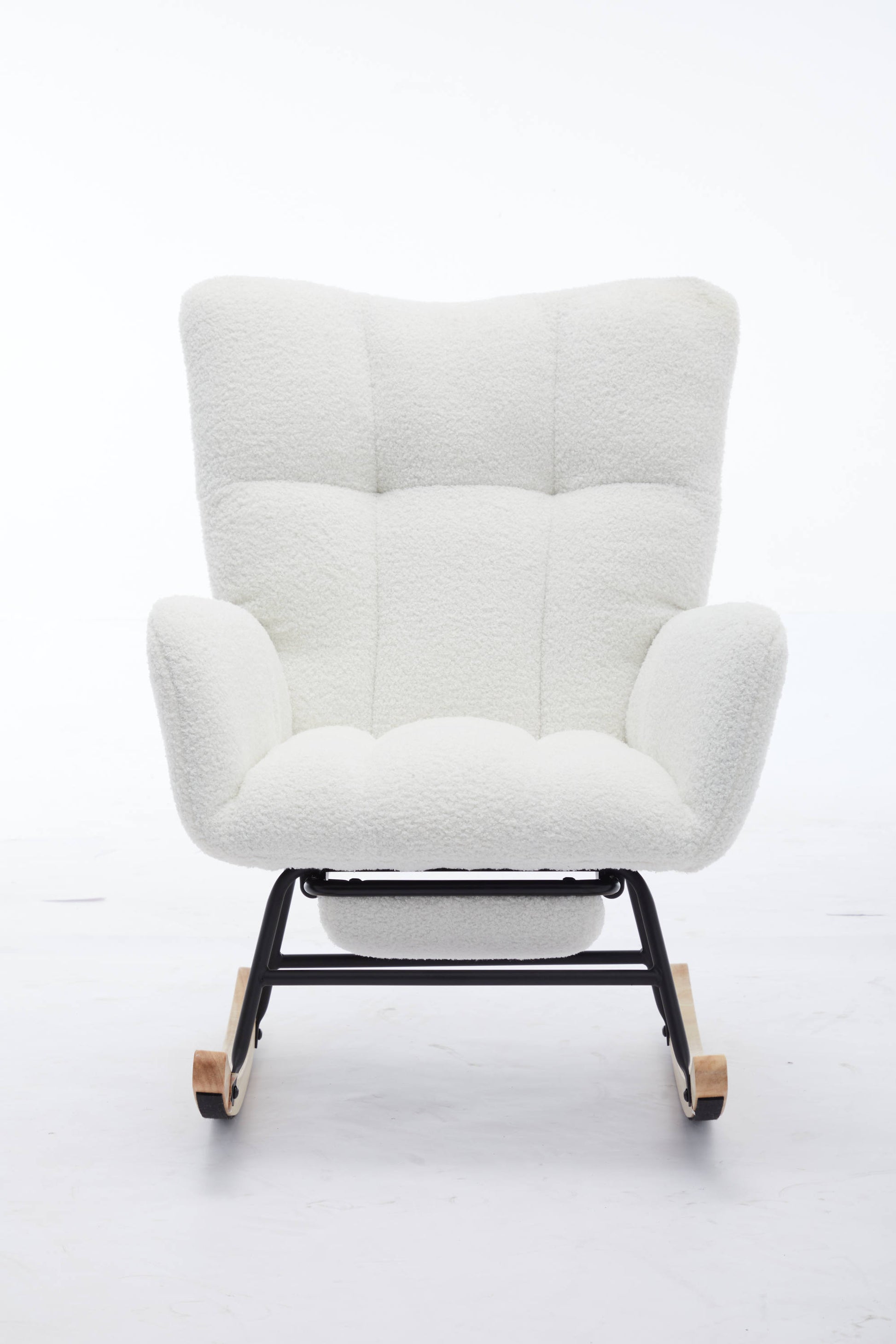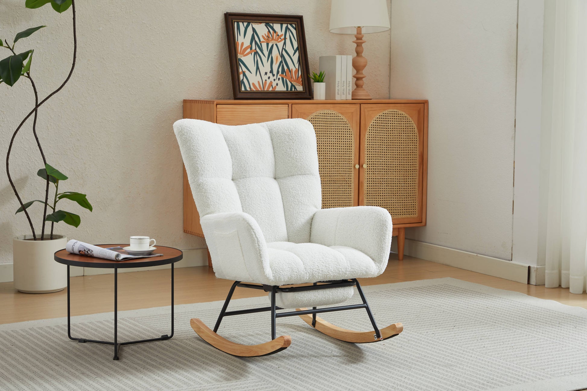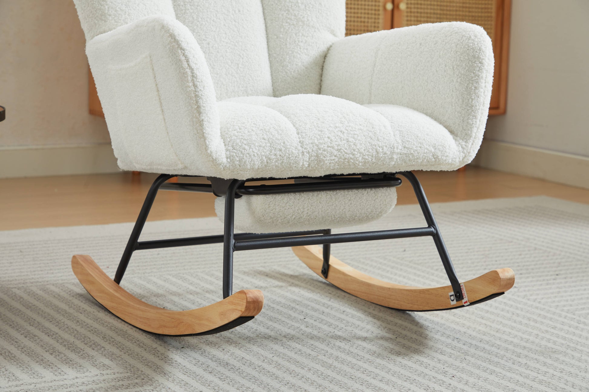 Modern Nursery Rocking Chair, Upholstered Glider Chair with High Backrest, Rocker Accent Armchair with Solid Wood Legs for Nursery Bedroom Living Room WHITE