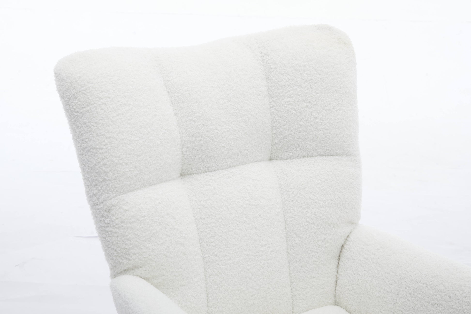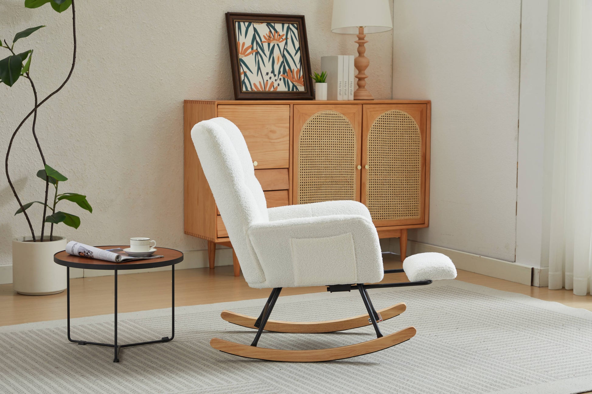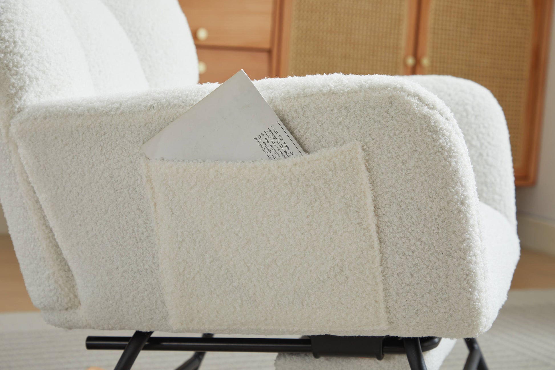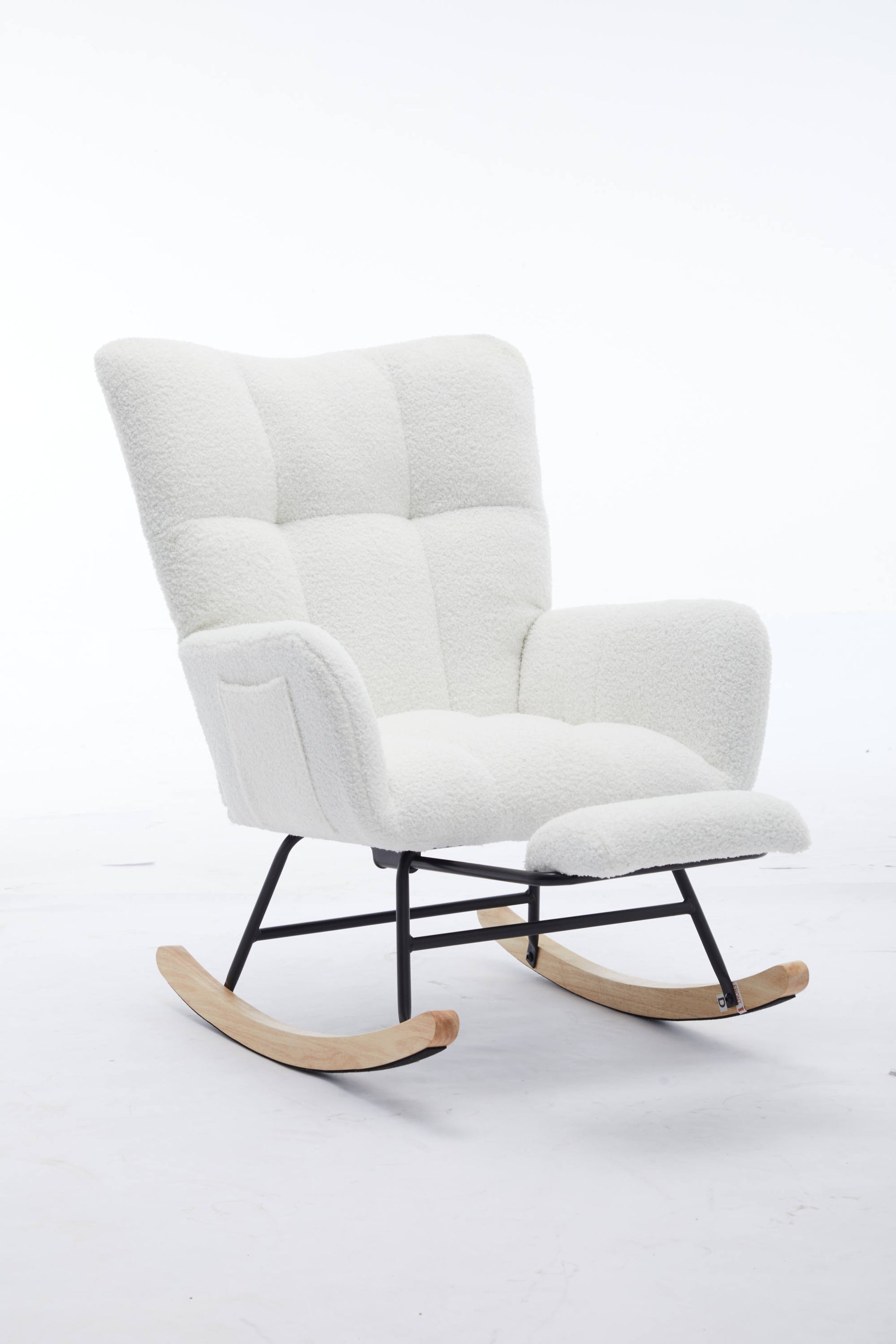 Modern Nursery Rocking Chair, Upholstered Glider Chair with High Backrest, Rocker Accent Armchair with Solid Wood Legs for Nursery Bedroom Living Room WHITE