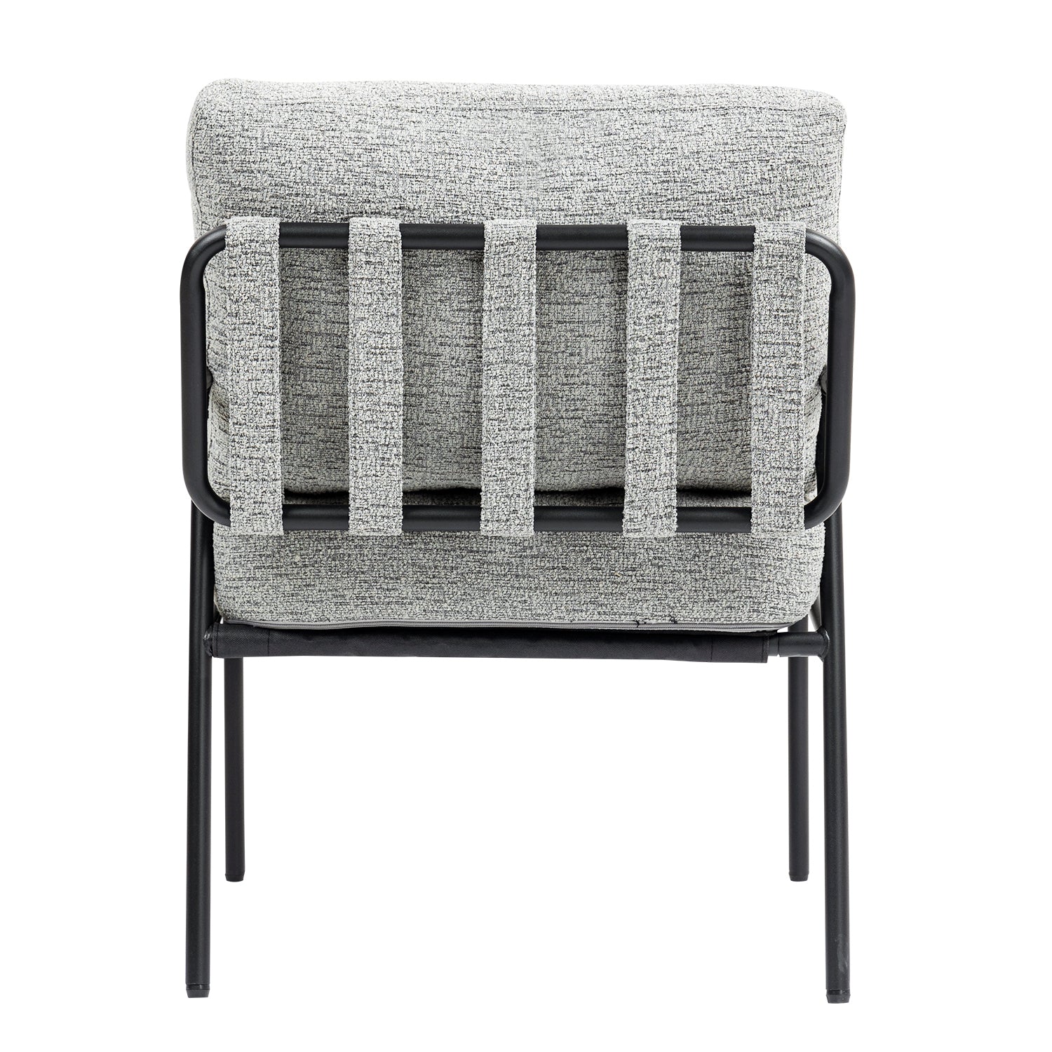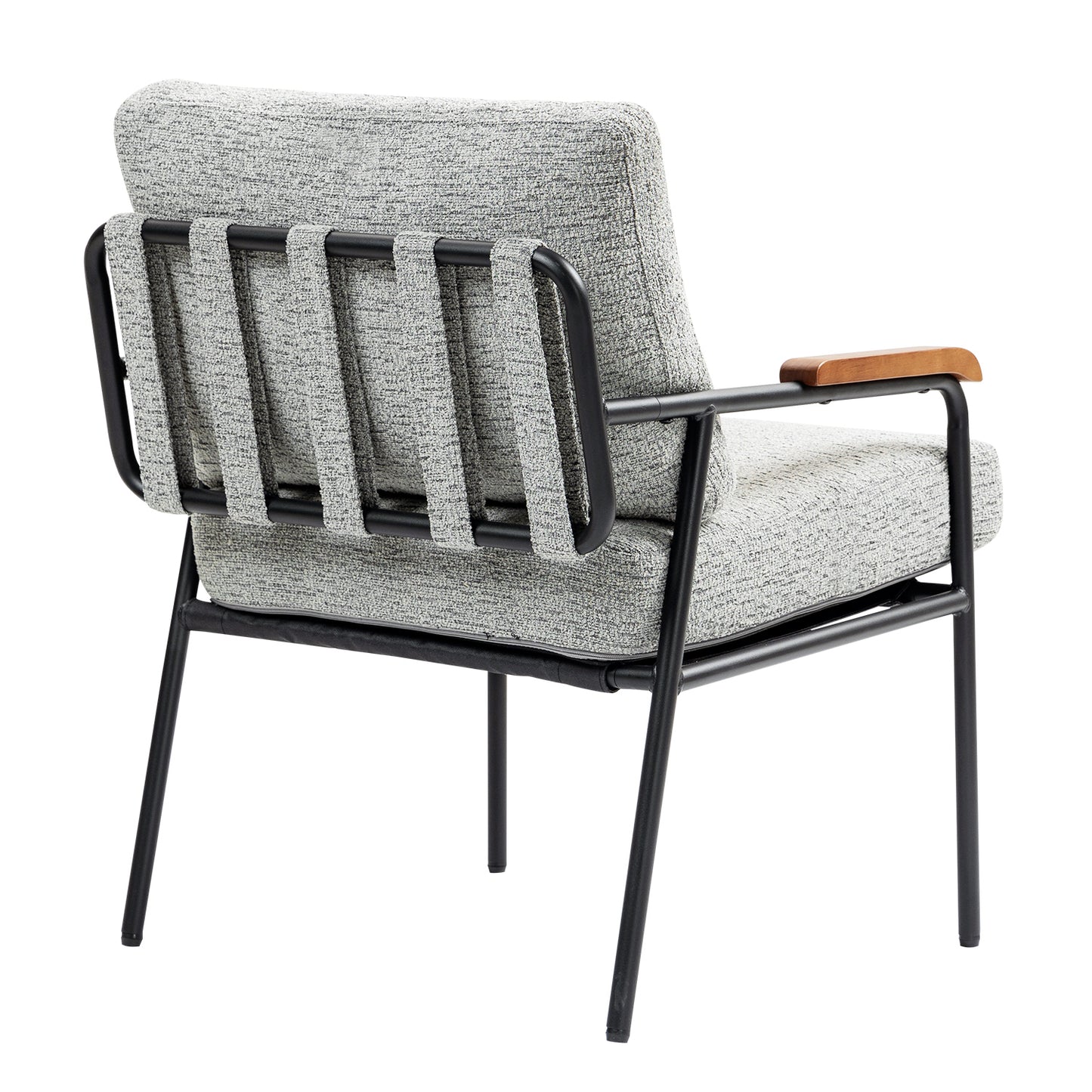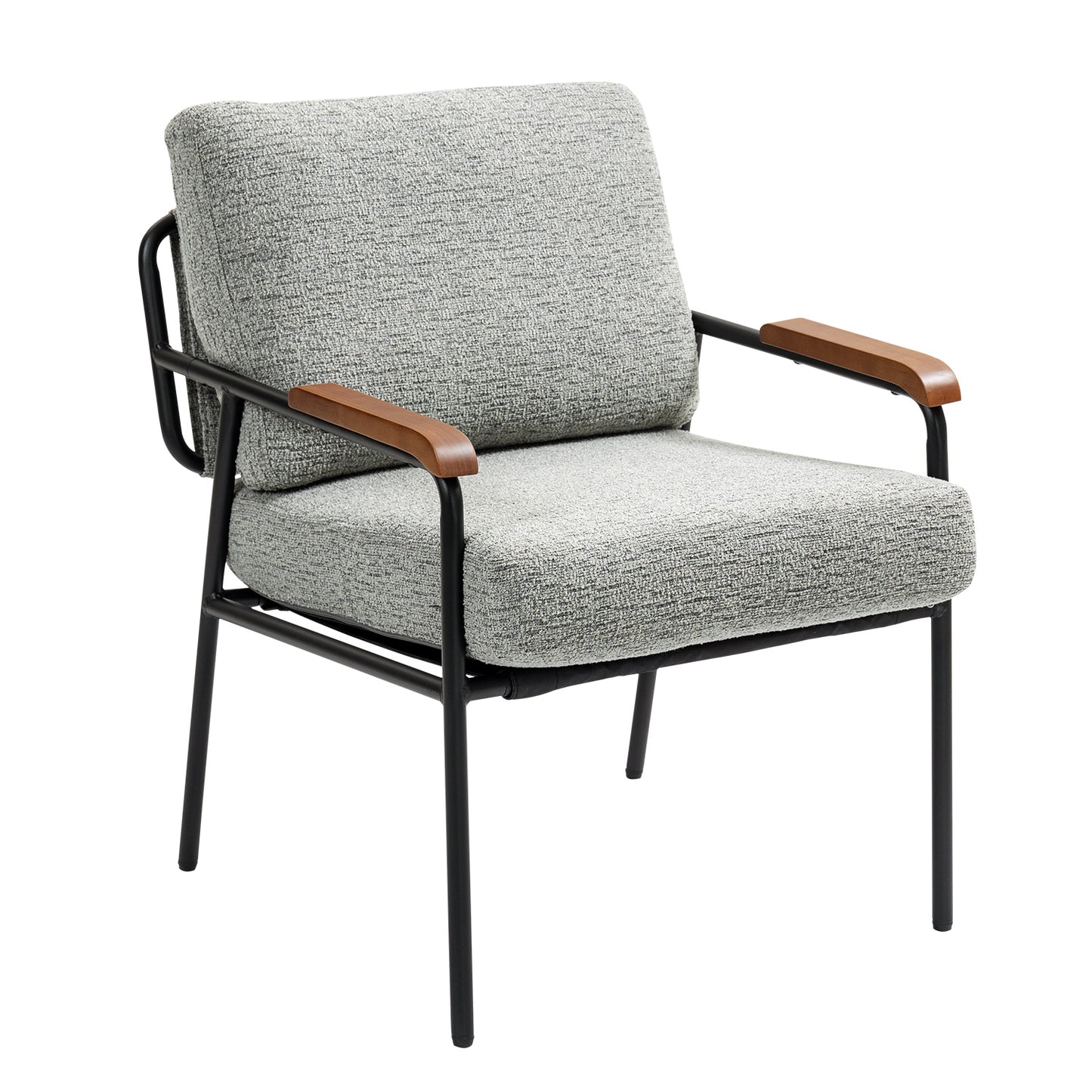 Modern Accent Chair with Natural Wood Armrests and Black Metal Frame, Light Gray Upholstered Seat and Backrest, Comfortable Lounge Chair for Bedroom, Living Room, Dining Room, Set of 1 (GREY)