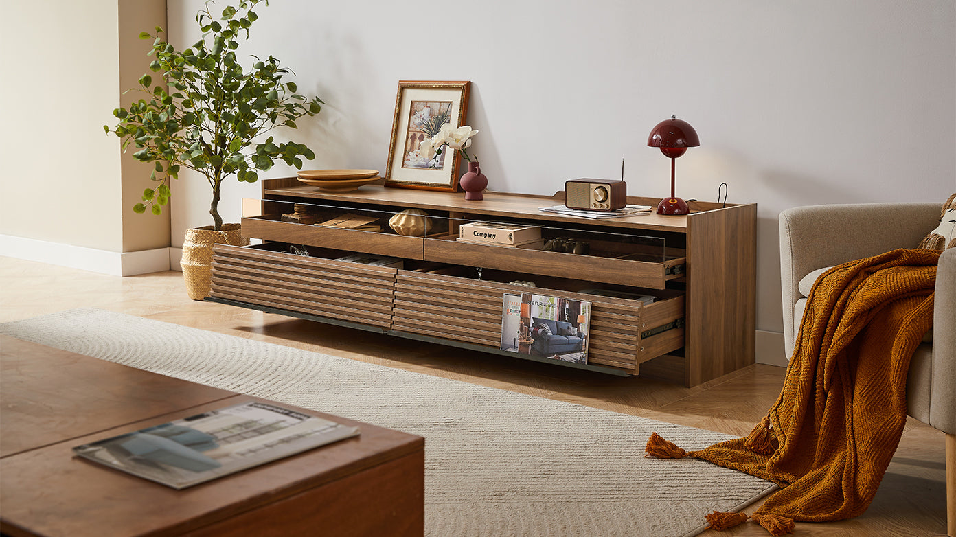 - Functional Magazine and Book Storage:The top surface of the drawer fronts is designed to hold magazines and books, providing a stylish and practical solution for keeping your favorite reads within reach while adding to the overall decor.