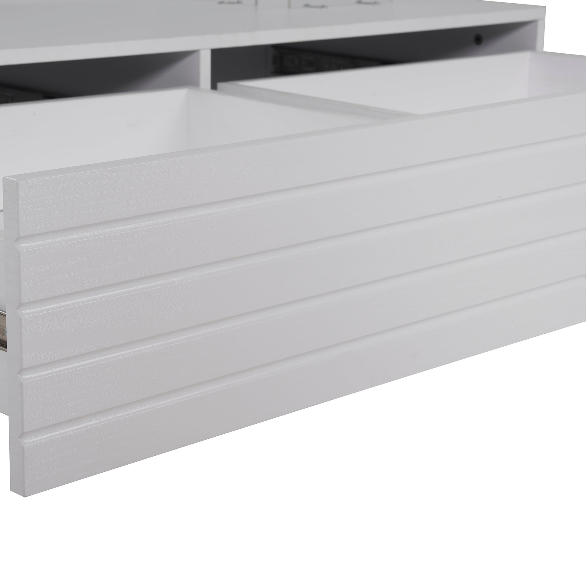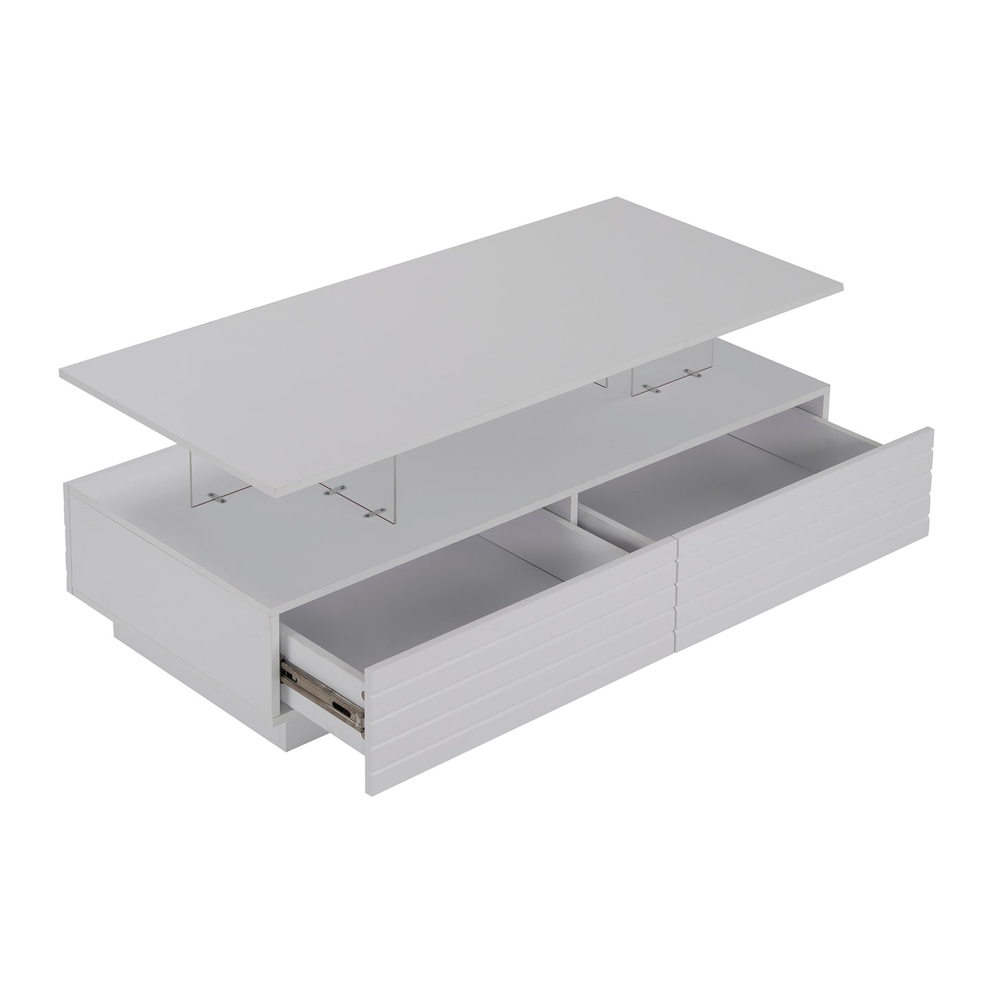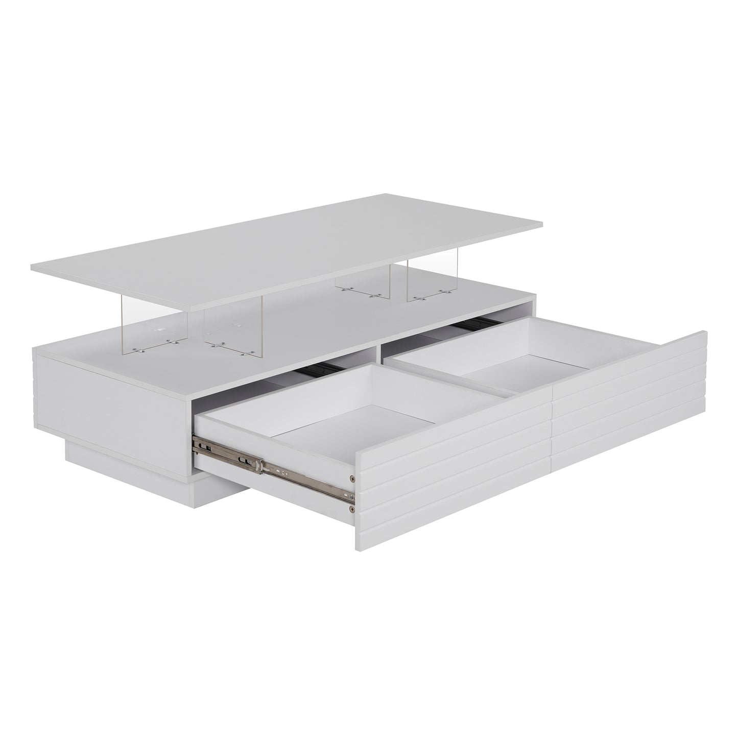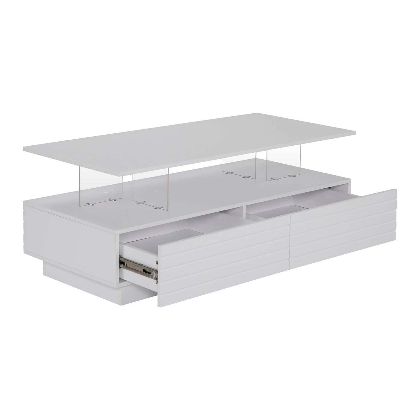 Modern White Rectangular LED Lights Coffee Table with 2 drawers in 47.2'