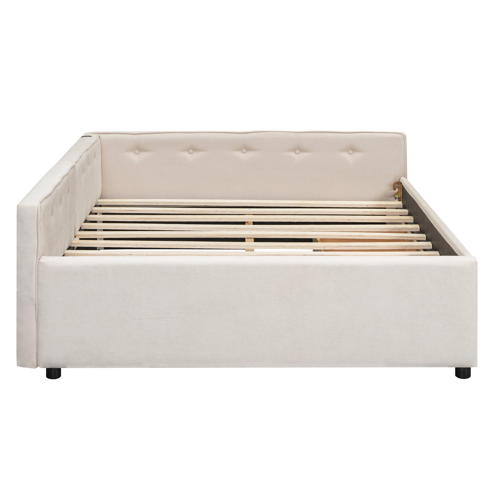 Full Size Upholstered Platform Bed with USB and 2 Drawers, Beige