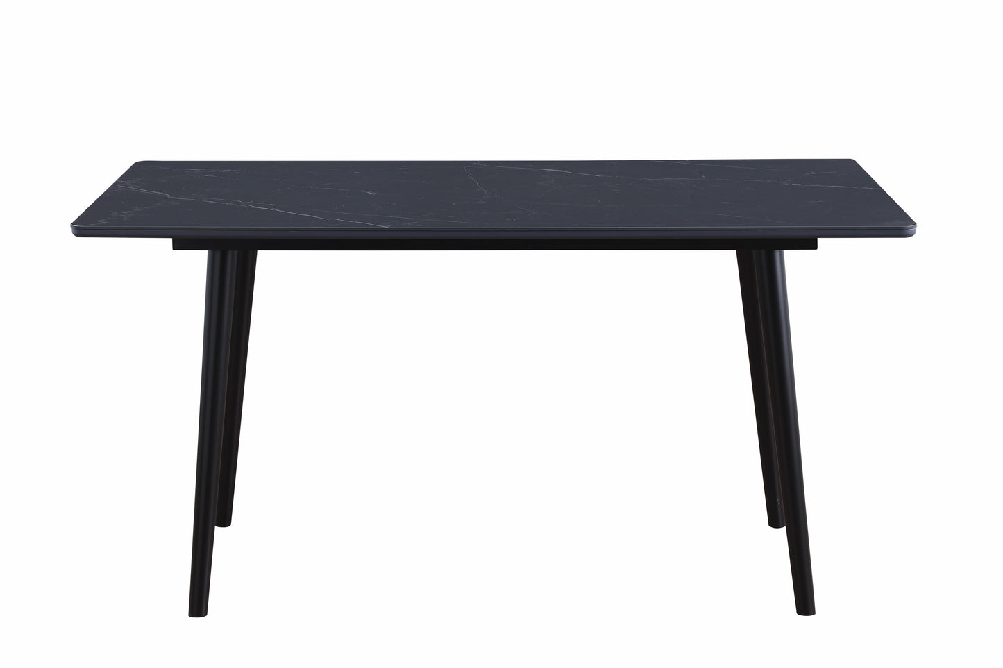 Modern Contemporary 5pc Dining Set Black Sintered Stone Table and Taupe Chairs Fabric Upholstered Stylish Furniture