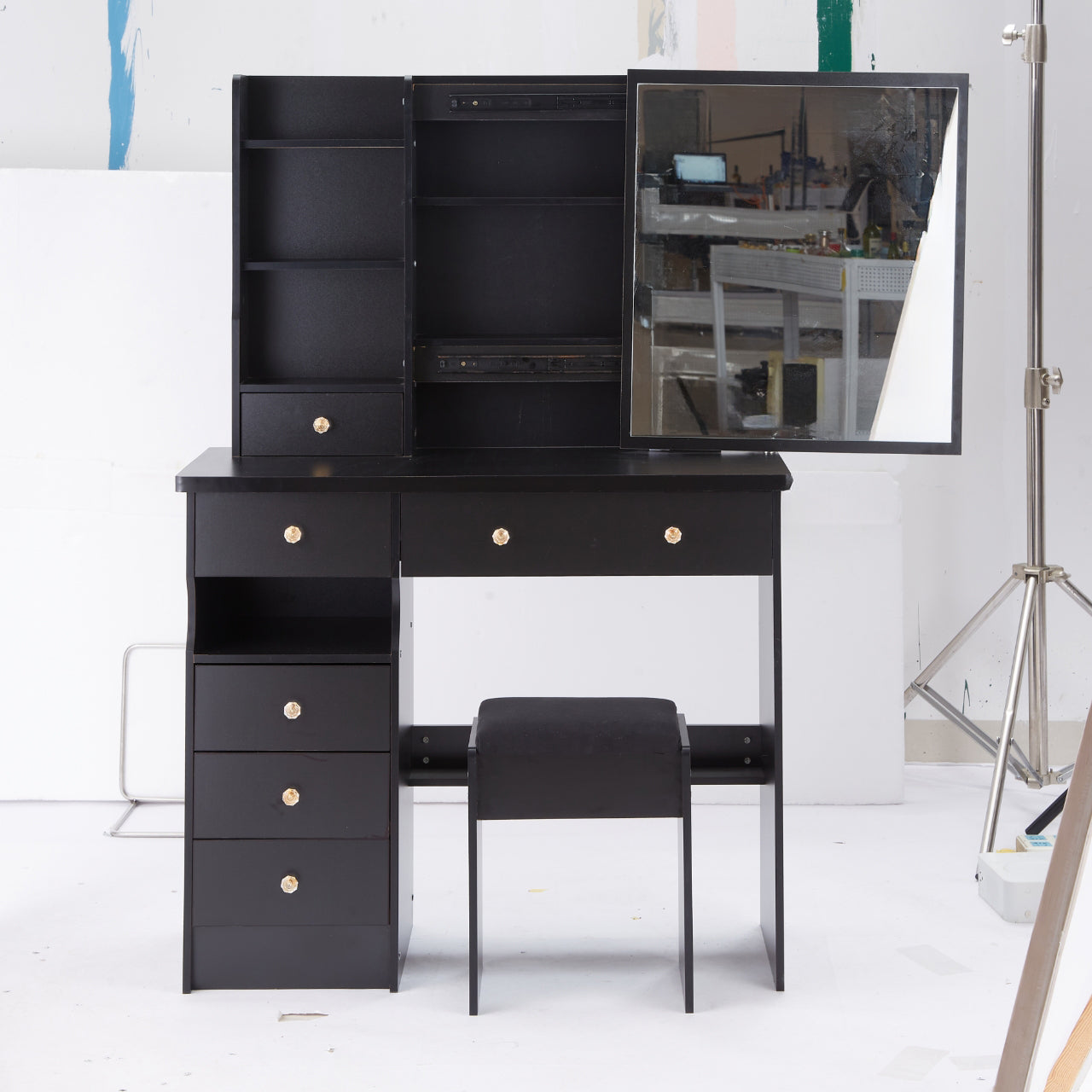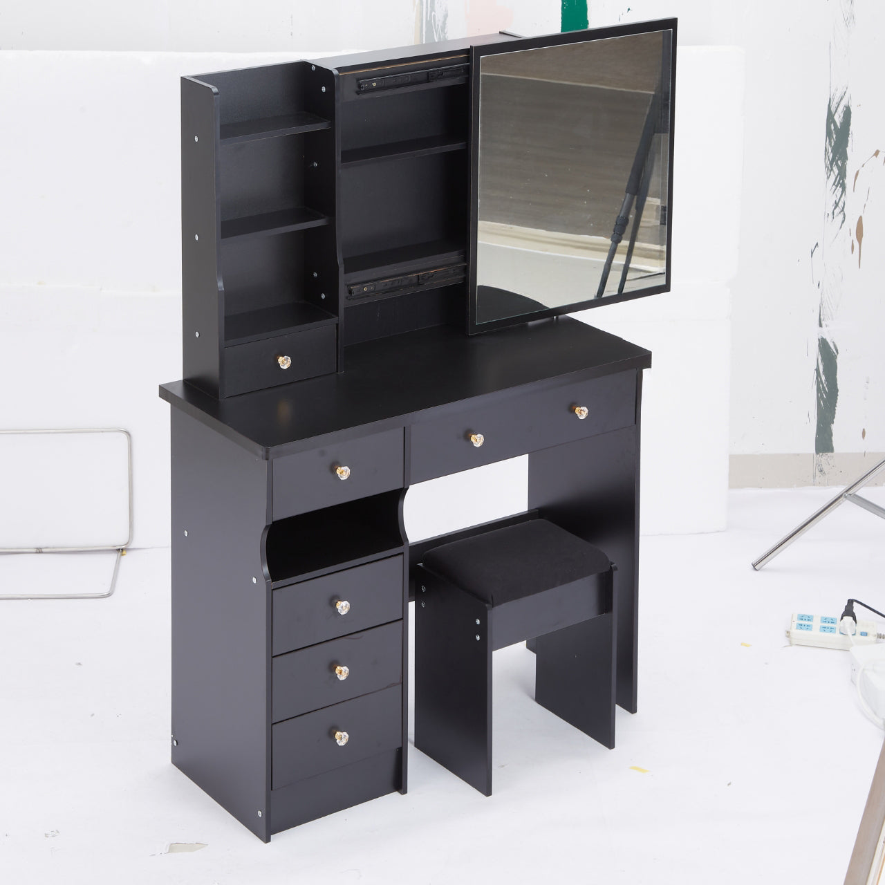 37' Middle Size Left Drawer Desktop Vanity Table + Cushioned Stool, Extra Large Right sliding mirror, Multi Layer High Capacity Storage, Practical Fashionable Dresser, Suitable For Large Space
