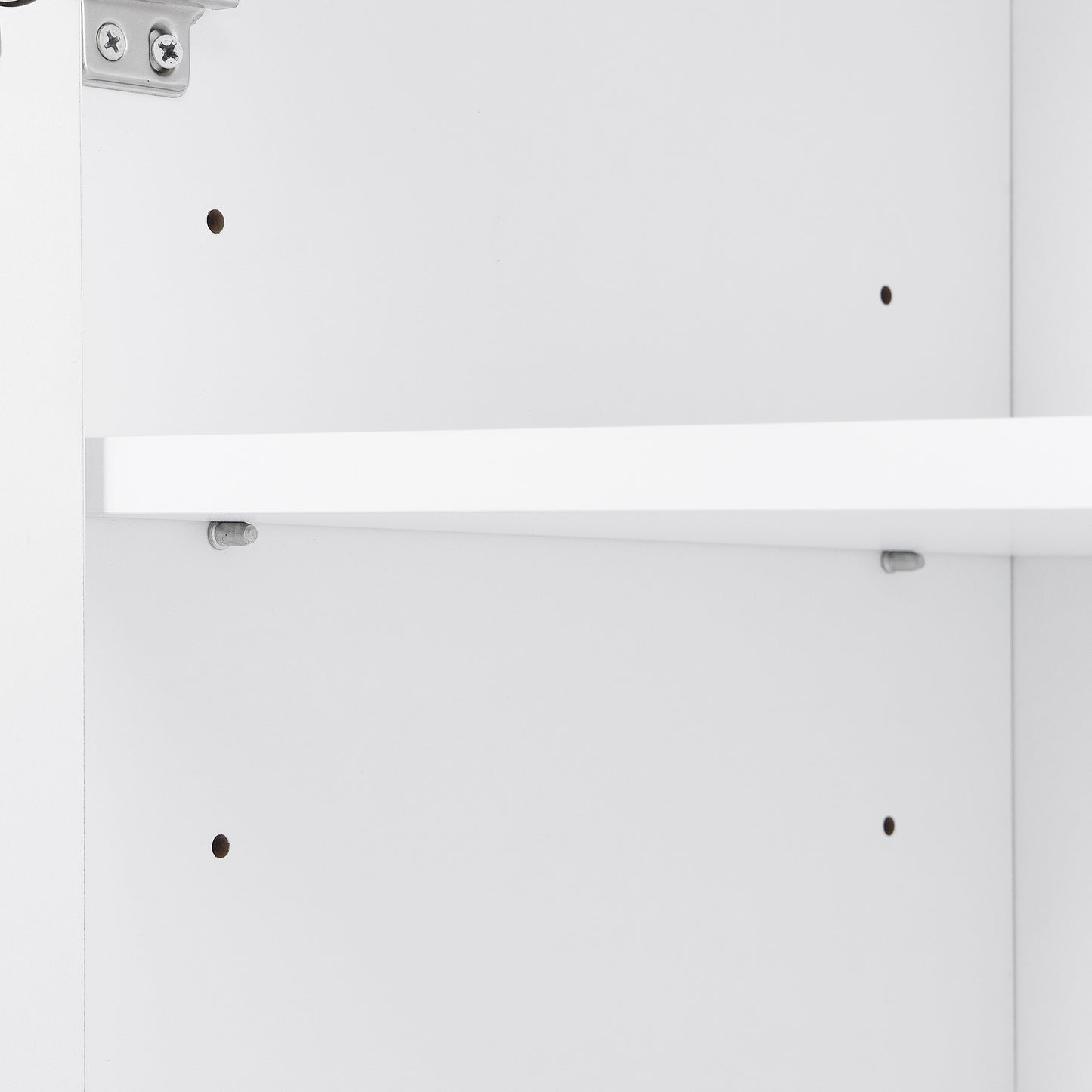 This storage cabinet features three layers of adjustable partitions, allowing you to customize the height to accommodate items of various sizes. Its drawer and doors are equipped with beveled handles, ensuring convenient access. Additionally, the rounded edge on the top provides added safety, minimizing the risk of bumps in your daily life.
