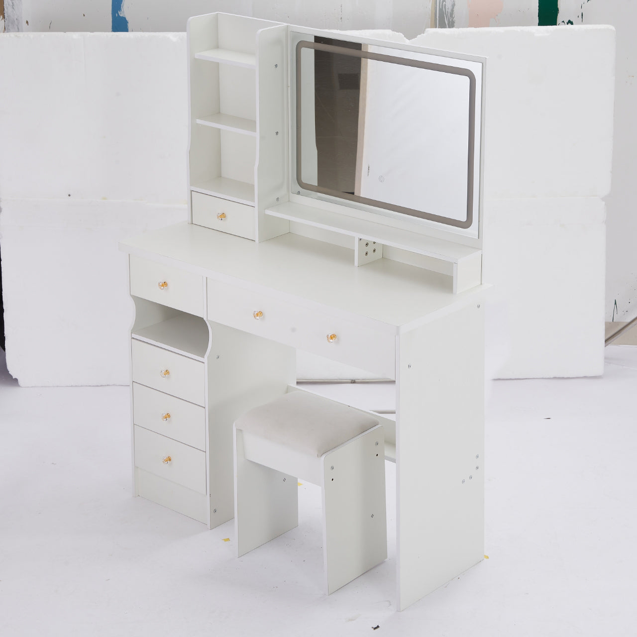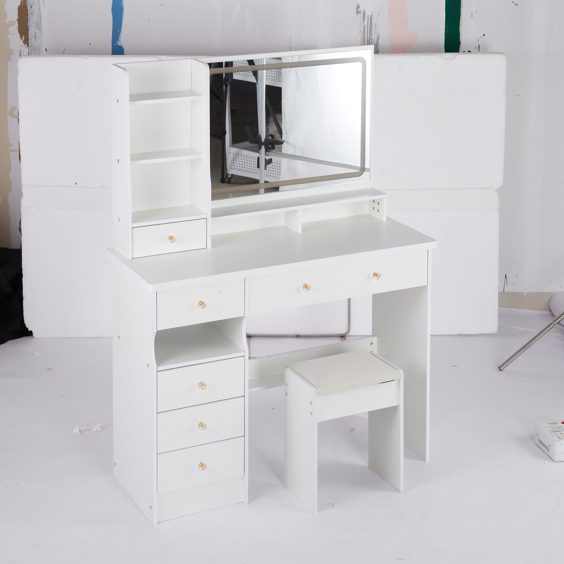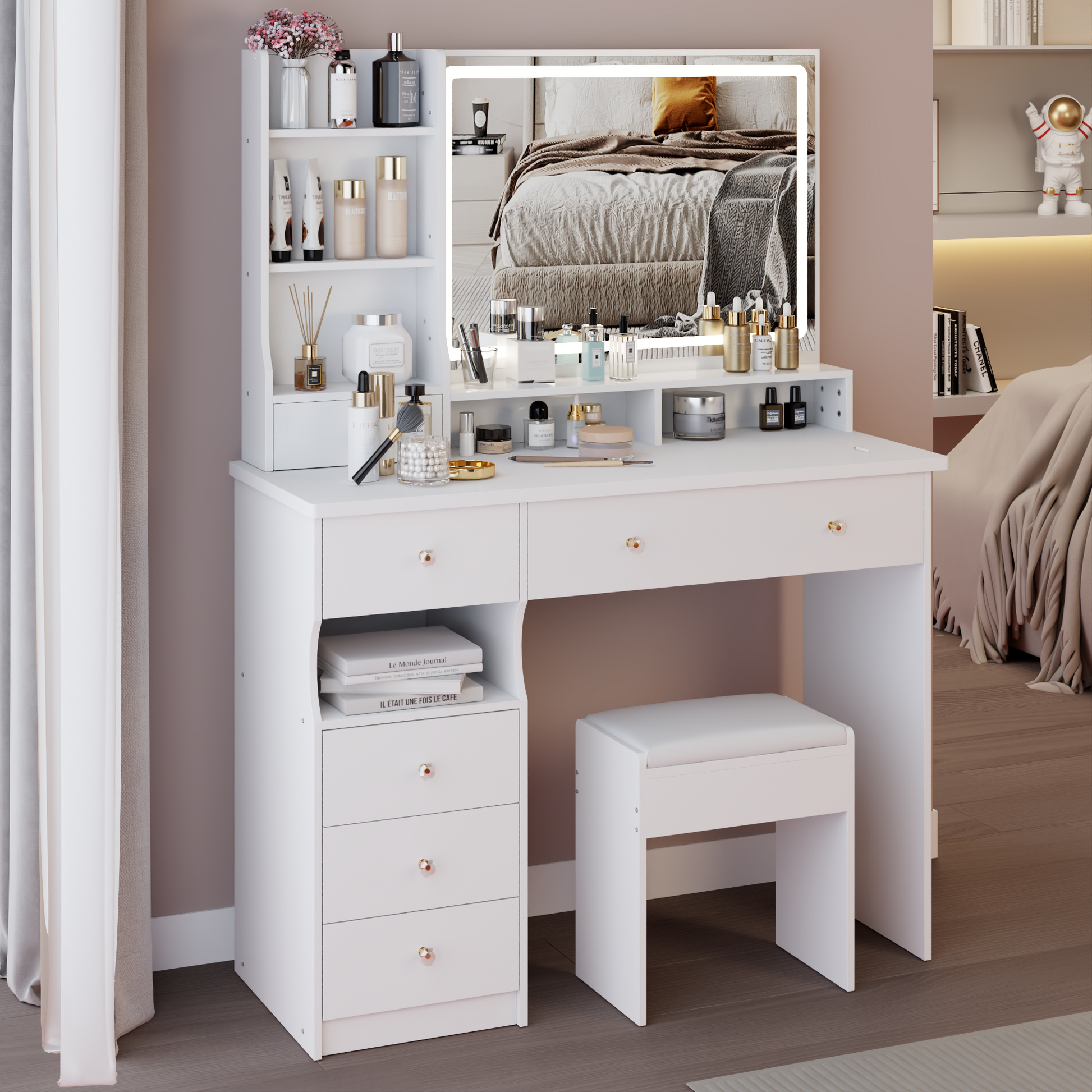 - [Including a dressing table and a cushioned dressing stool]: This is a dressing table set, which includes a dressing table and a cushioned stool. You will no longer need to make additional purchases. This will greatly save you time and delivery costs.