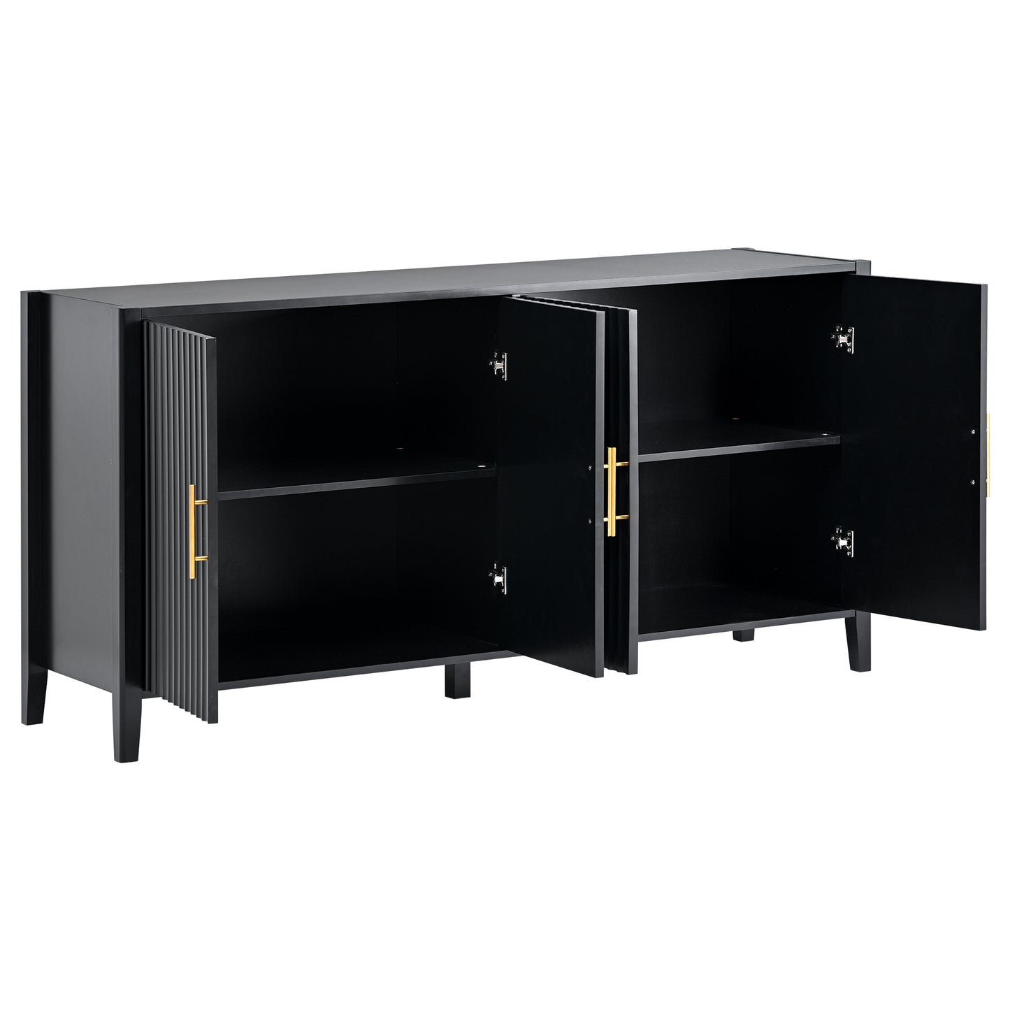 U_Style 63.1''Modern 4-Vertical Wavy Slatted Doors Sideboard,Storage Cabinet With Adujustable Shelf, Solid Wood Legs with Painted,Metal Handles,for Dining Room,Living Room, Kitchen, or Entryway(Black)