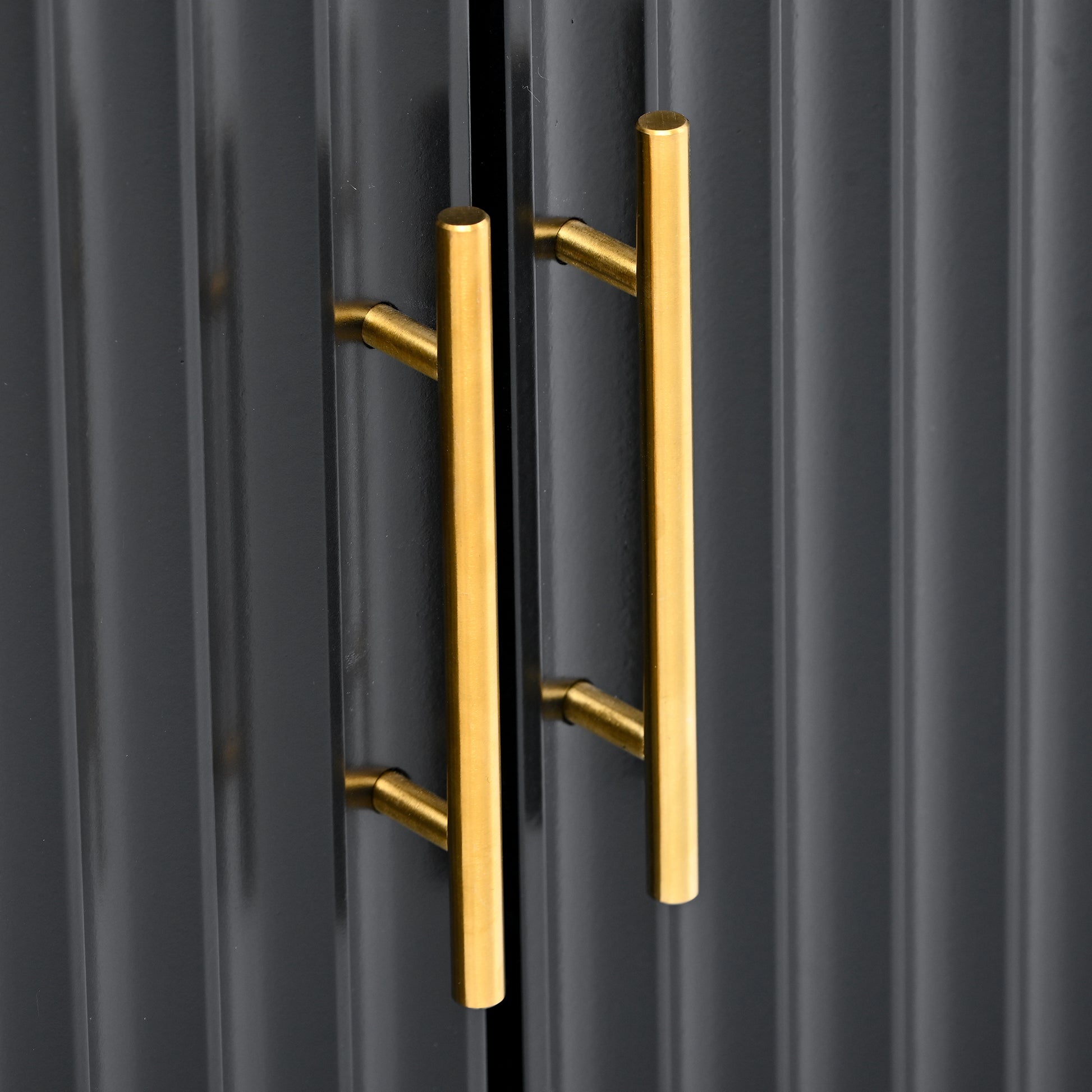 - [Stylish Wavy Door Design]:Features four vertically slatted cabinet doors with a wave-textured pattern that adds a modern and artistic flair to any space. The unique design blends style and function effortlessly.