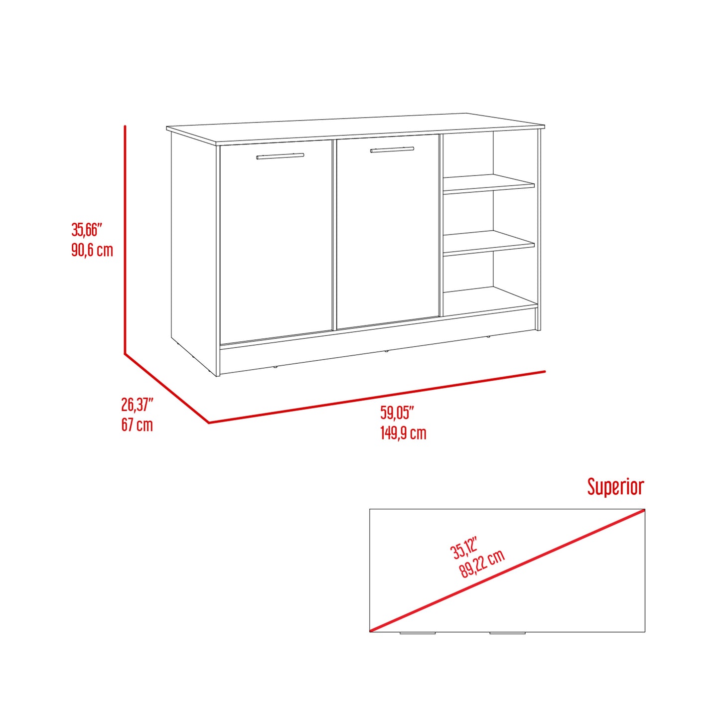 Ginger Kitchen Island, Three Open Shelves, Two Cabinets -White / Dark Brown