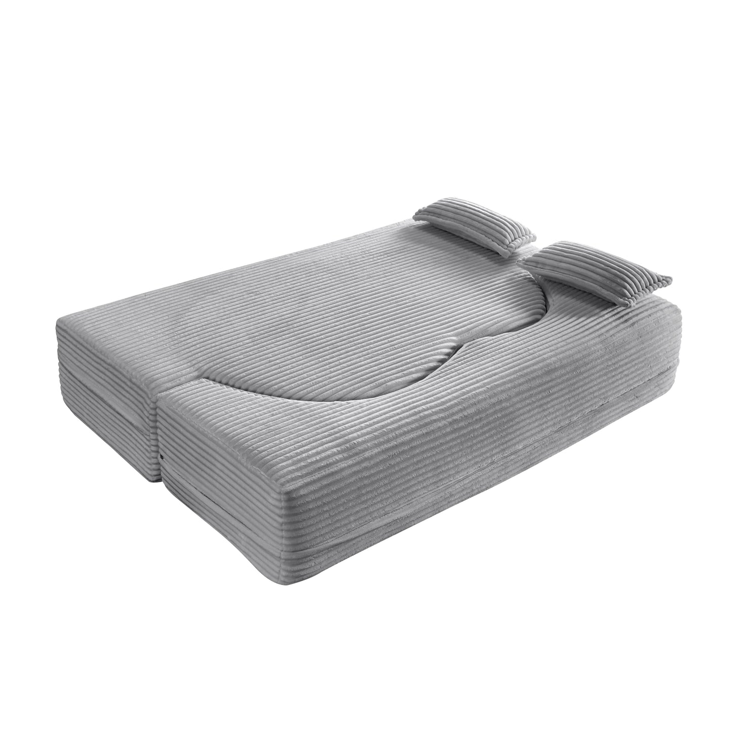 Modern Floor Sofa with 2 Pillows, Convertible Plush Corduroy Foam-Filled Sleeper Sofa Bed,15 ' Full Size Folding Mattress for Living Room, Guest Bed, no assembly required, Light Grey