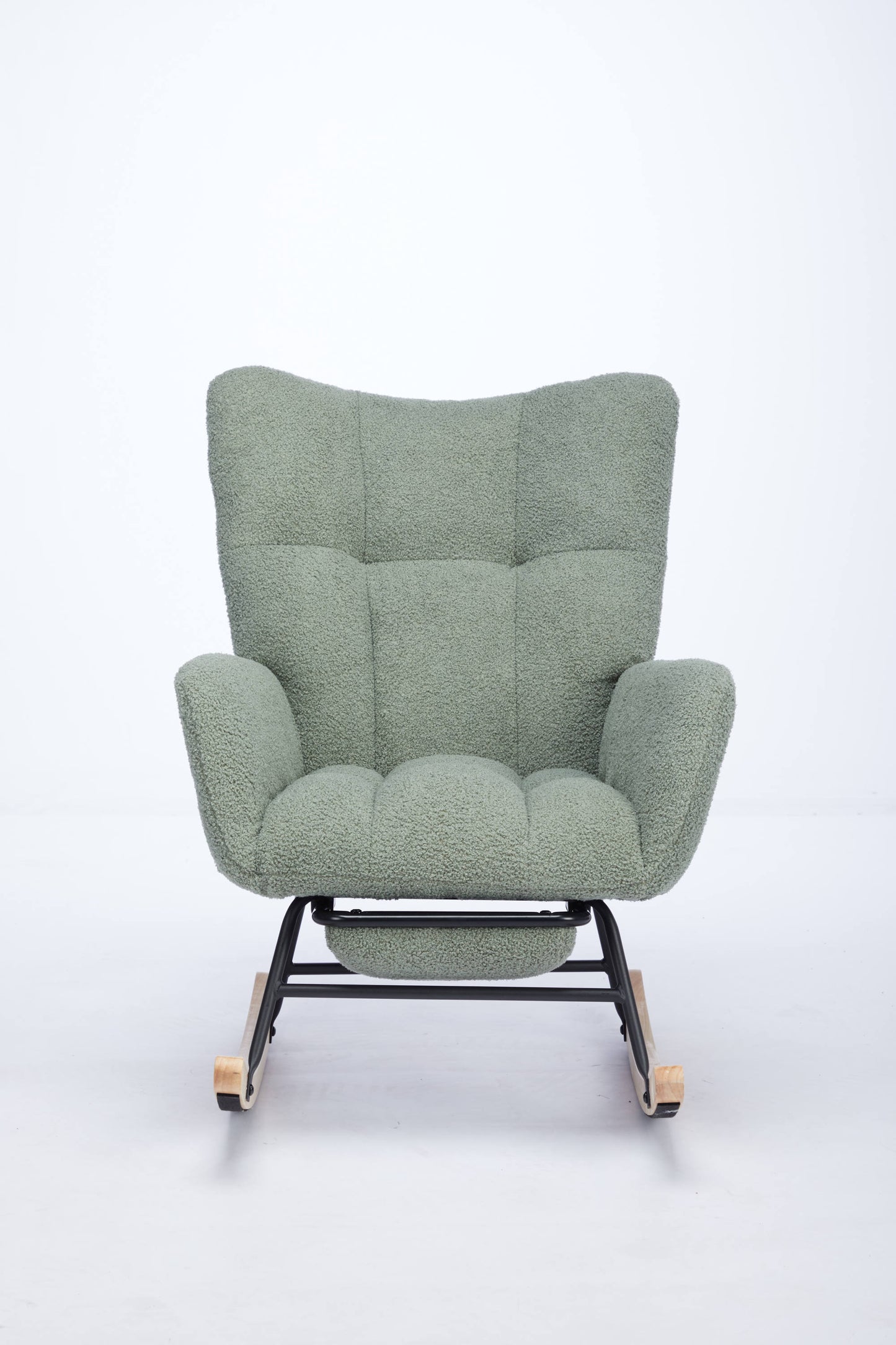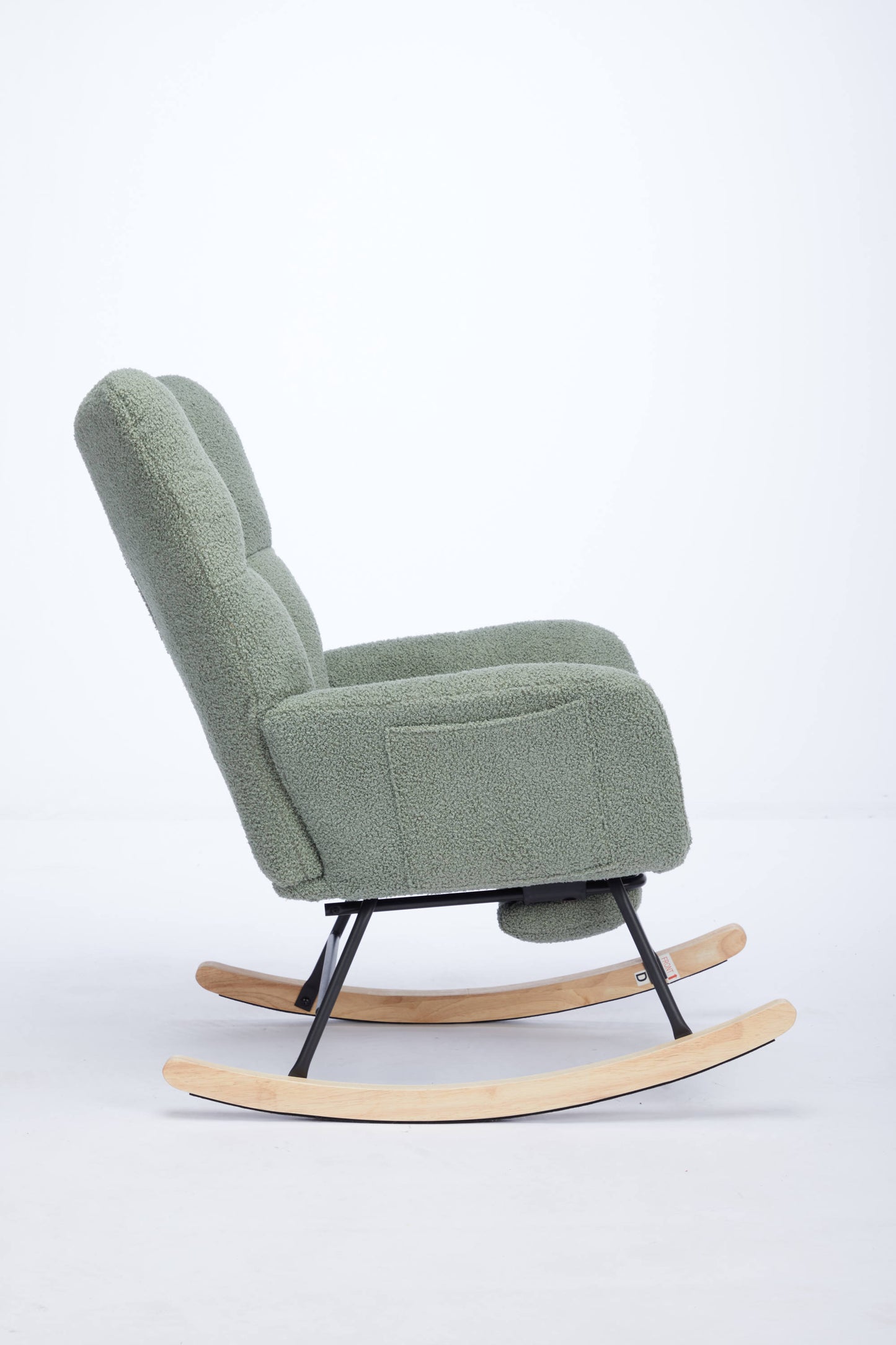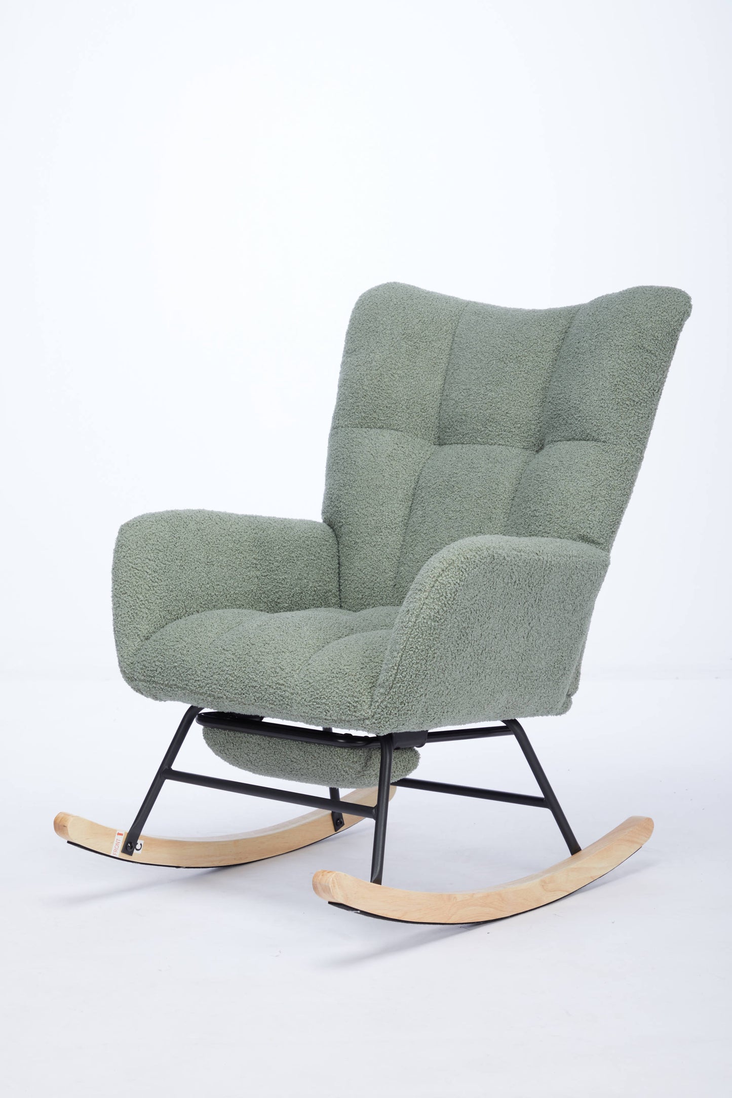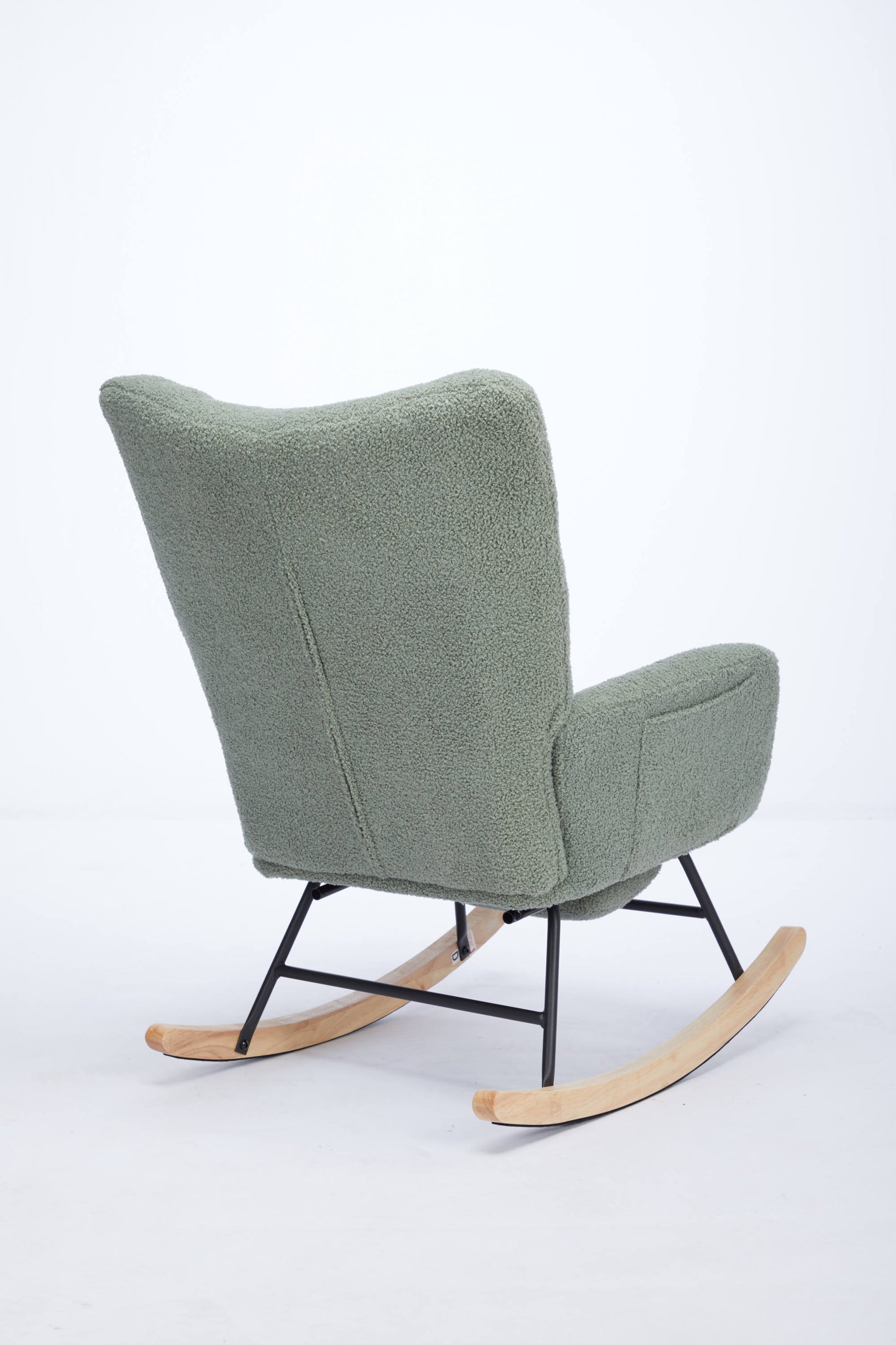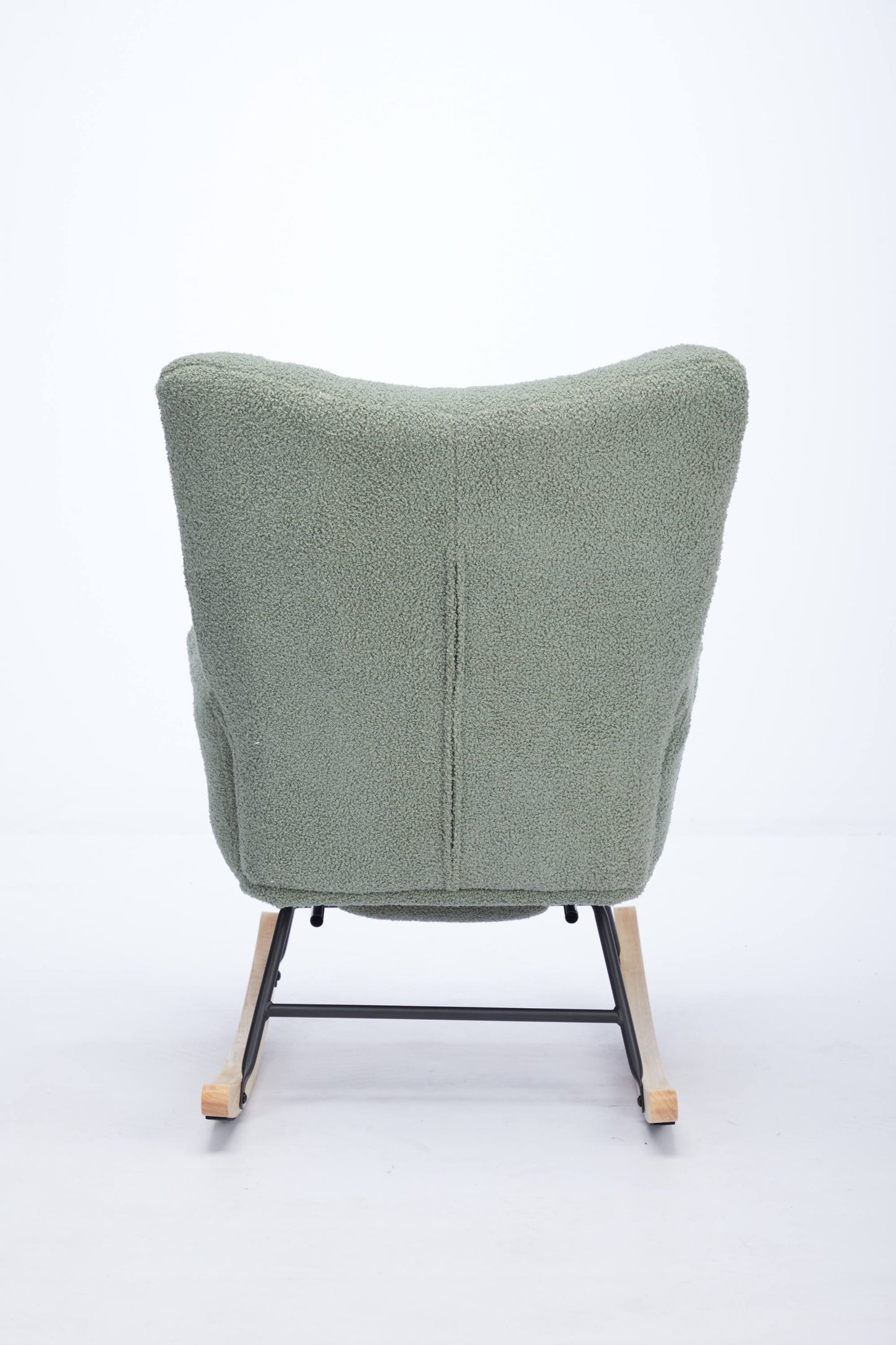 Modern Nursery Rocking Chair, Upholstered Glider Chair with High Backrest, Rocker Accent Armchair with Solid Wood Legs for Nursery Bedroom Living Room GREEN