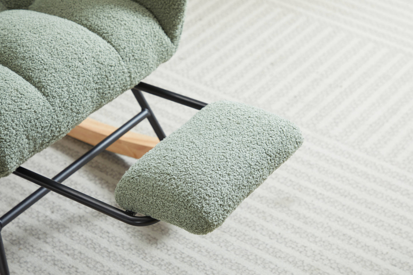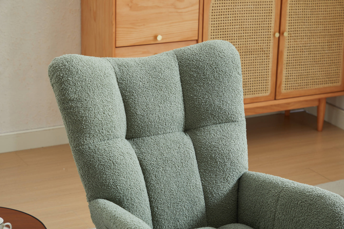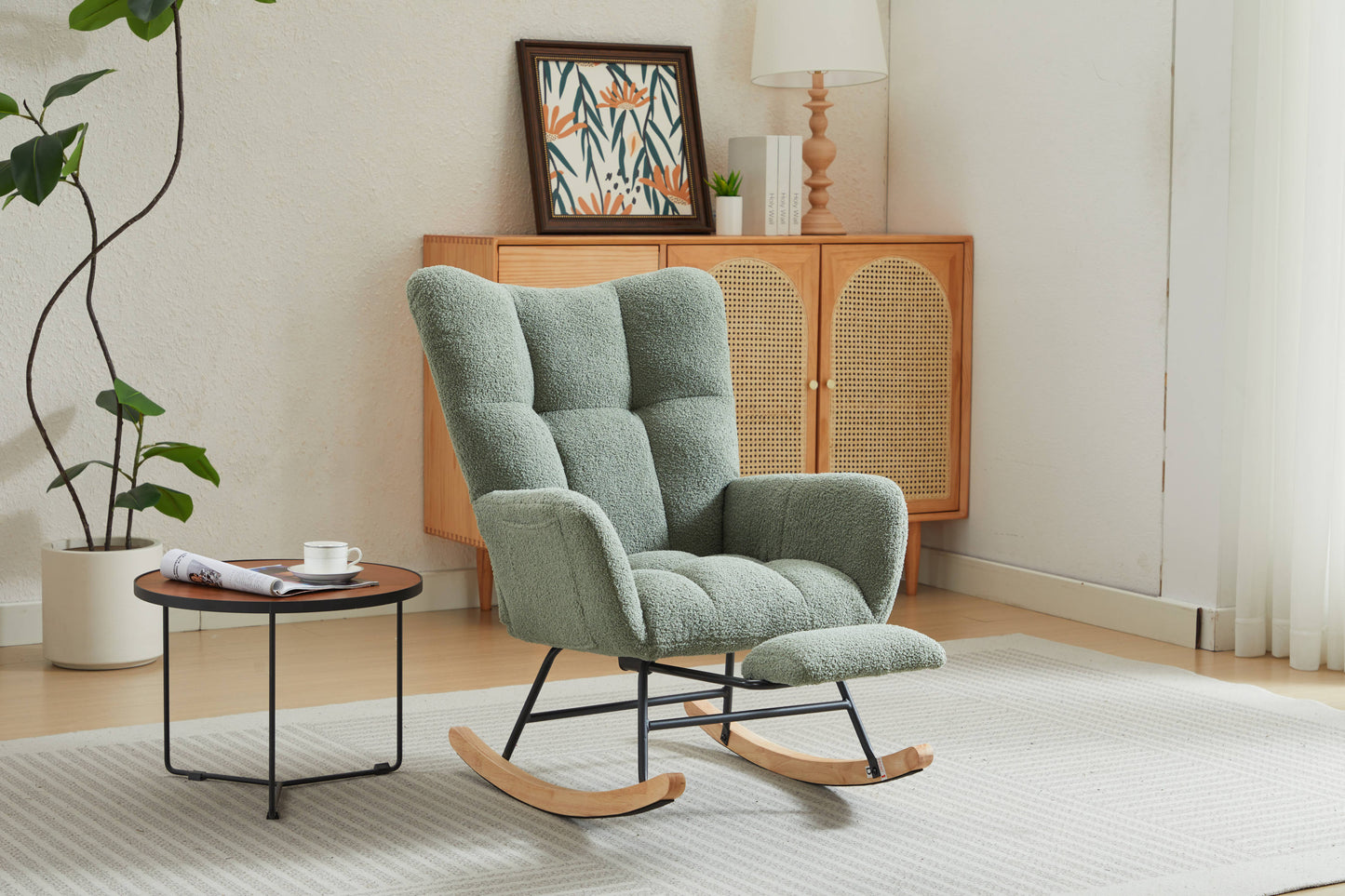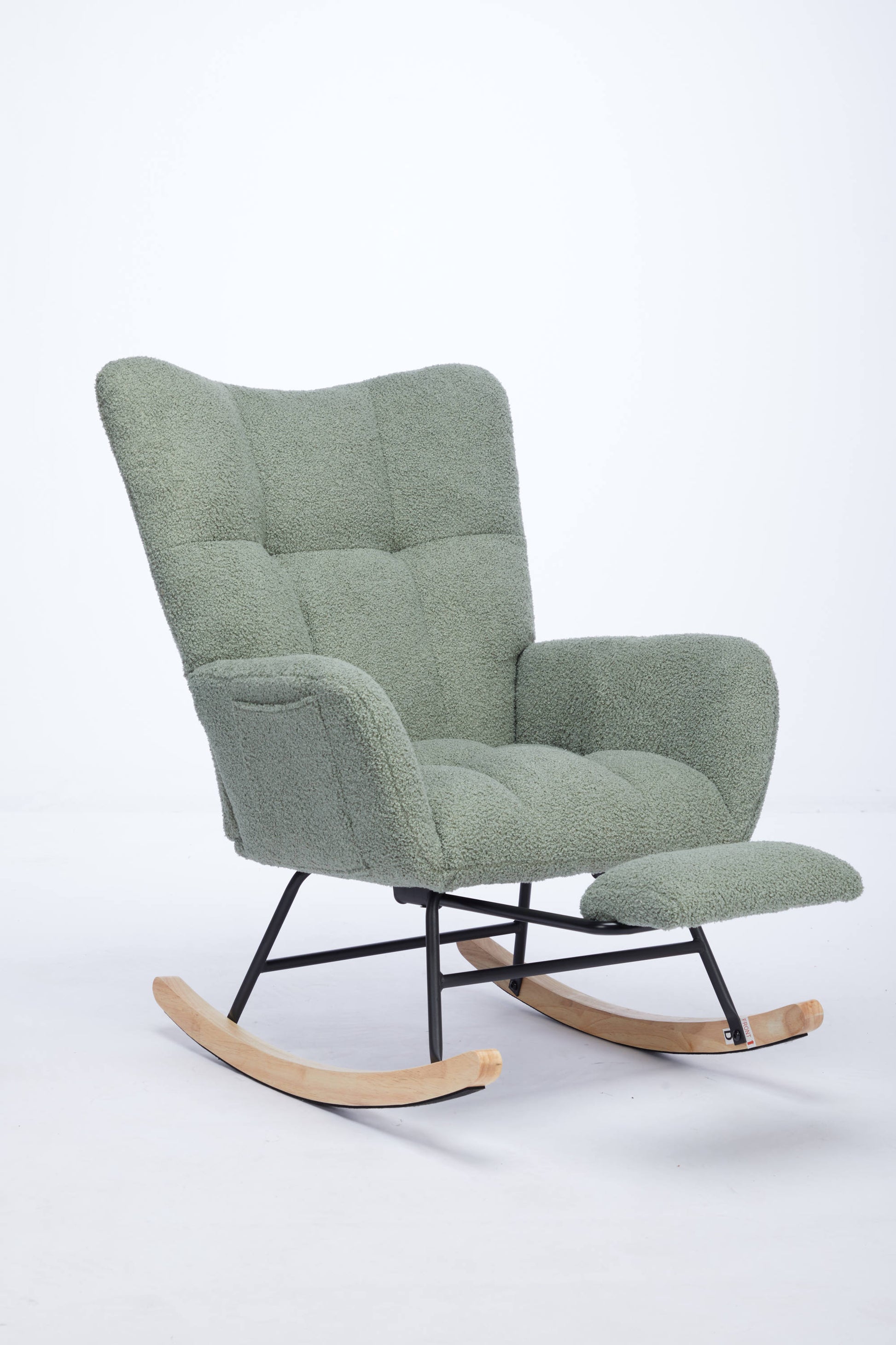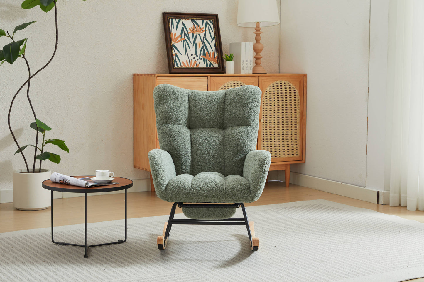 Modern Nursery Rocking Chair, Upholstered Glider Chair with High Backrest, Rocker Accent Armchair with Solid Wood Legs for Nursery Bedroom Living Room GREEN