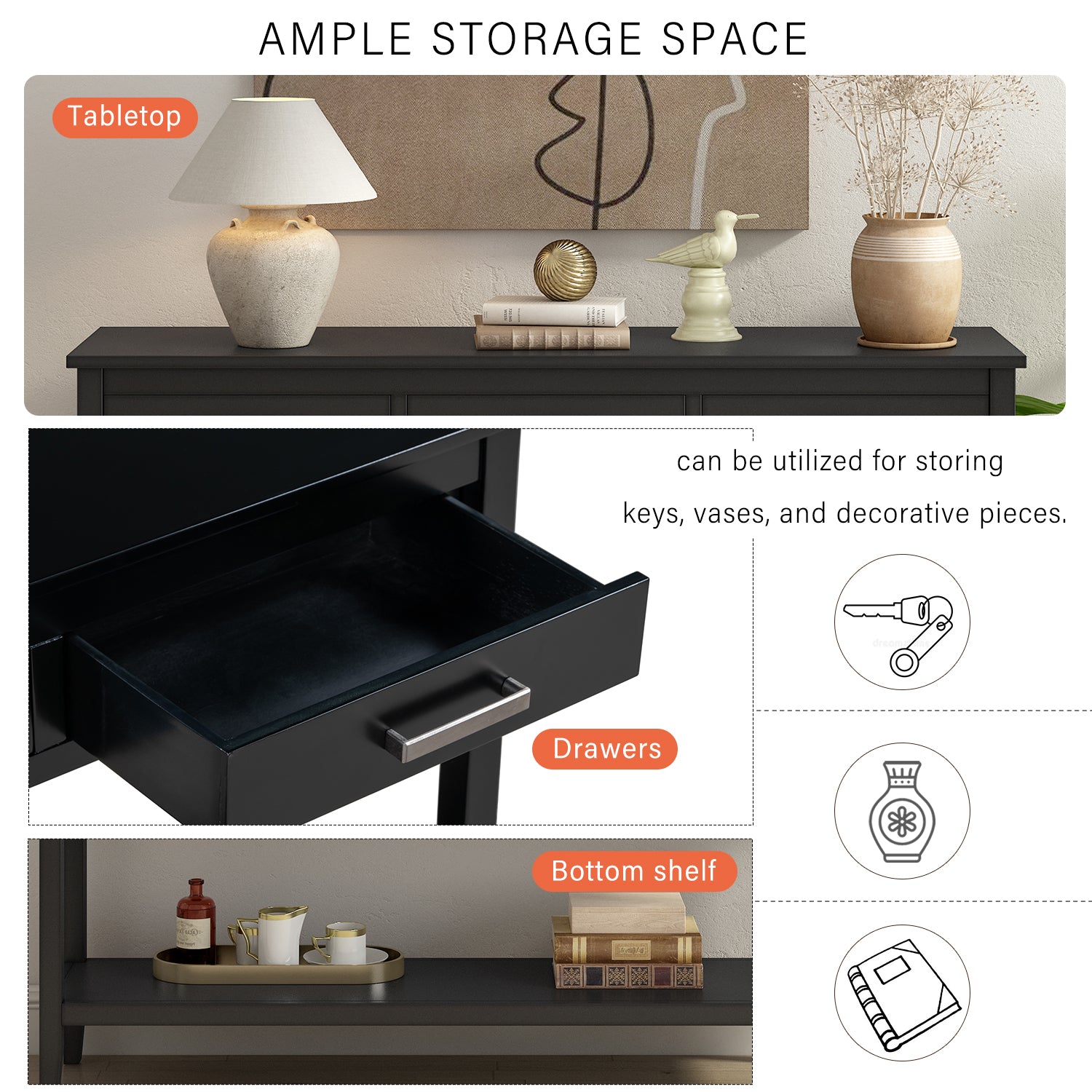- [3-Drawer Storage]Designed with three spacious drawers, this Sofa table offers a practical solution for organizing daily essentials—keys, mail, chargers, and more. The smooth-gliding drawers keep clutter out of sight while preserving a clean, elegant appearance, perfect for entryways or behind-the-sofa storage.