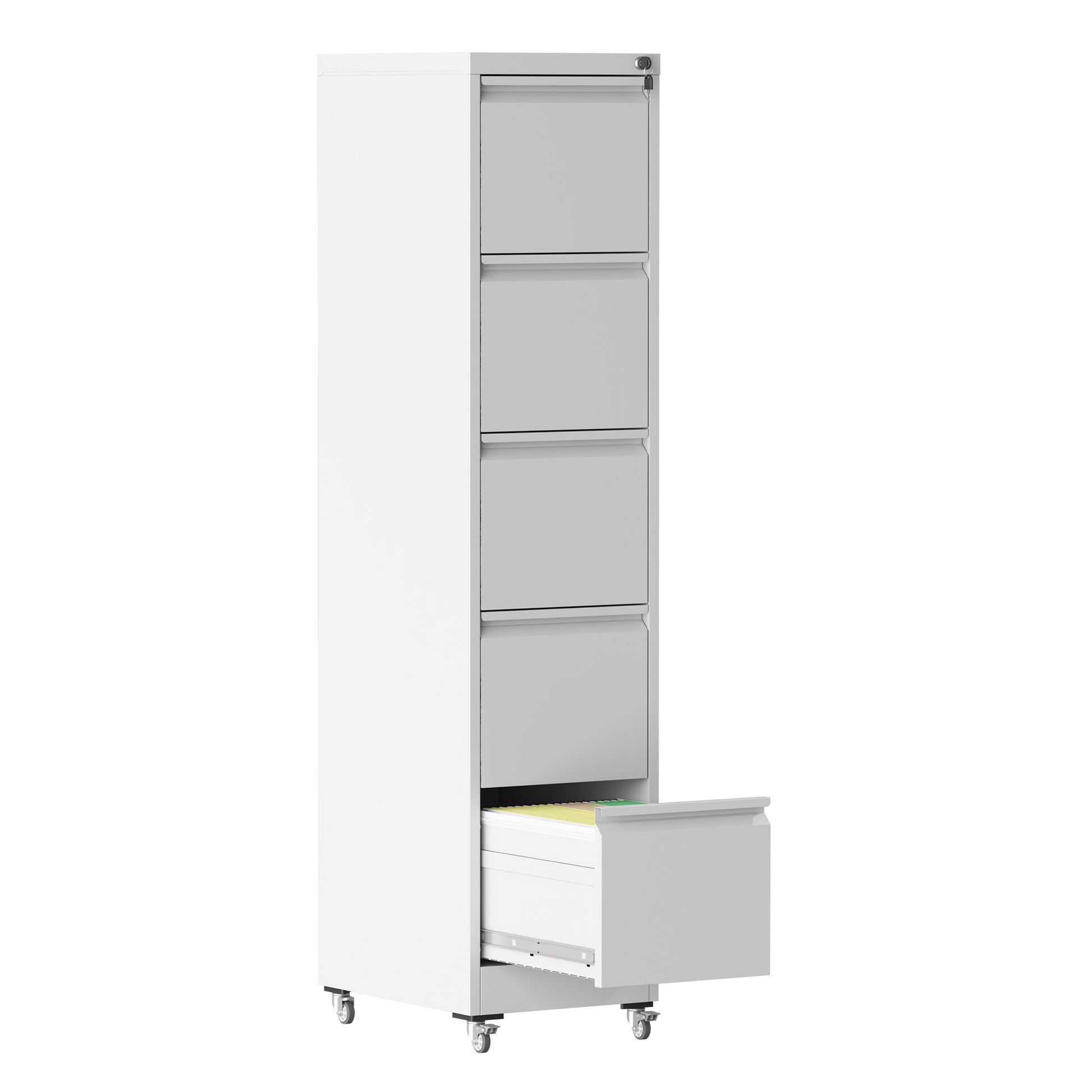 5 Drawer Metal Vertical File Cabinet with Lock on Wheels for Home Office,Heavy Duty Metal Storage Cabinet for A4/Letter/Legal Size Files, White, 17.71'D*15.16'W*64.17'H