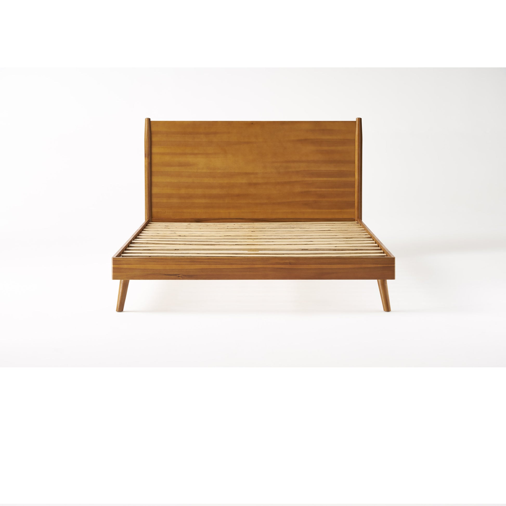 - As if our mattress weren't cool enough, now you can elevate your bedroom set-up with the mid-century collection bed. With a sleek design and impeccable craftsmanship, this bed features iconic splayed legs and a wood foundation that is built to last. Showcasing a beautiful natural finish, our bed set will have you rising from your sheets in the morning with a refreshing style. So put your worries to bed because the timeless look of this bed frame will suit anyone's style.