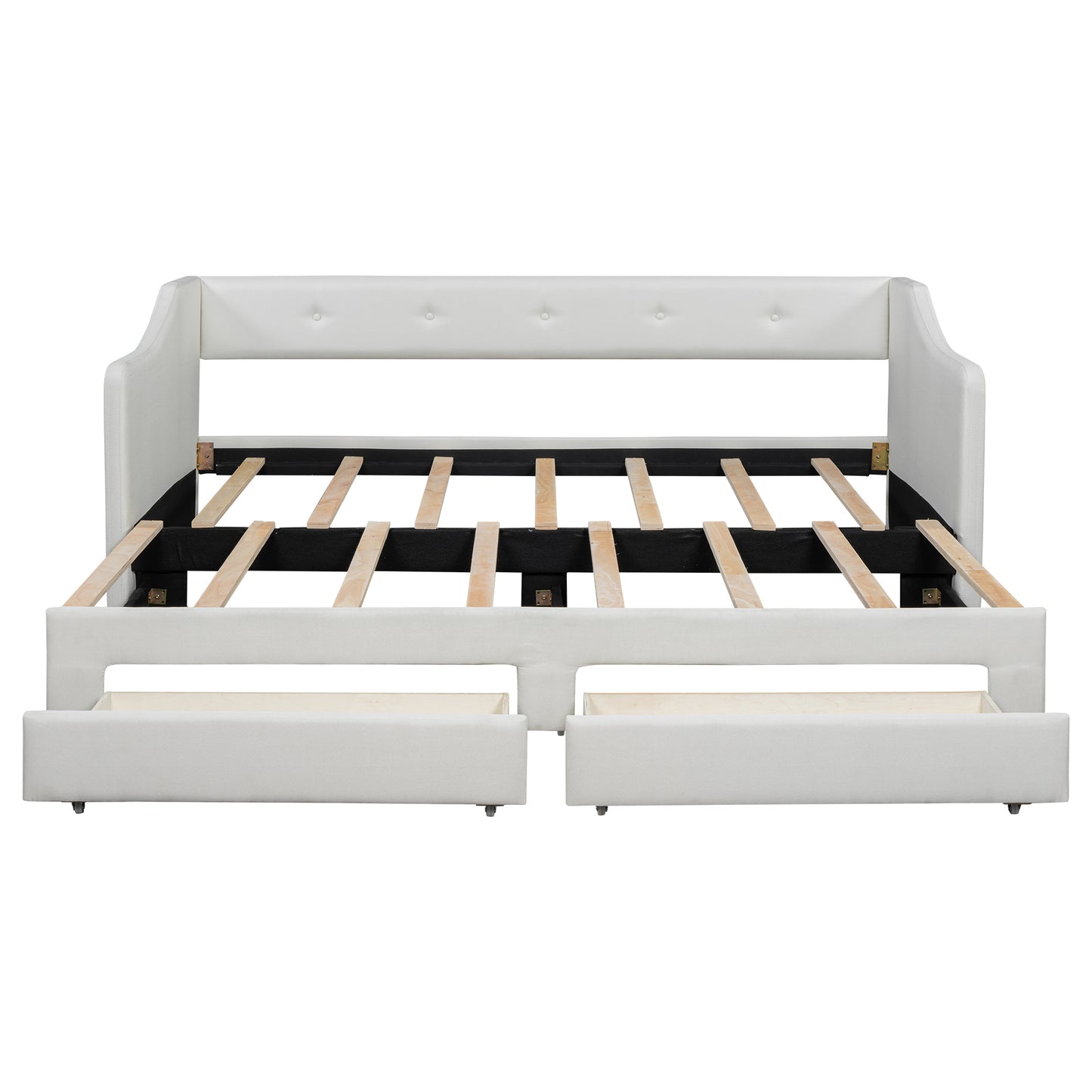 Twin XL to King Size Upholstered Daybed with Two Drawers, Beige