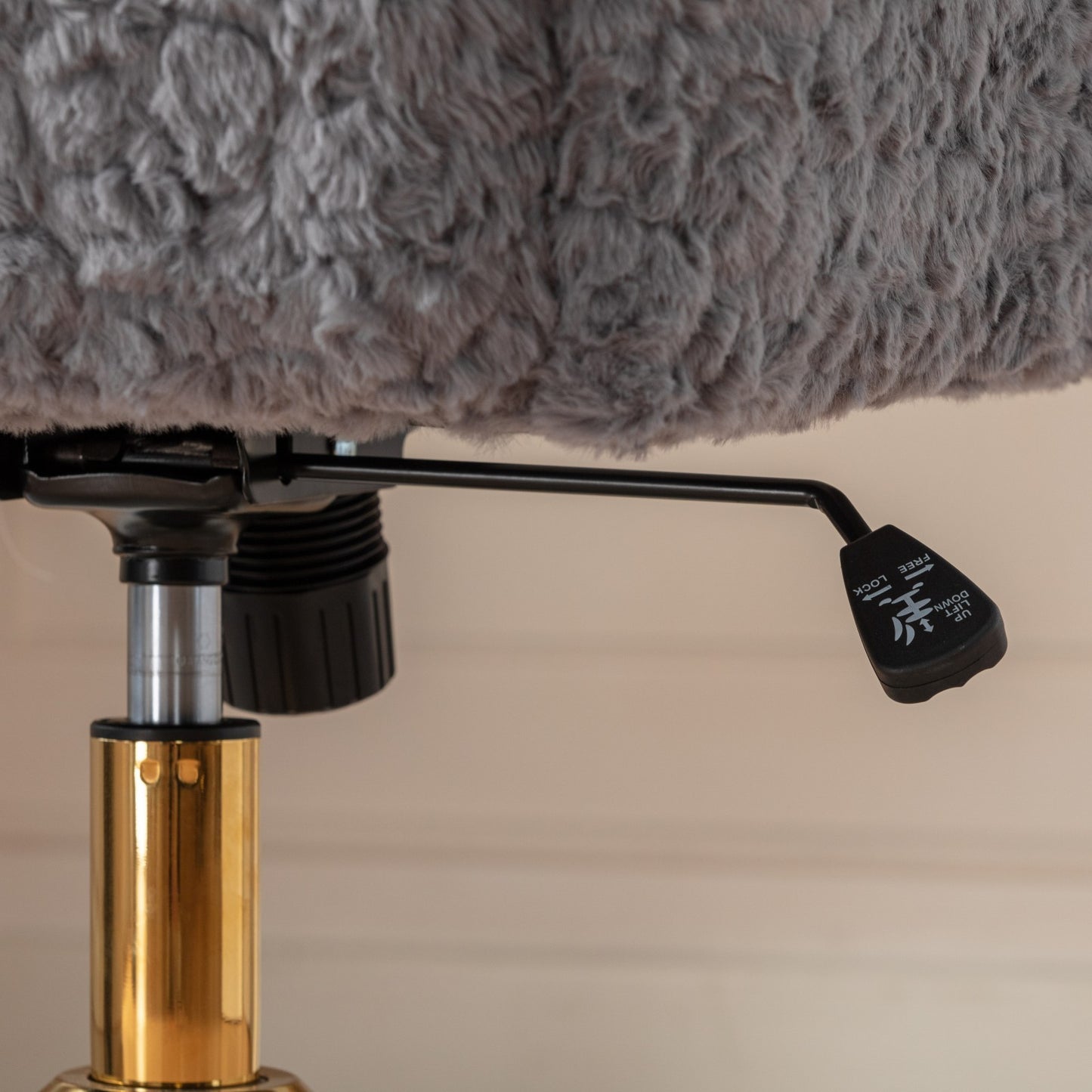 A&A Furniture Office Chair,Artificial rabbit hair Home Office Chair with Golden Metal Base,Adjustable Desk Chair Swivel Office Chair,Vanity Chair(Gray)
