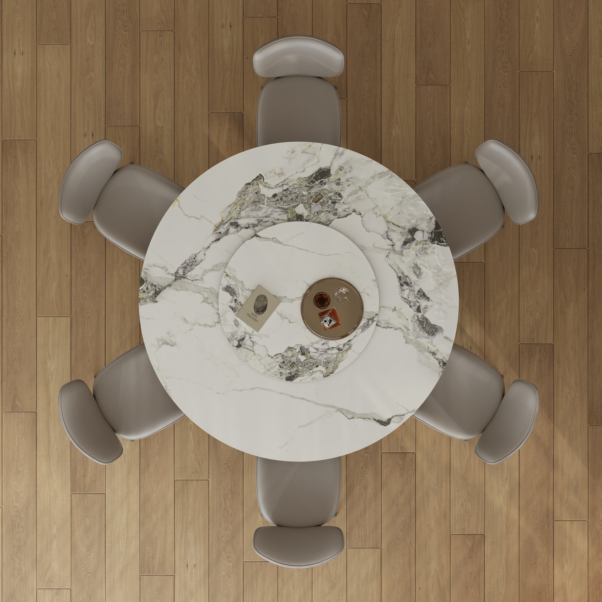 - 360°Rotating Lazy Susan:This table features a small table top that can be rotated, and at the bottom is a silent dial that can be manually rotated to share a meal with the family. When cleaning the tabletop, the small tabletop can also be moved for easy cleaning.