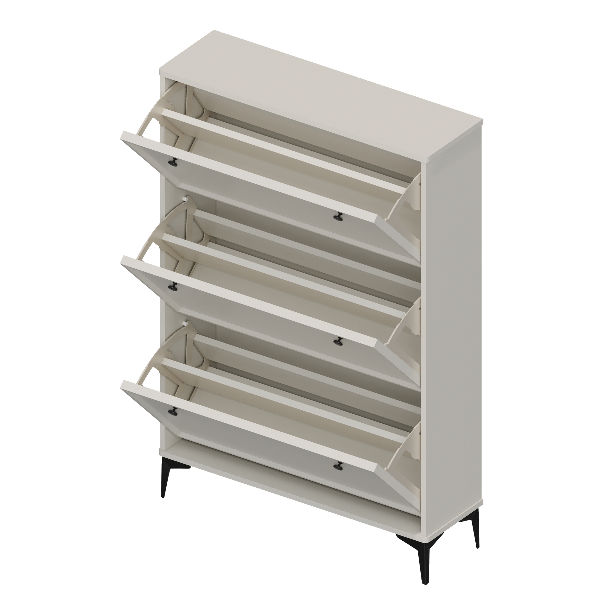 Modern and stylish white shoe cabinet with 3 flip drawers, entrance shoe cabinet, narrow shoe rack cabinet, hidden shoe cabinet with independent legs