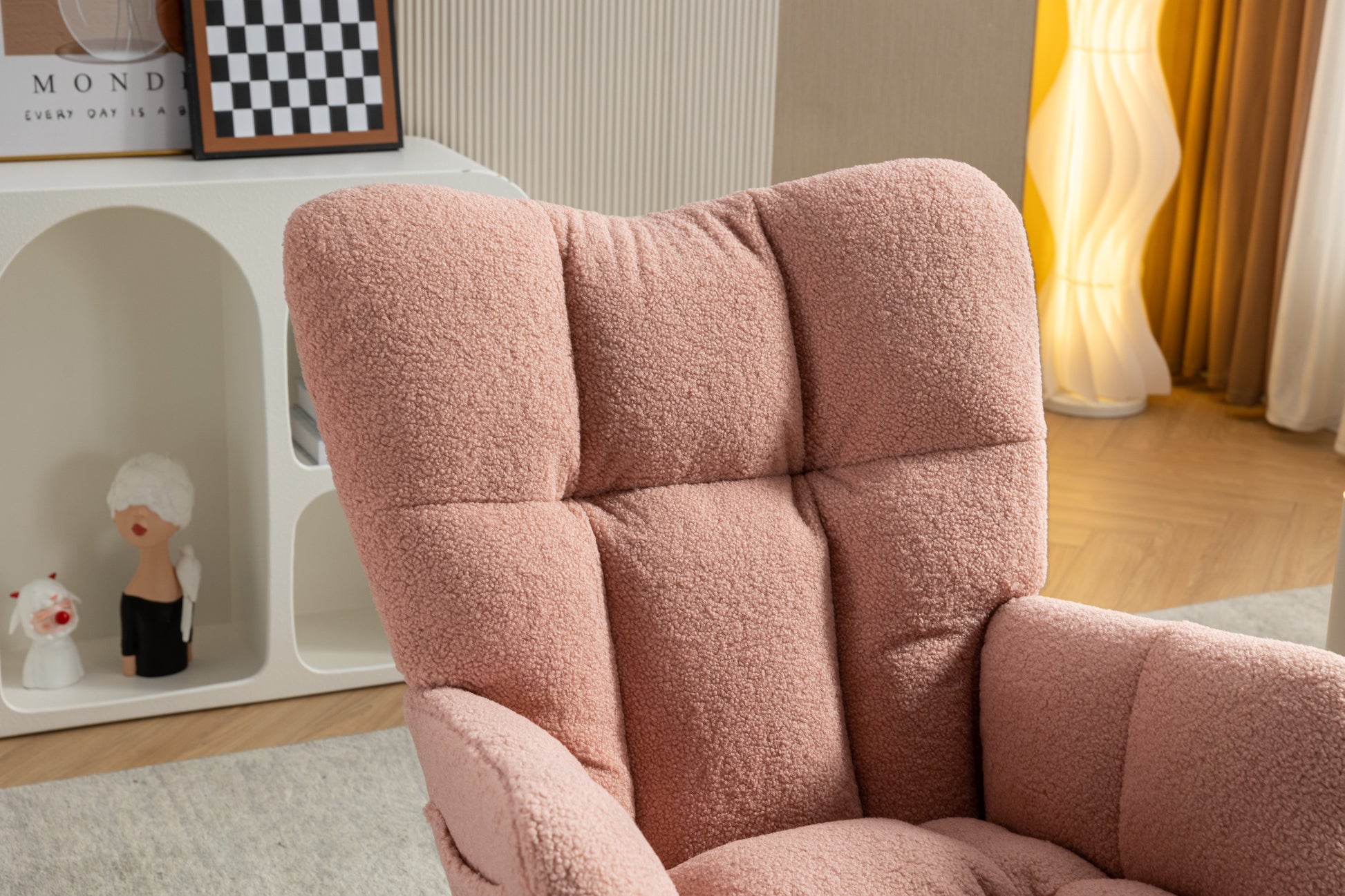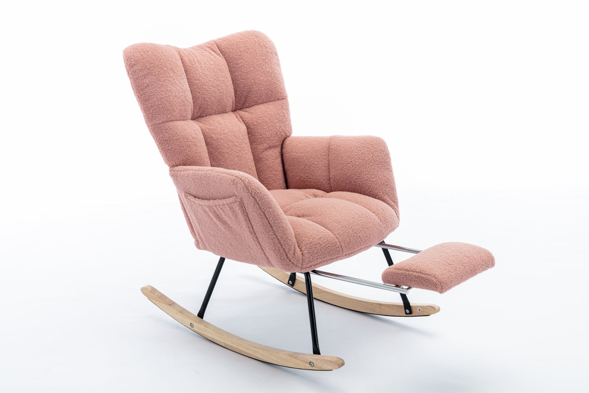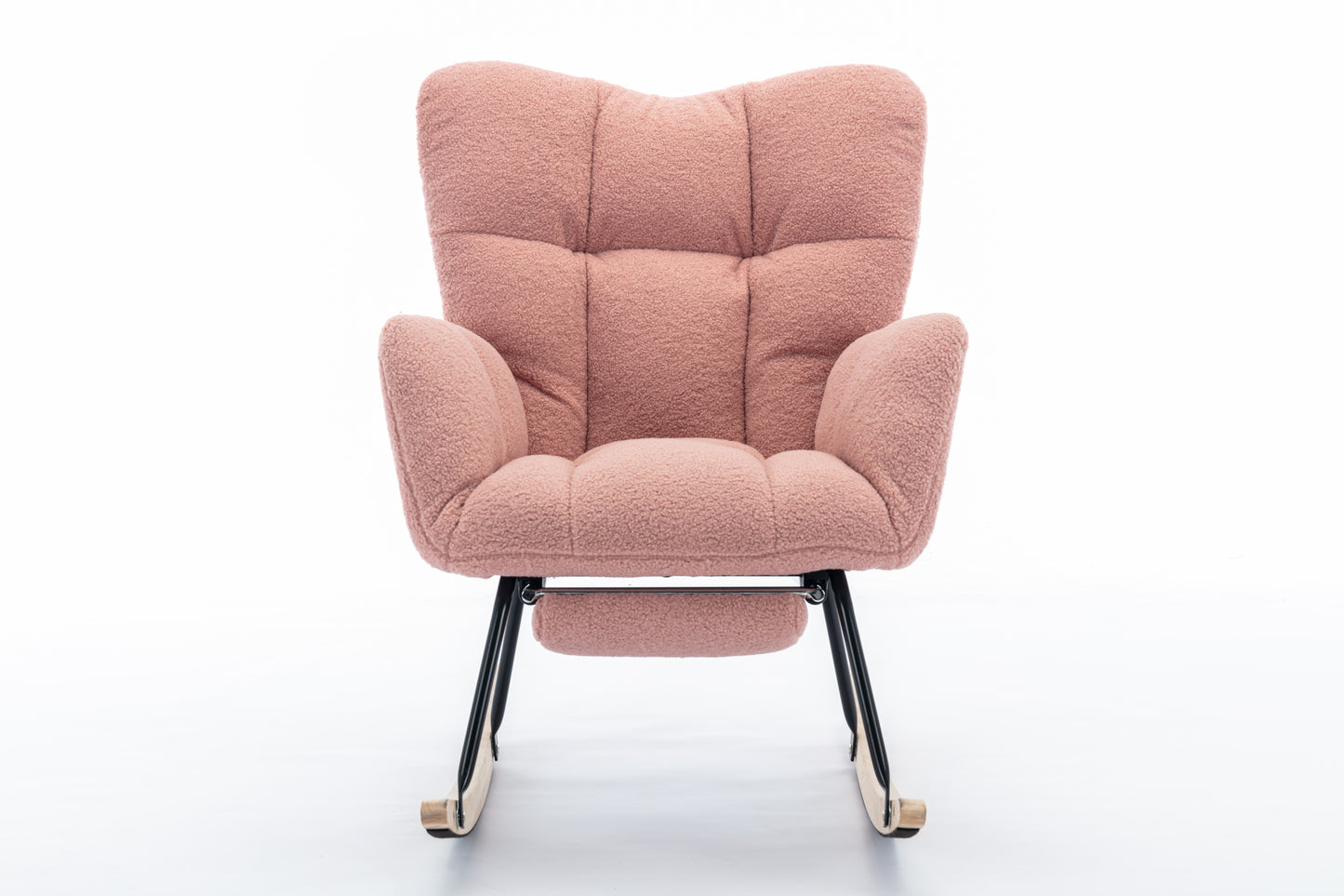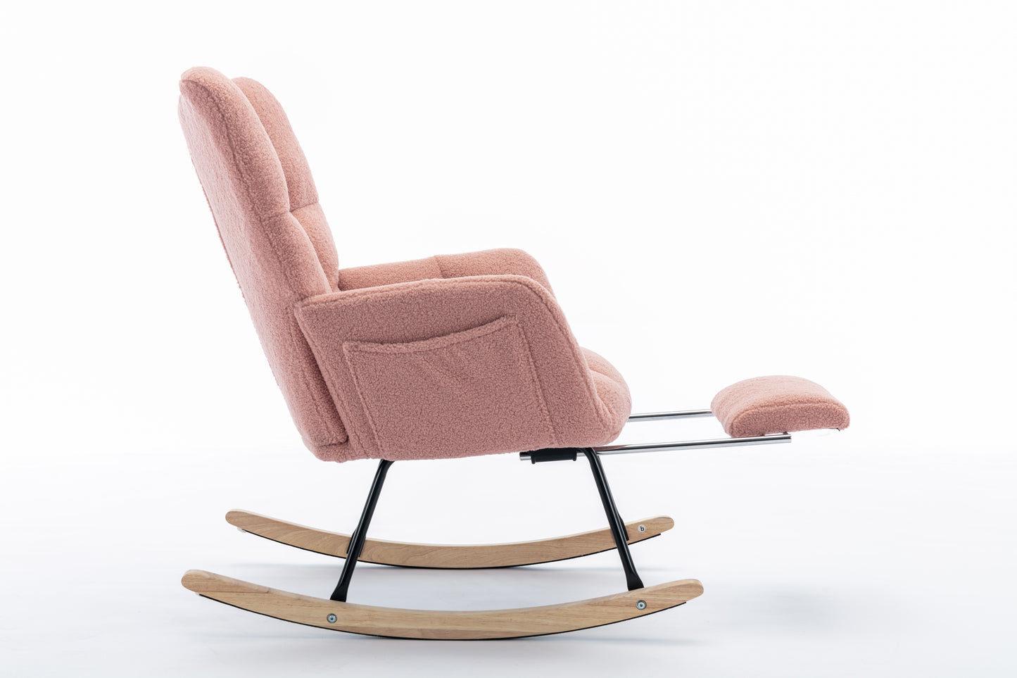 053-Teddy Fabric Rocking Chair With Adjustable Footrest,Pink