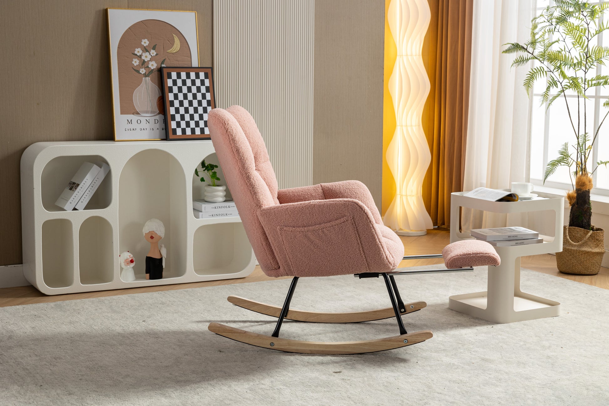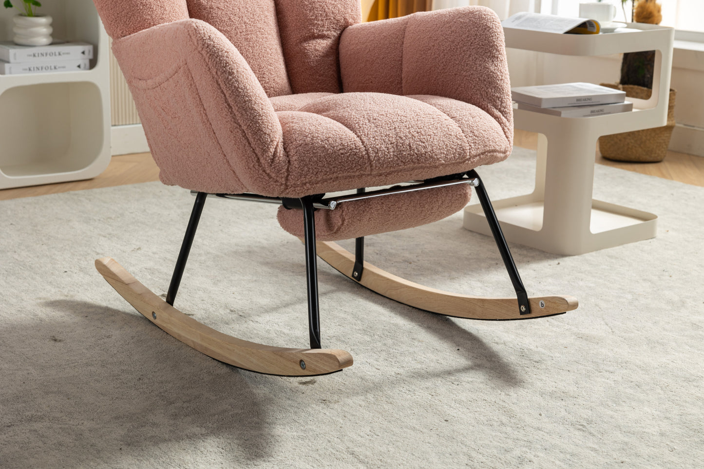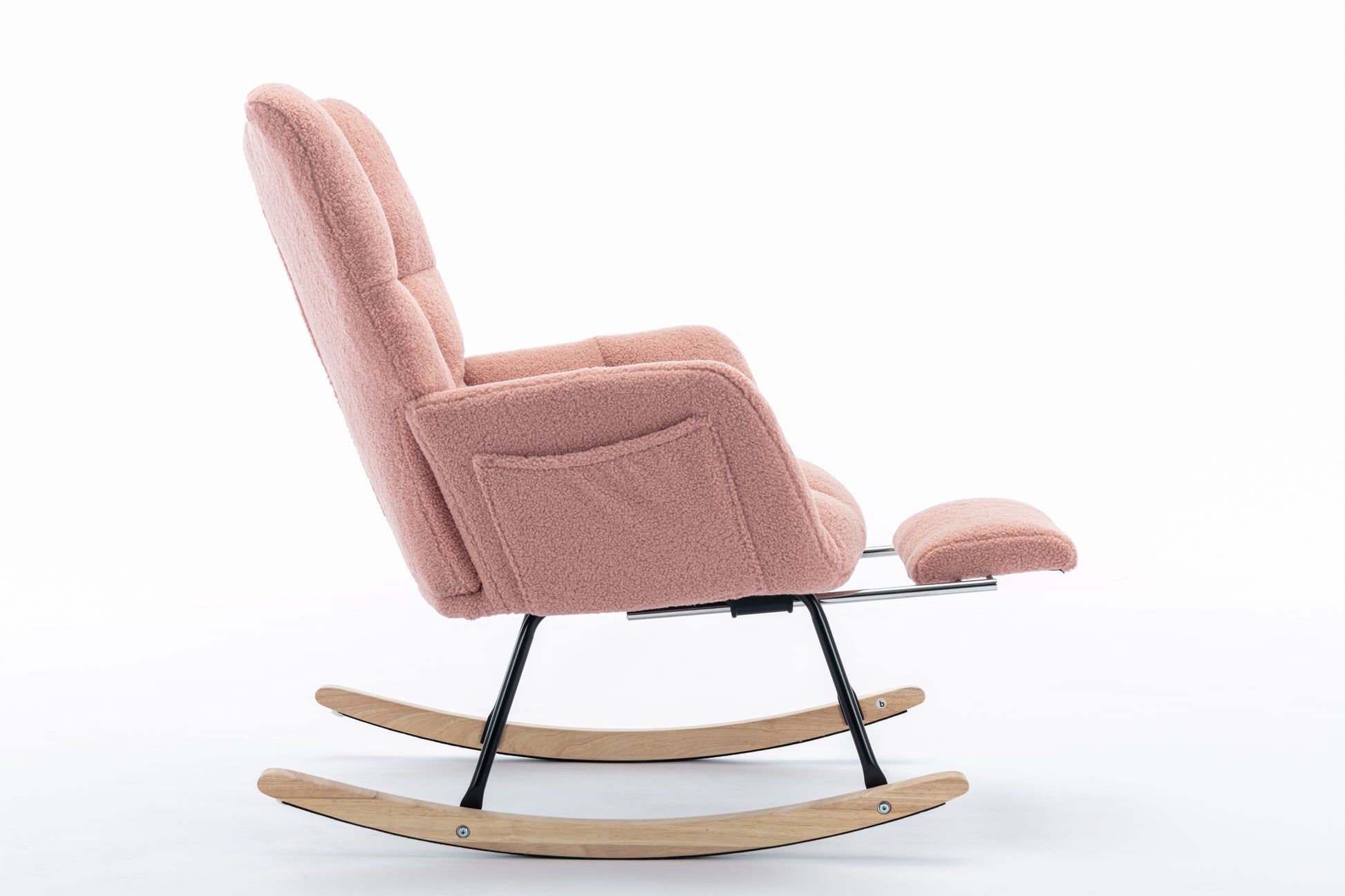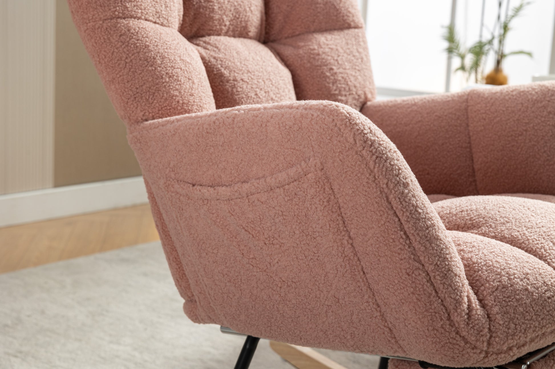 053-Teddy Fabric Rocking Chair With Adjustable Footrest,Pink