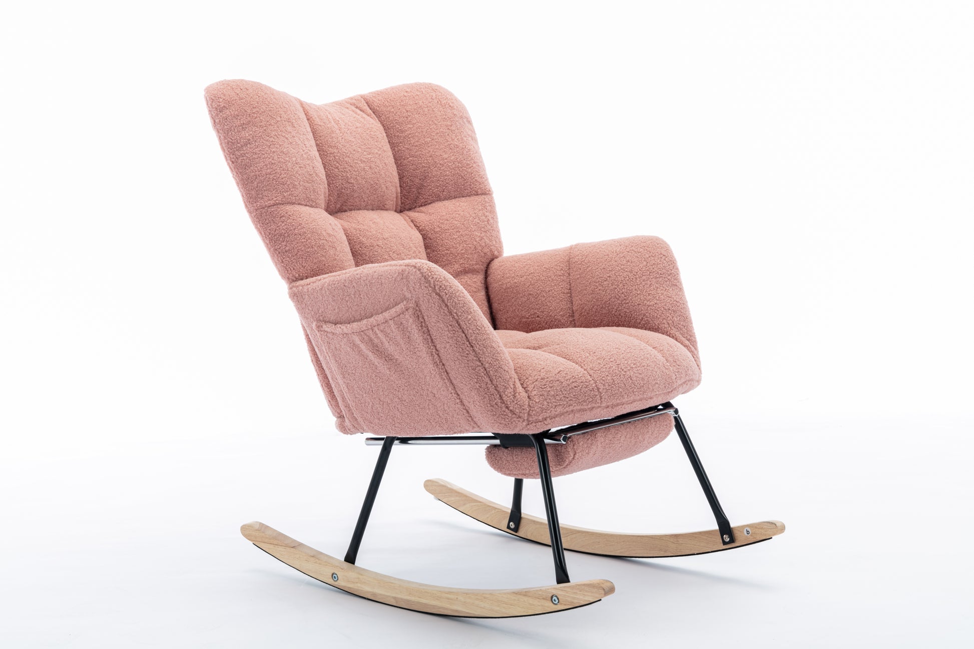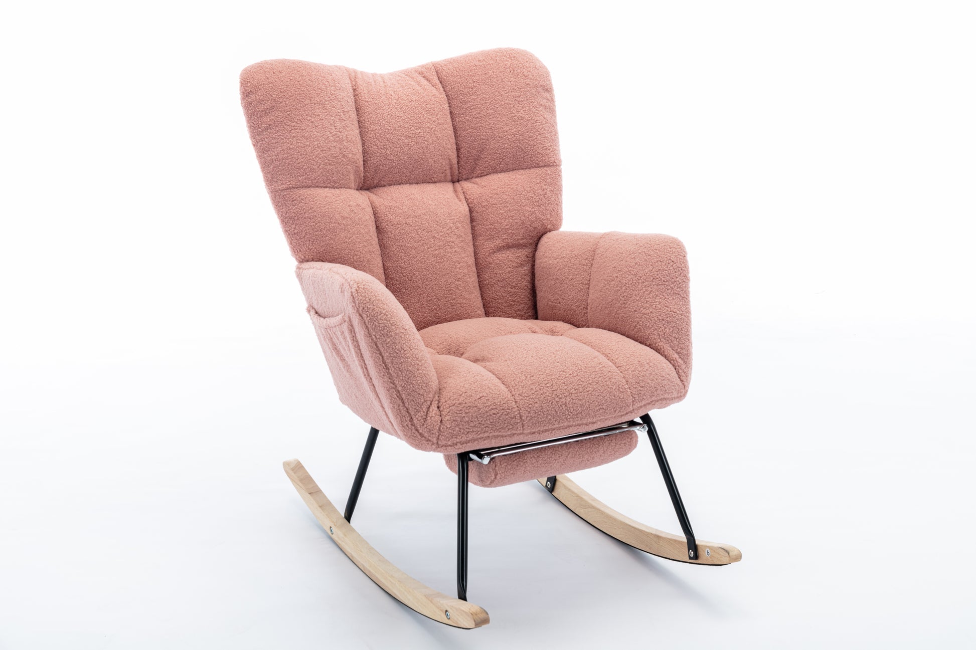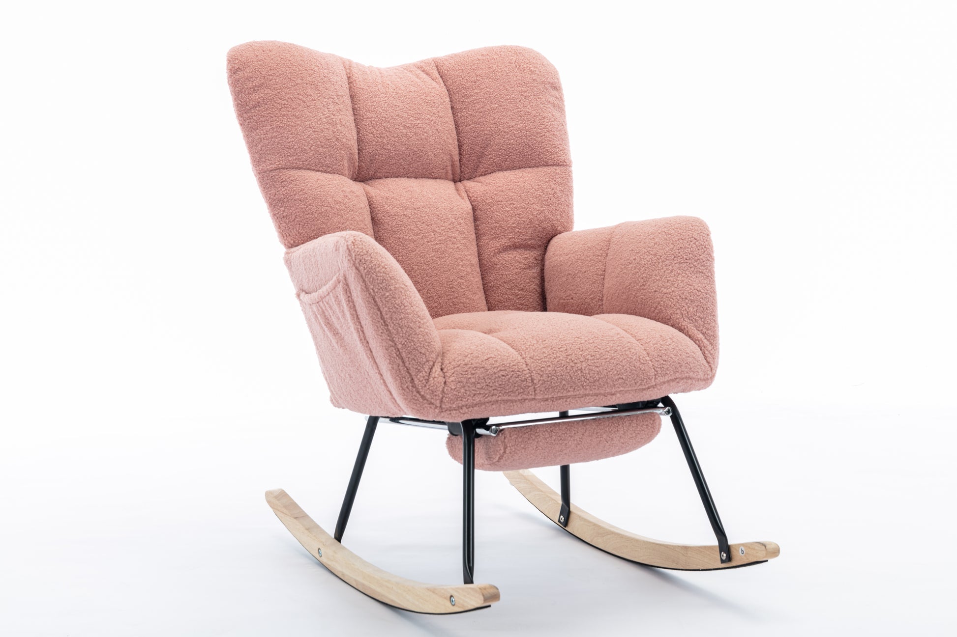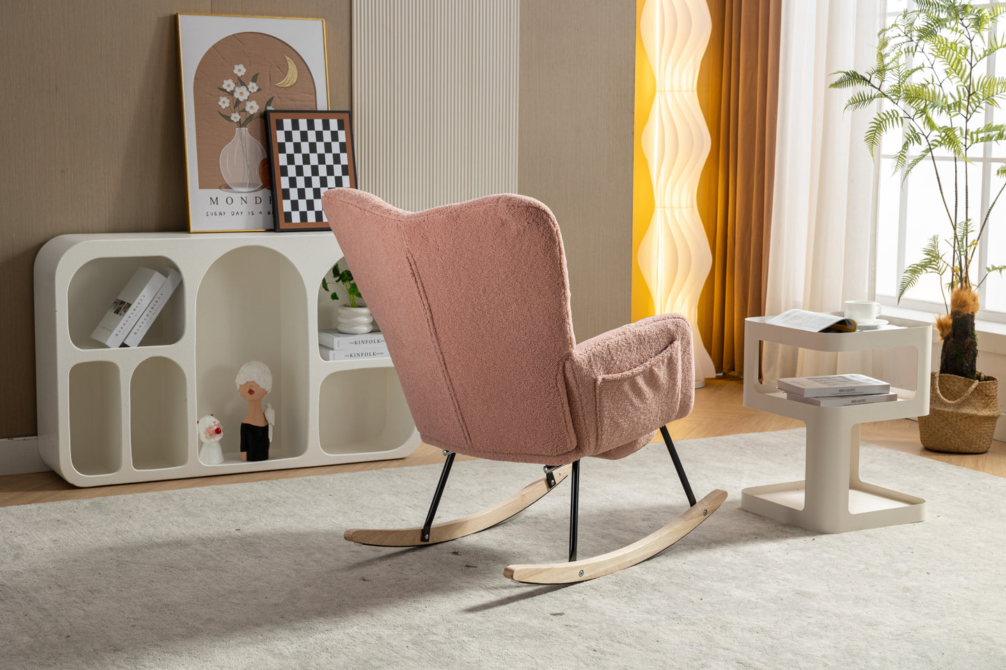 053-Teddy Fabric Rocking Chair With Adjustable Footrest,Pink