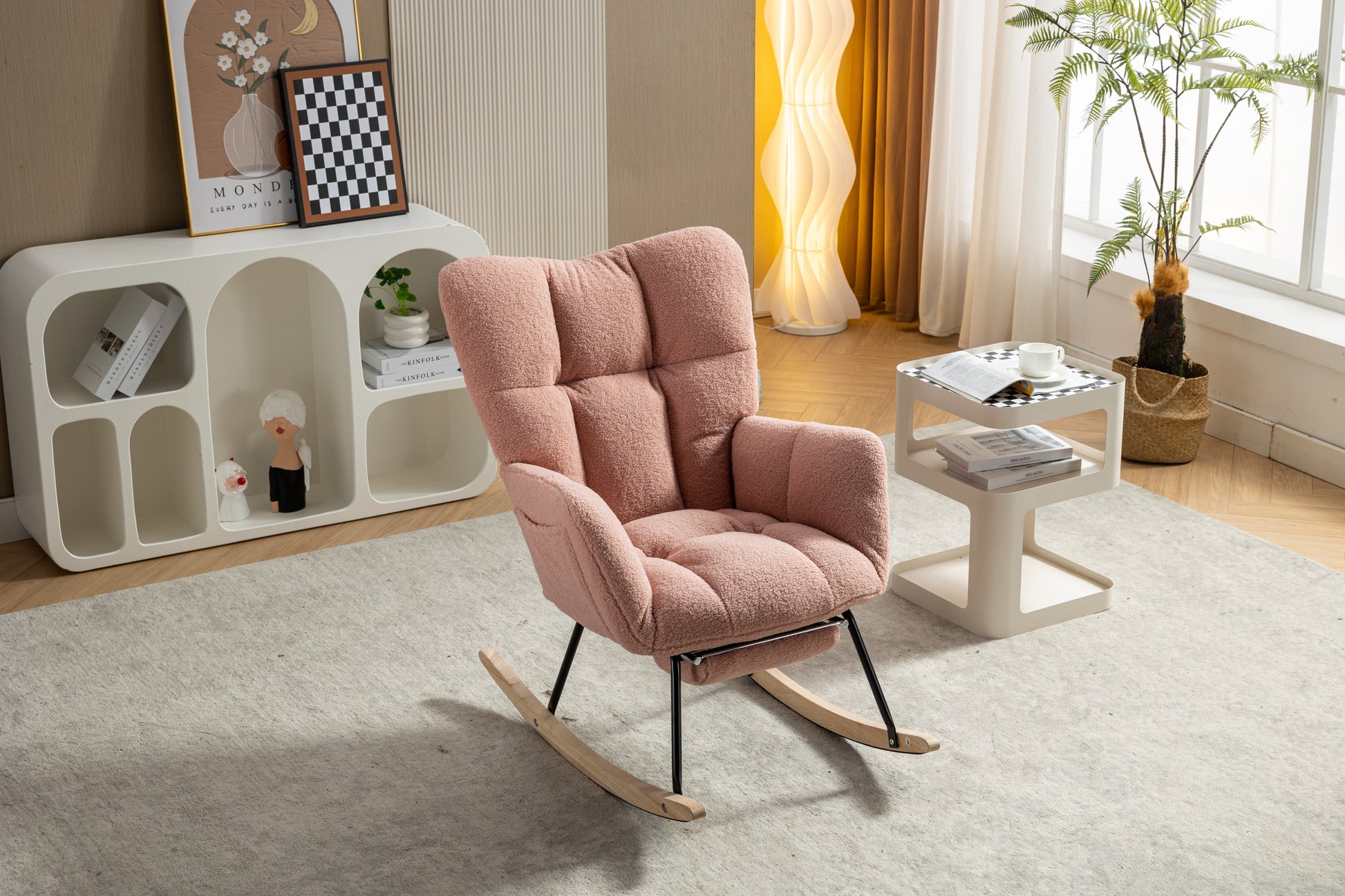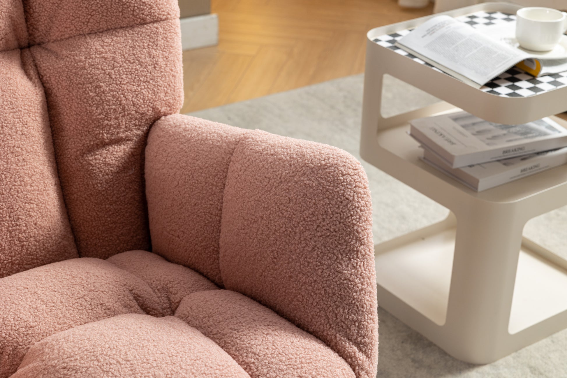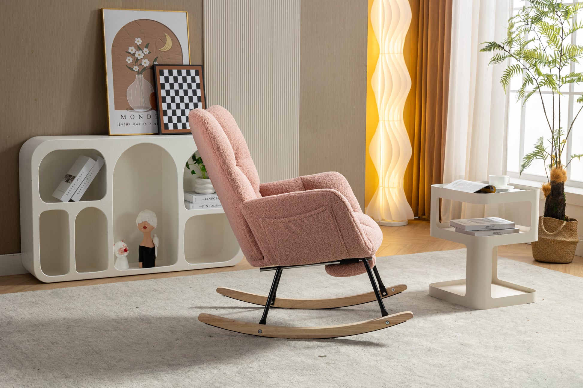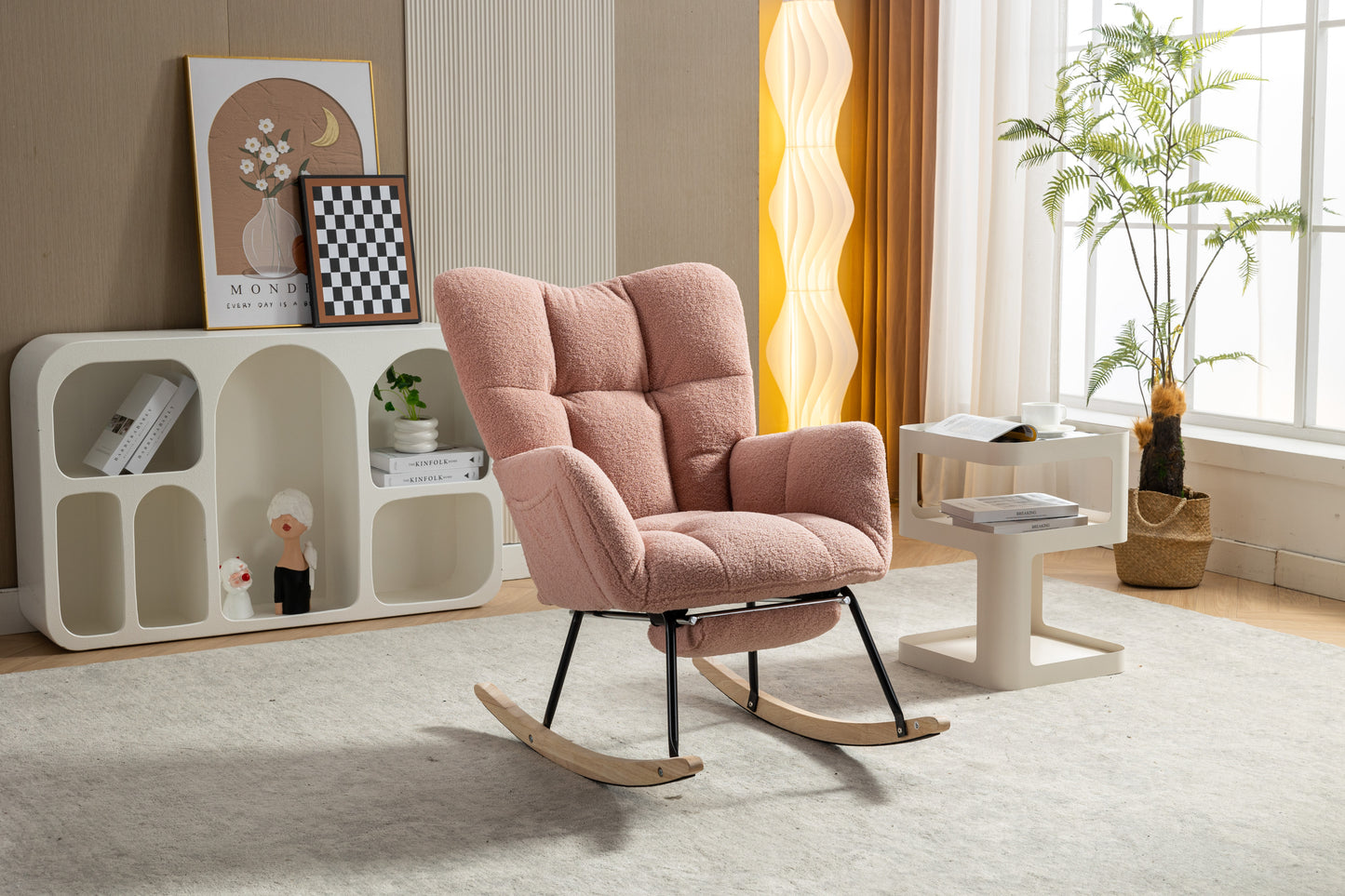 053-Teddy Fabric Rocking Chair With Adjustable Footrest,Pink