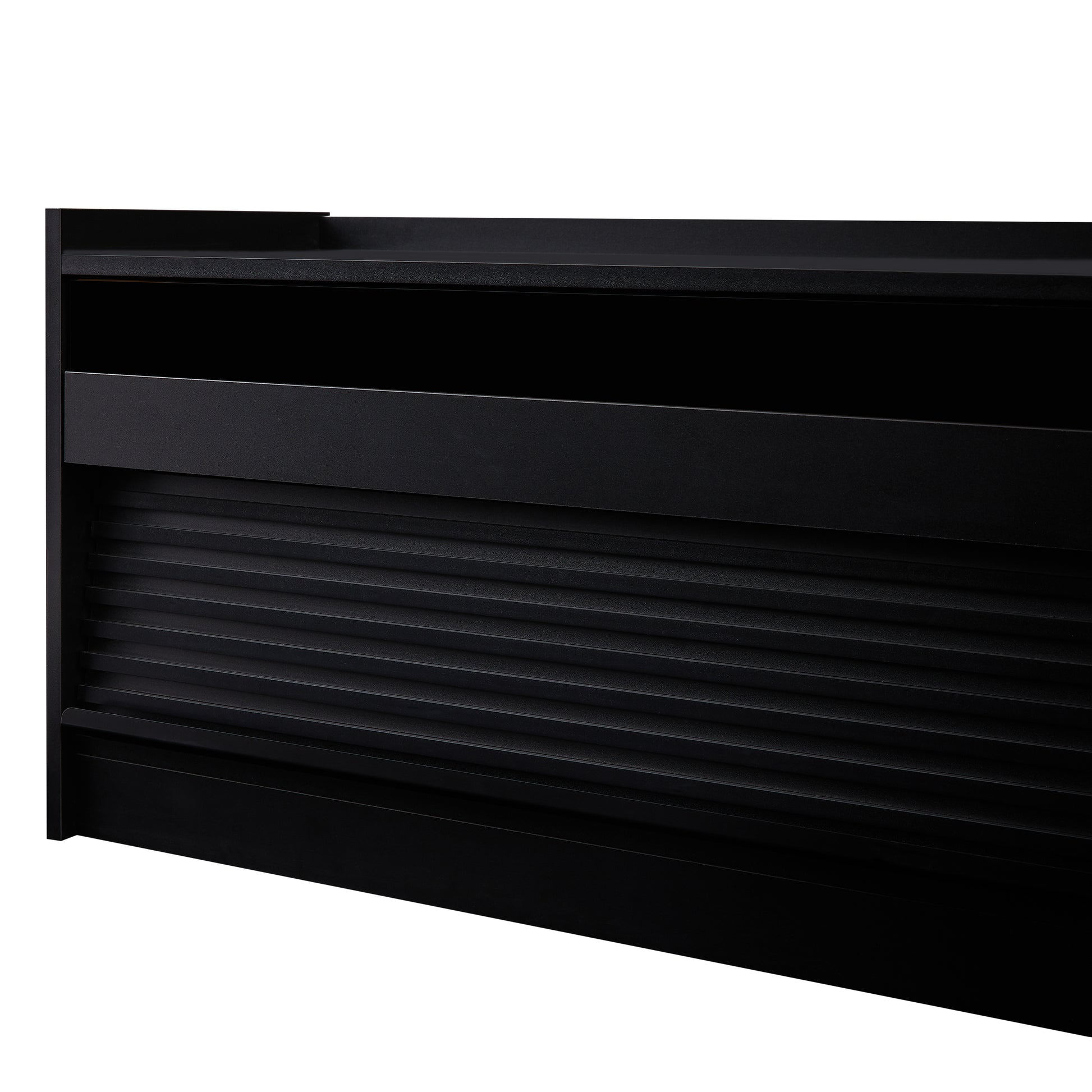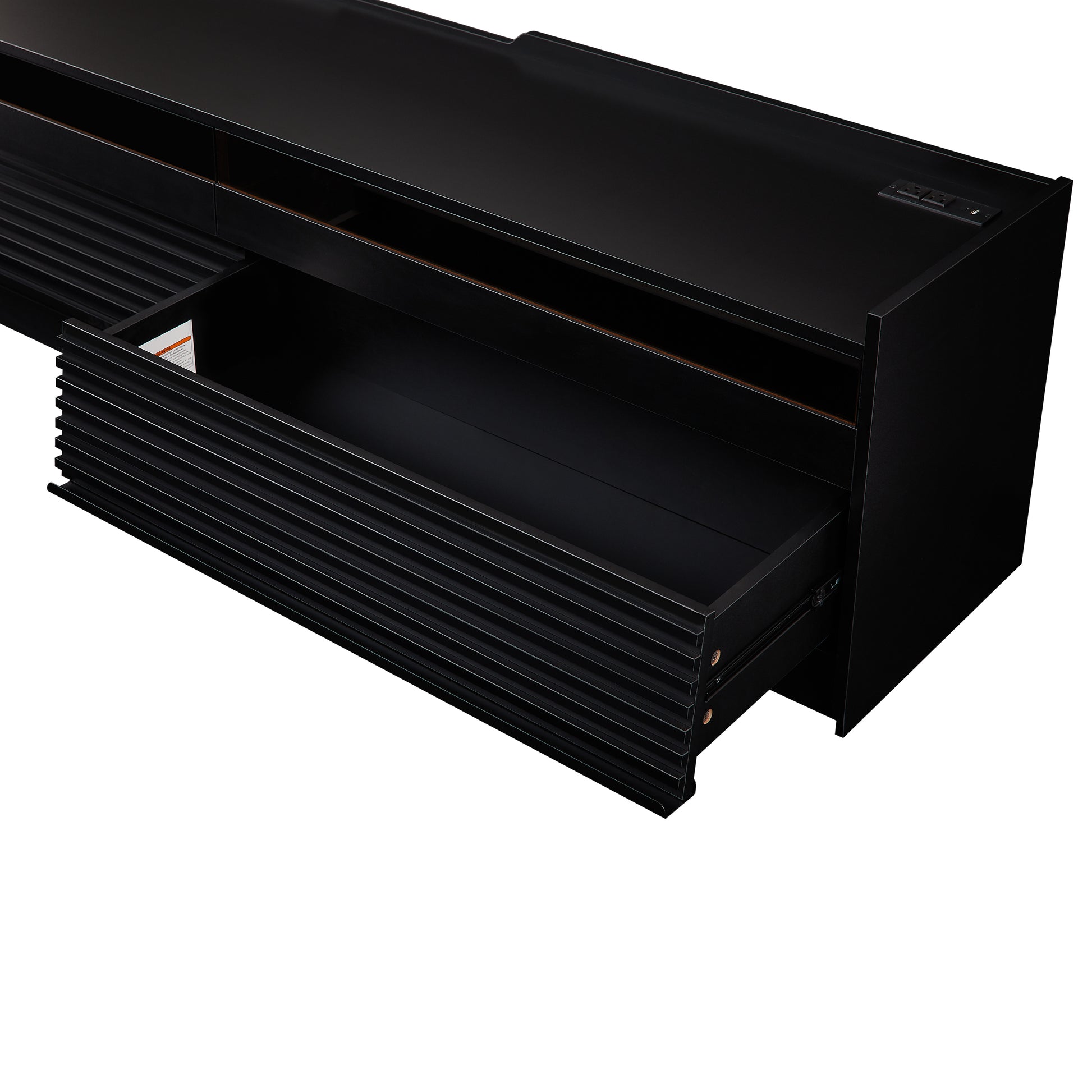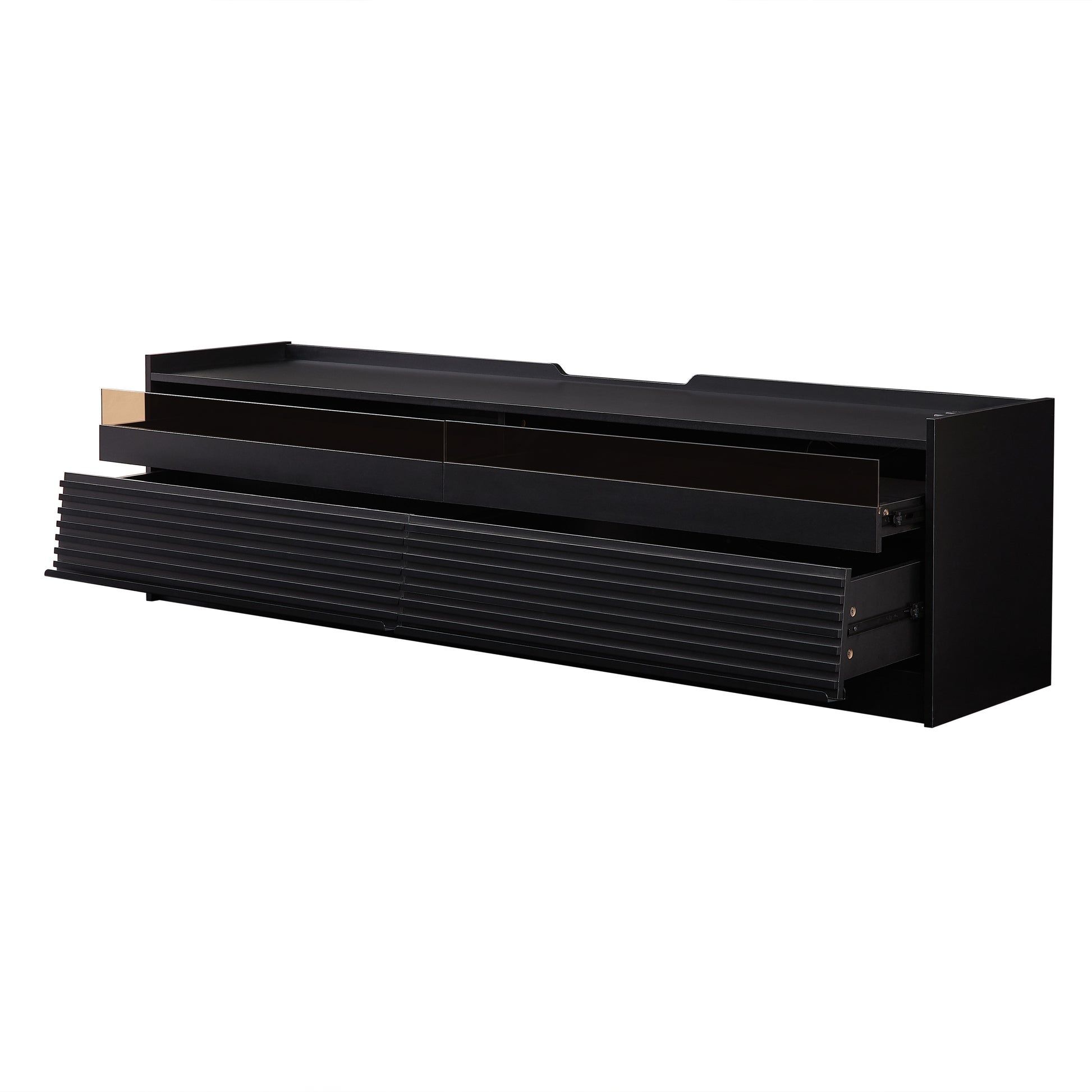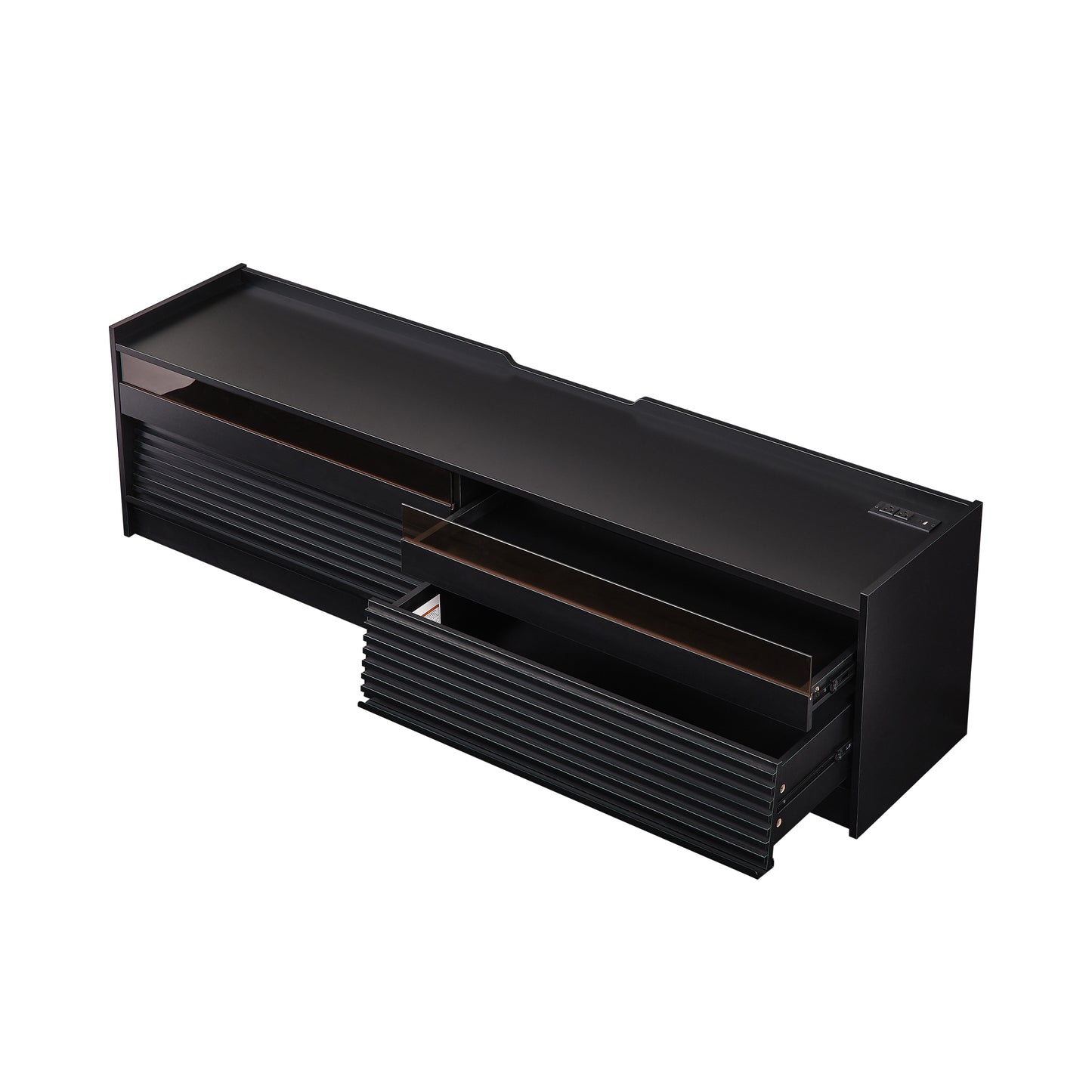 - Spacious Storage with Four Drawers:This modern TV stand features four generous drawers, providing ample storage space for all your media essentials. The drawer fronts are crafted with tempered glass and a sleek horizontal stripe design, adding a touch of elegance while maintaining a minimalist aesthetic.