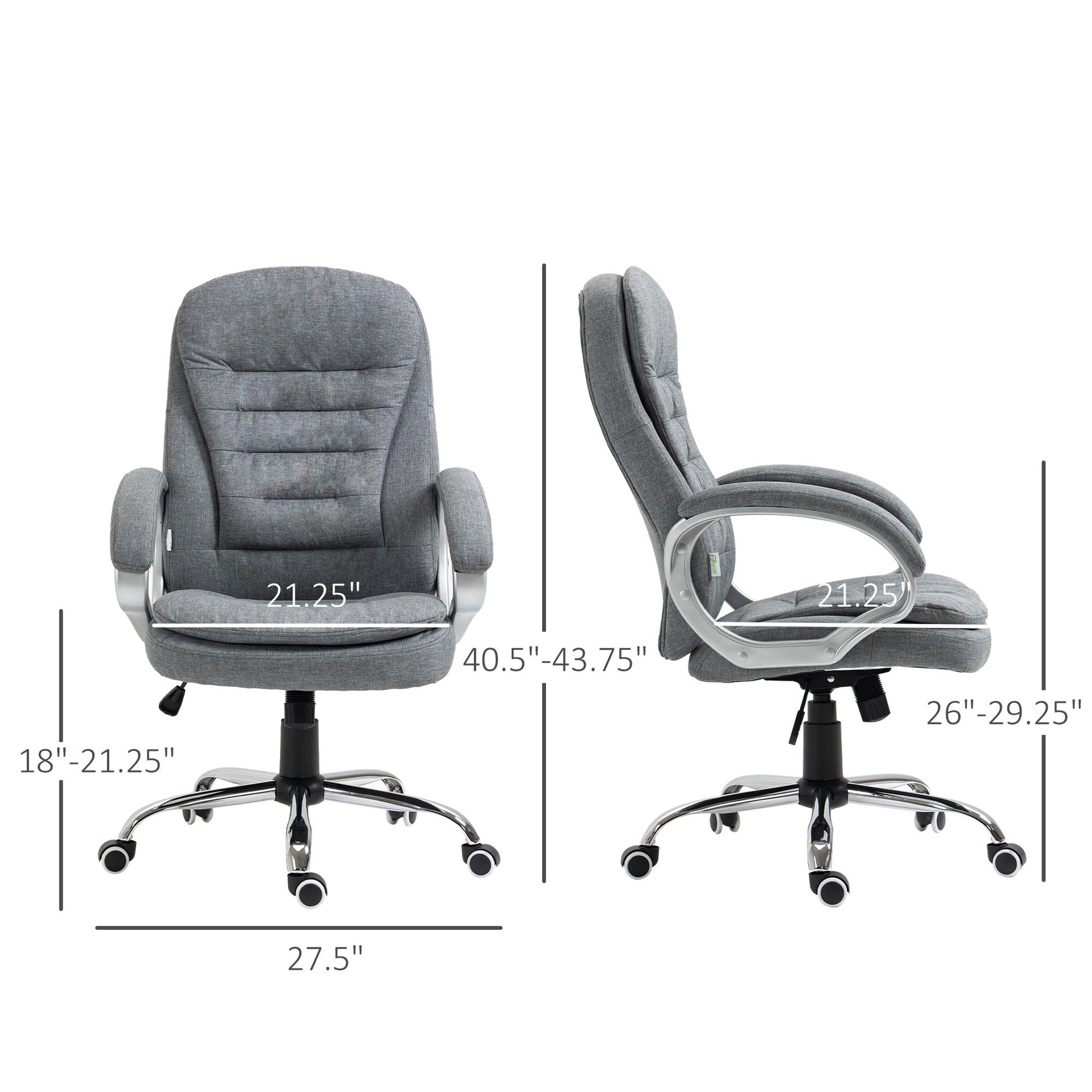 High Back Home Office Chair Executive Computer Chair with Adjustable Height, Upholstered Thick Padding Headrest and Armrest - Grey